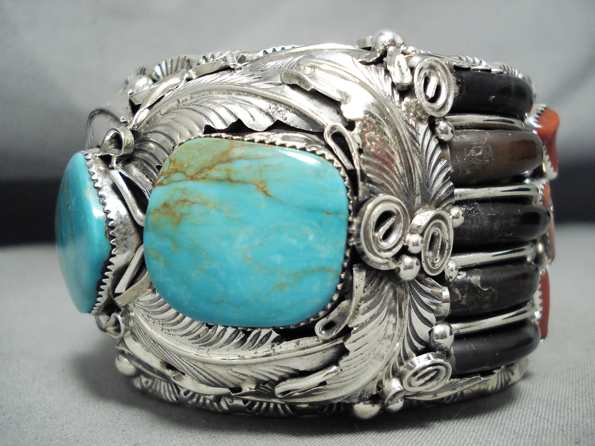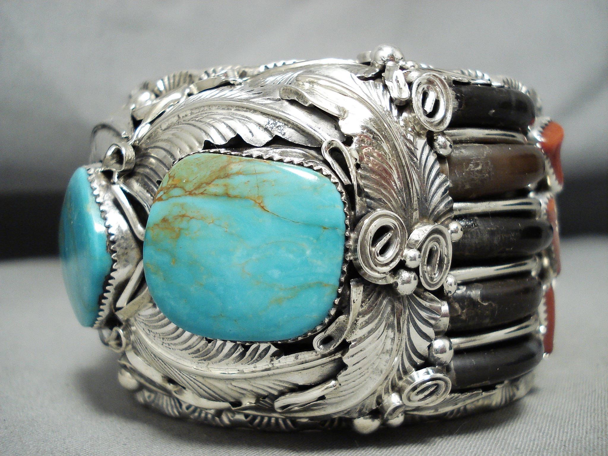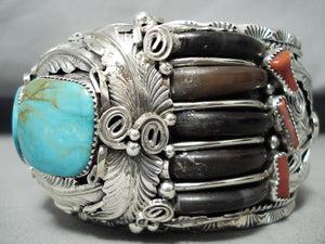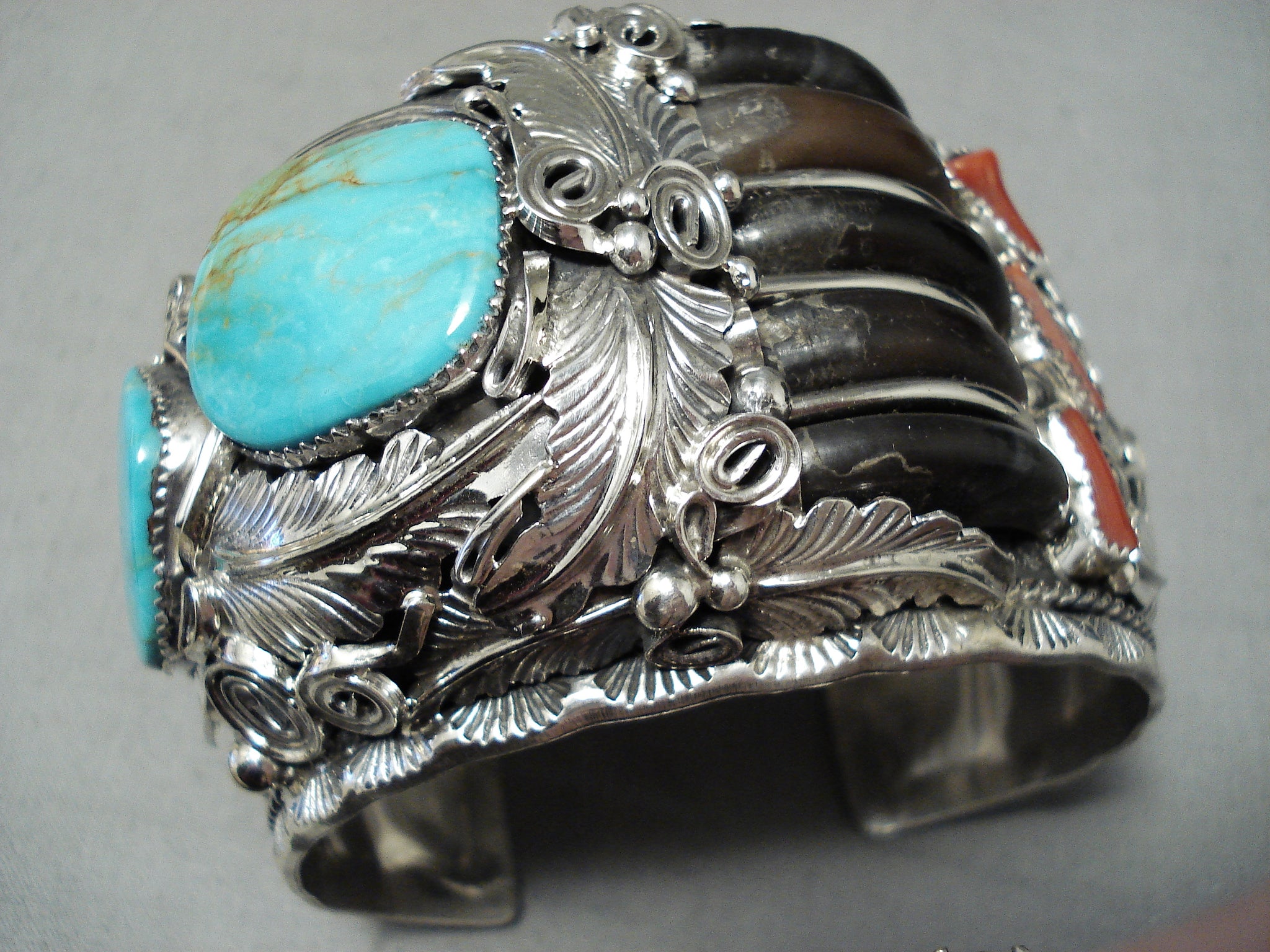 Monster Bear Native American Navajo Authentic Turquoise Sterling Silver Bracelet