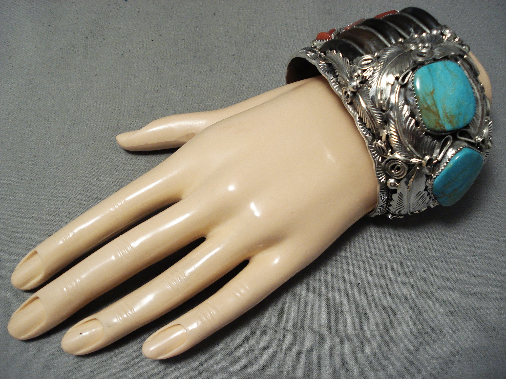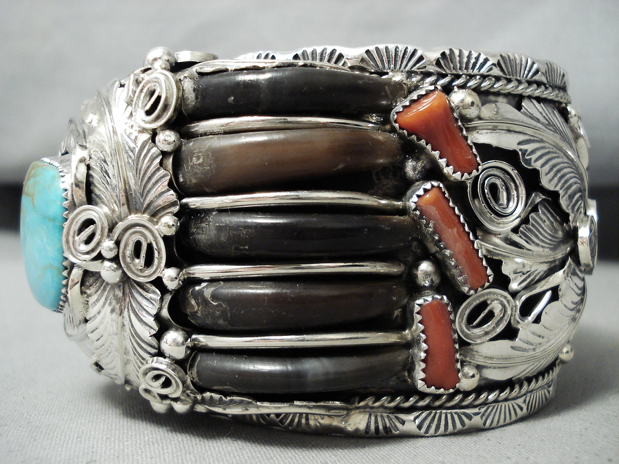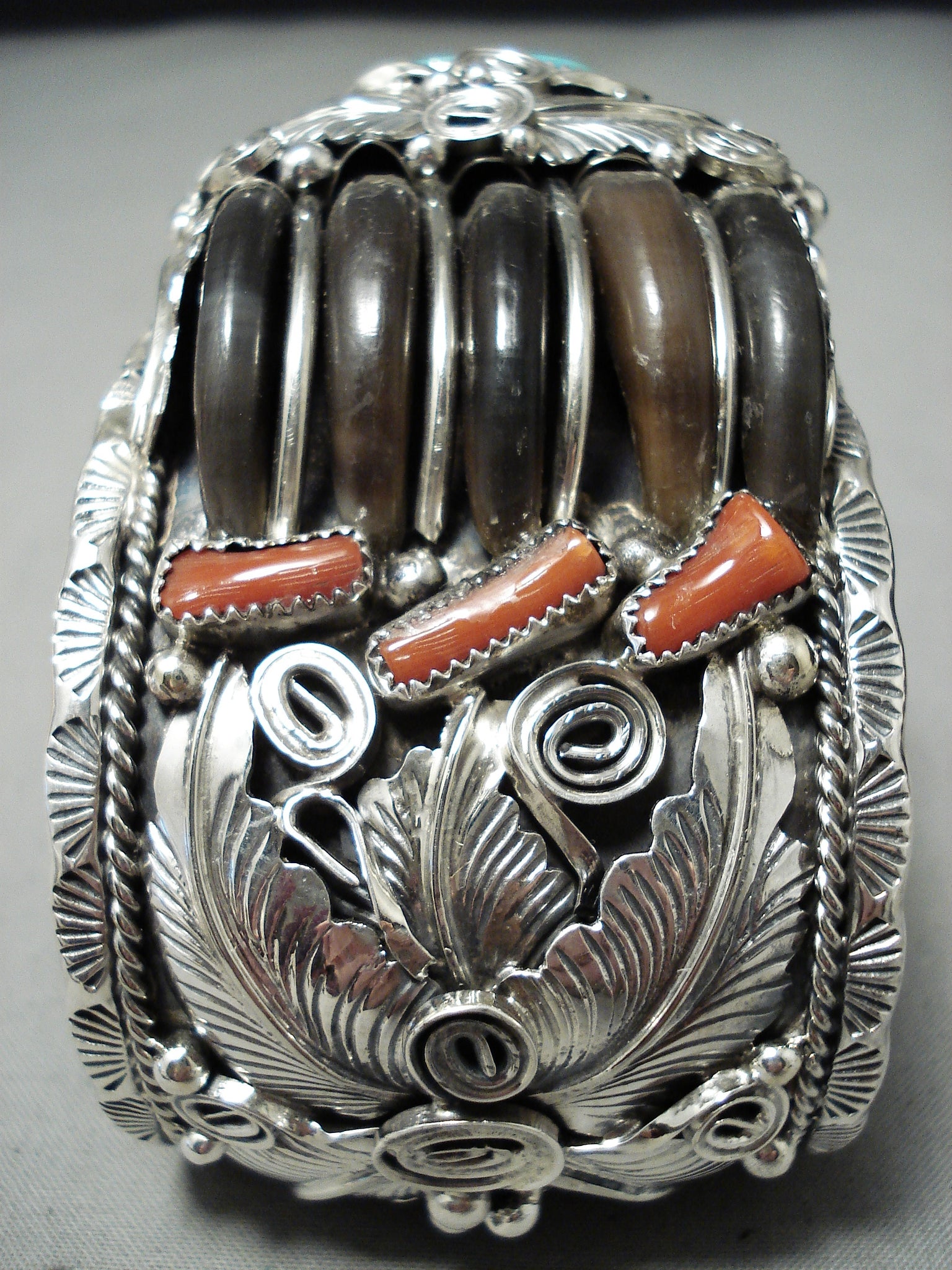 Monster Bear Native American Navajo Authentic Turquoise Sterling Silver Bracelet