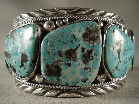 Monstrous Vintage Navajo Turquoise Native American Jewelry Silver Bracelet