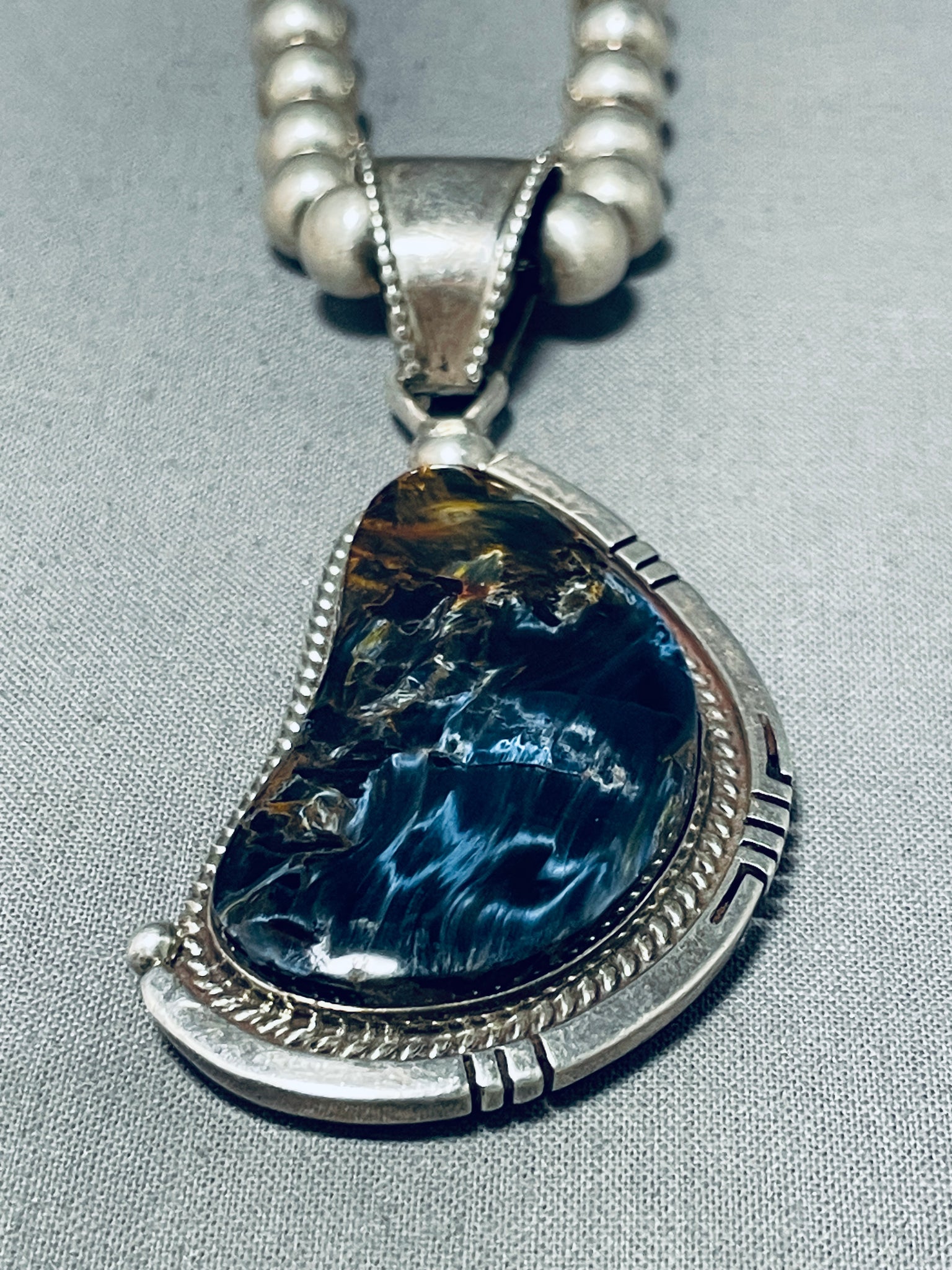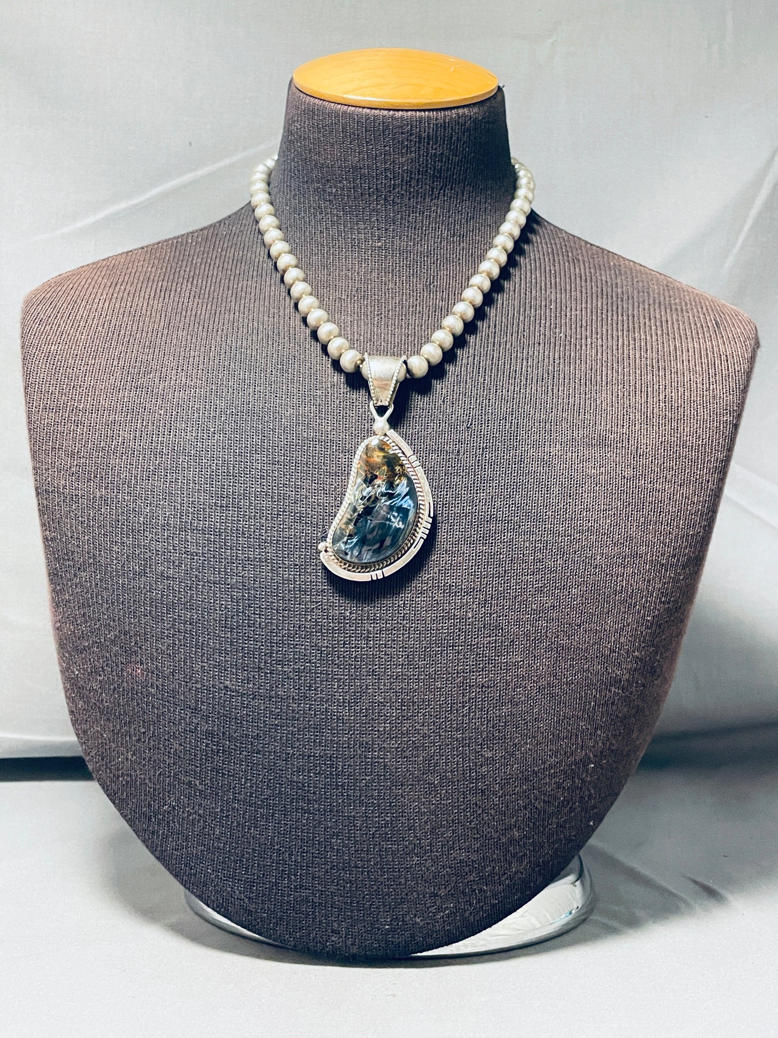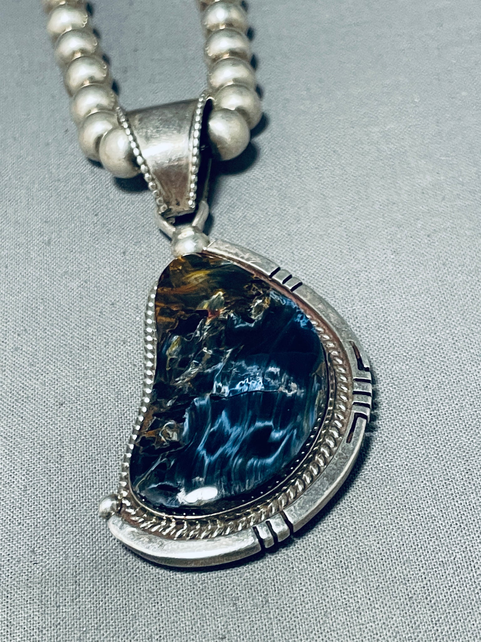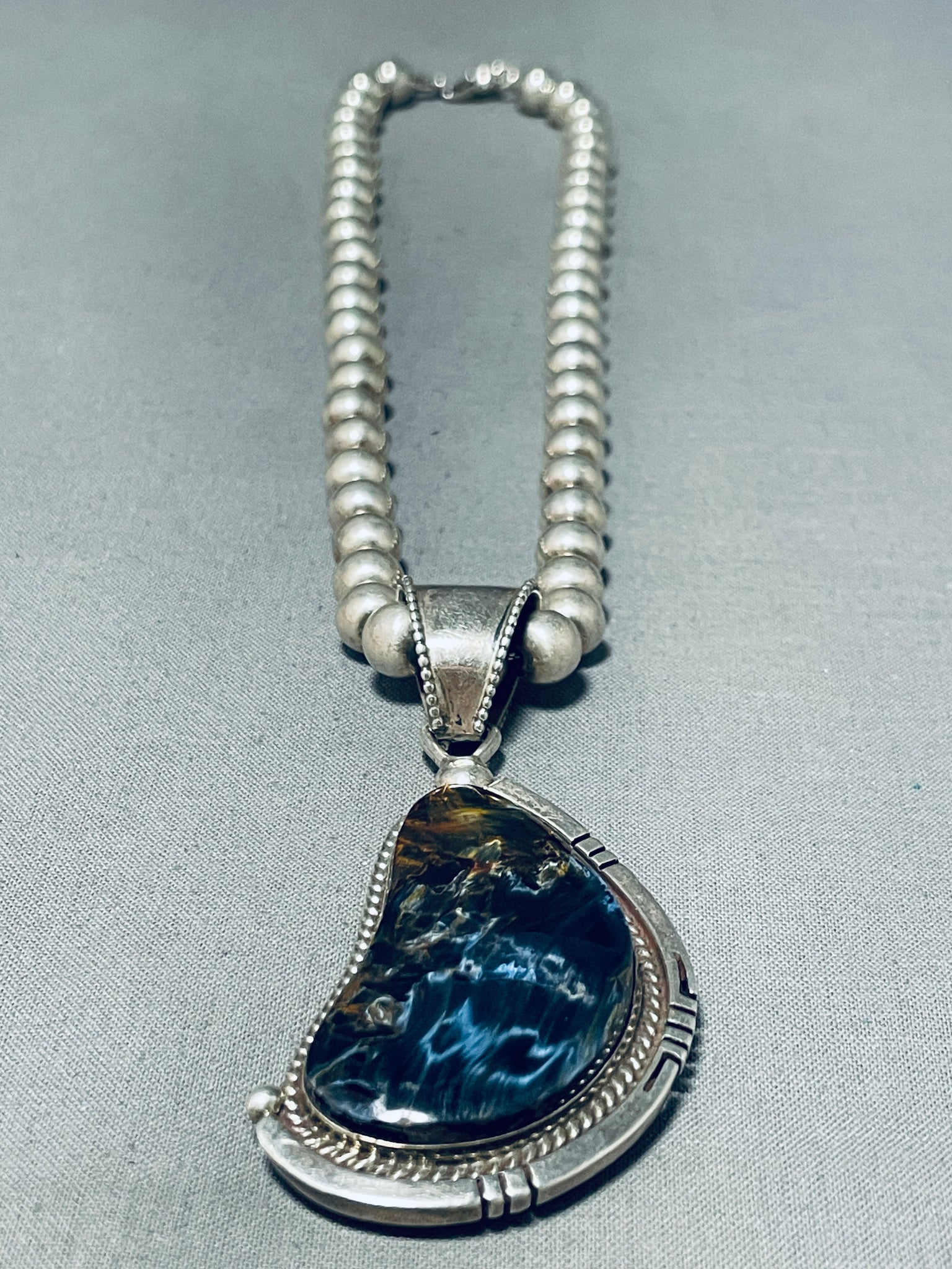 Moonlight Reflection Agate!! Vintage Native American Navajo Sterling Silver Necklace