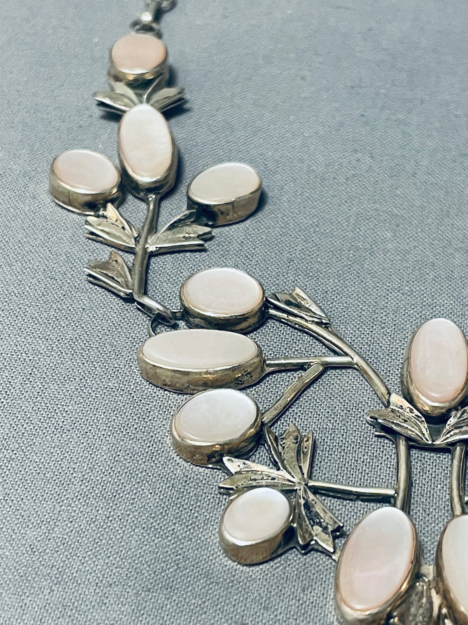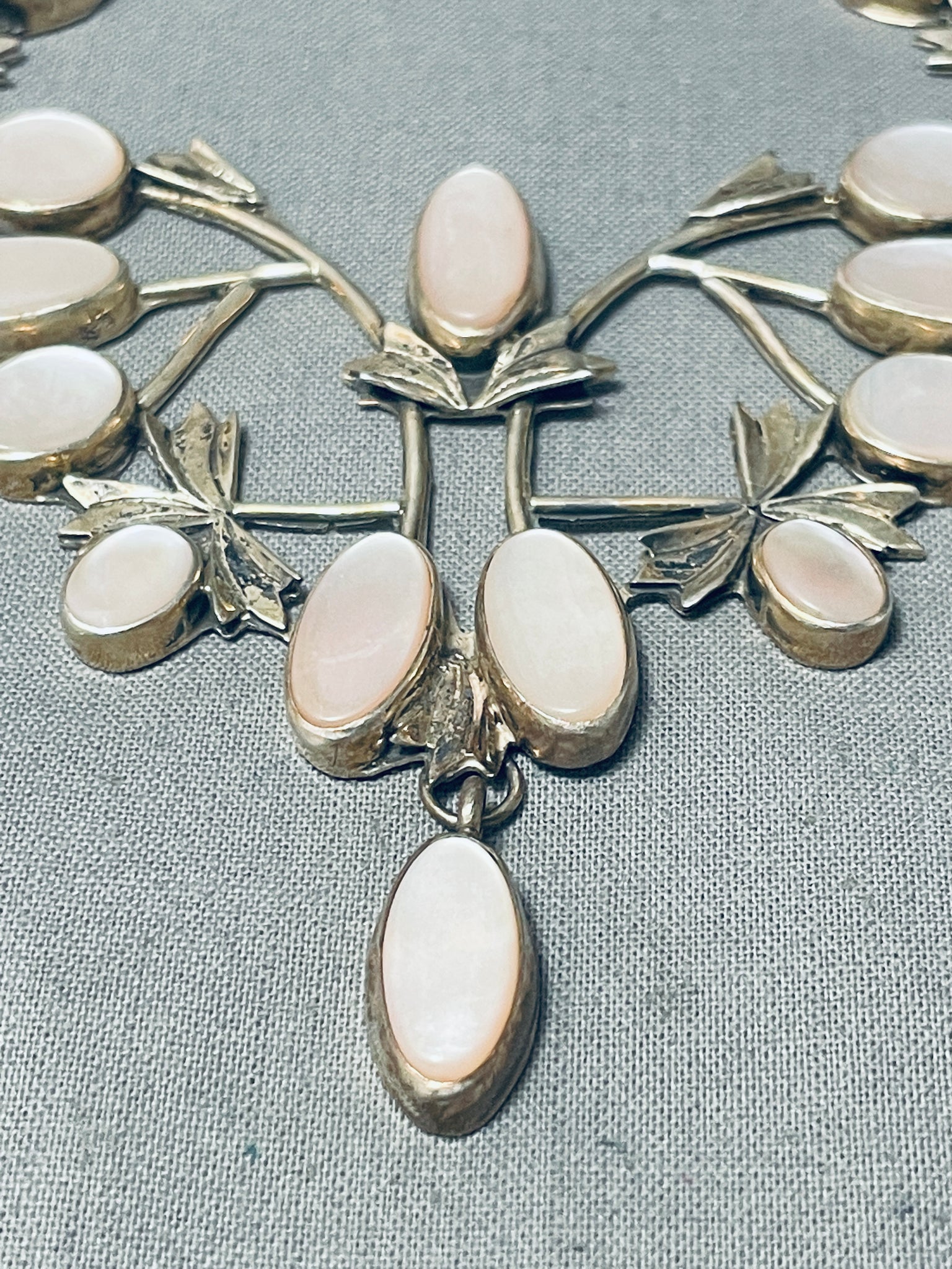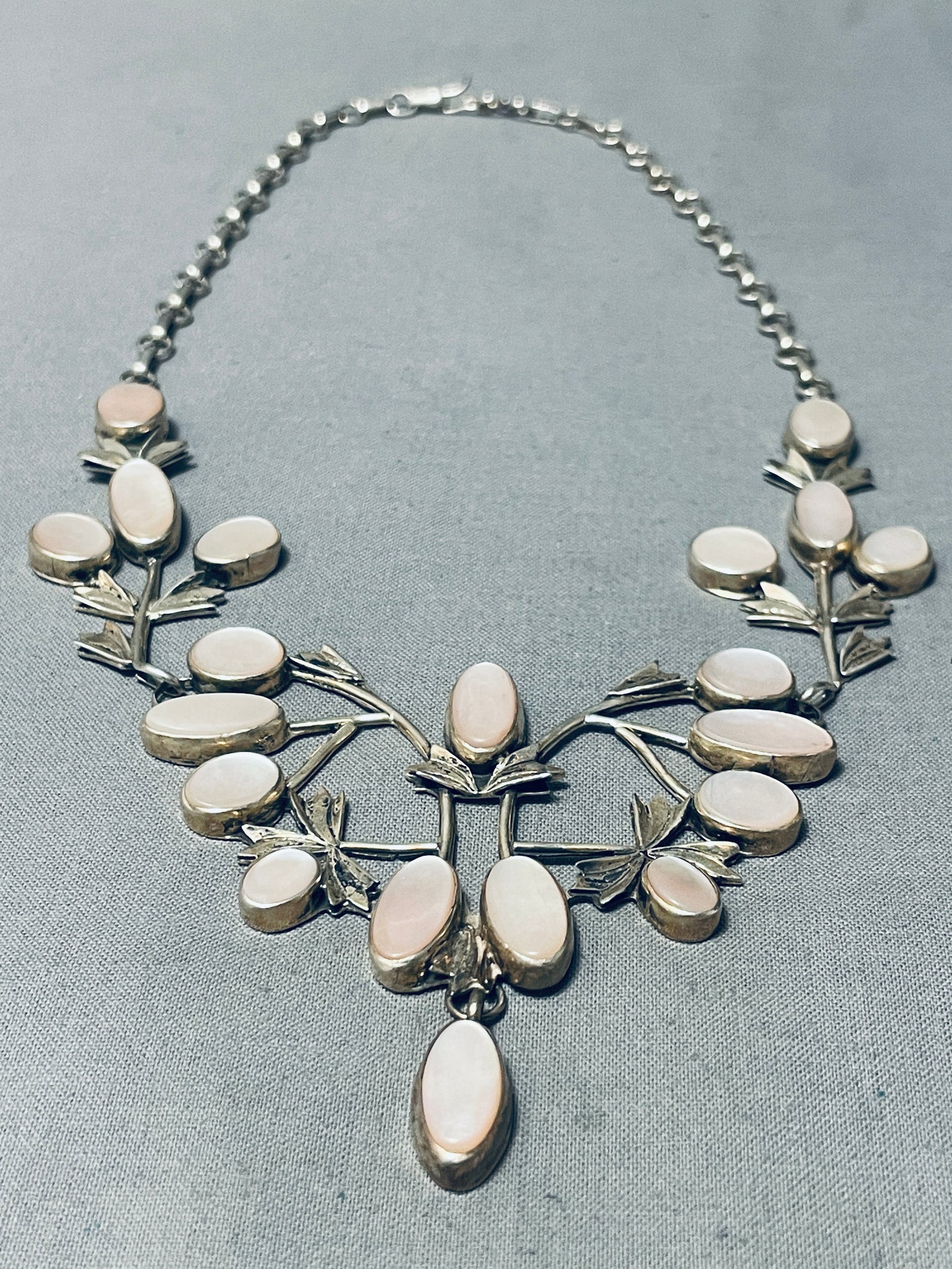 Most Detailed Vintage Native American Navajo Pink Shell Sterling Silver Garden Necklace