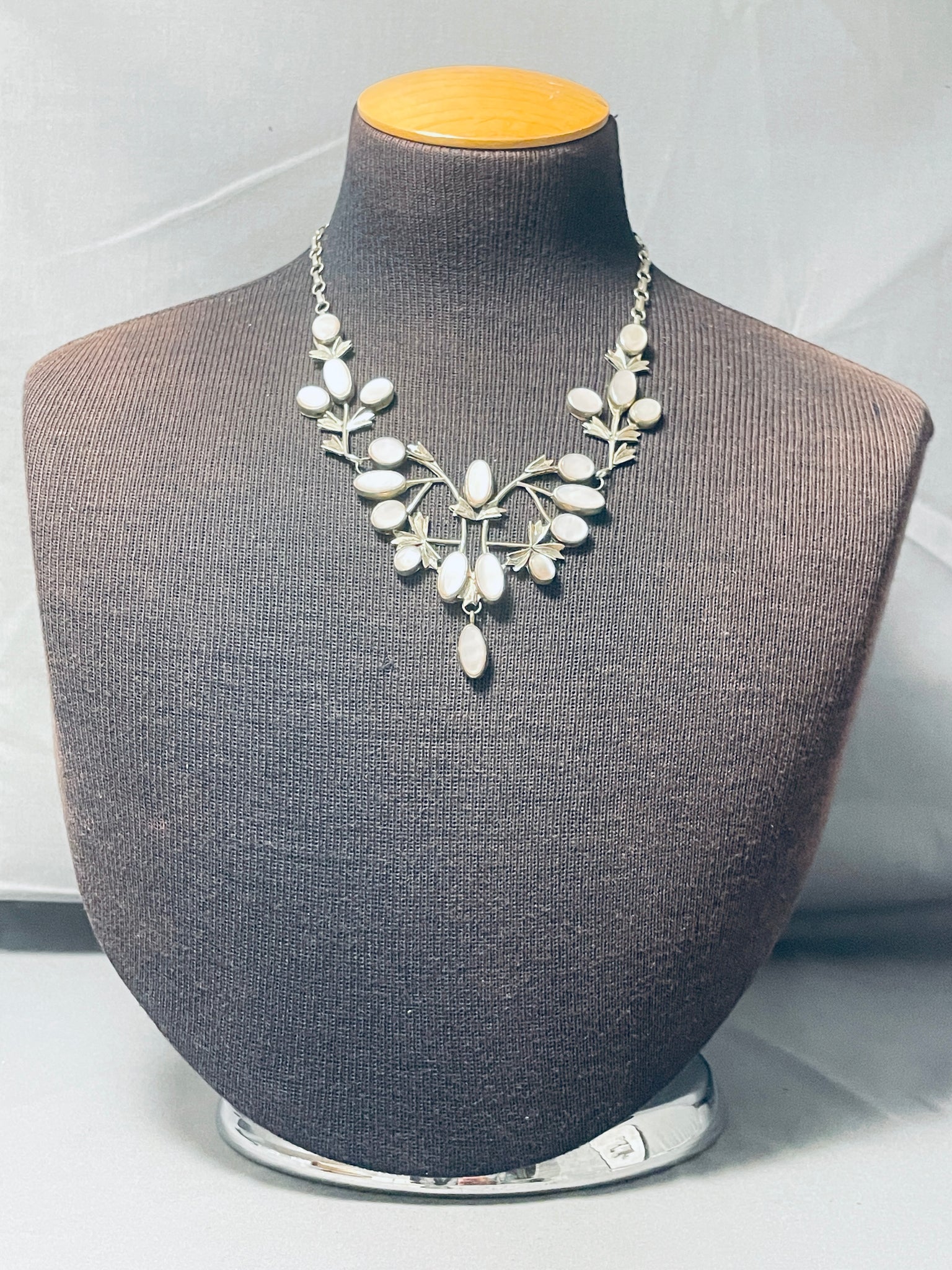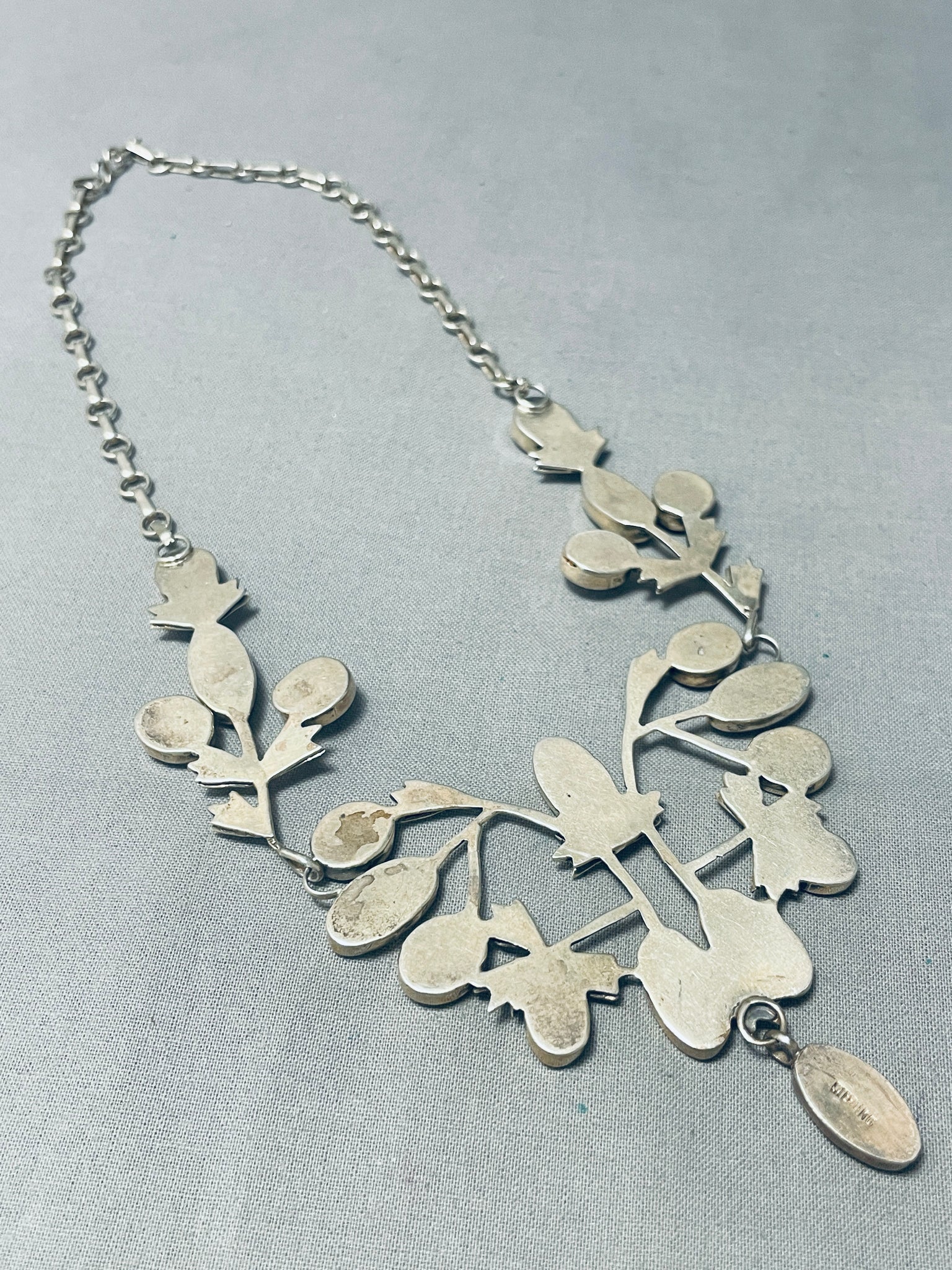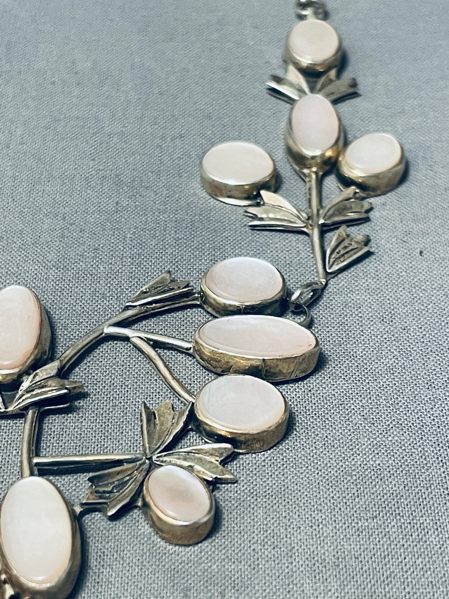 Most Detailed Vintage Native American Navajo Pink Shell Sterling Silver Garden Necklace