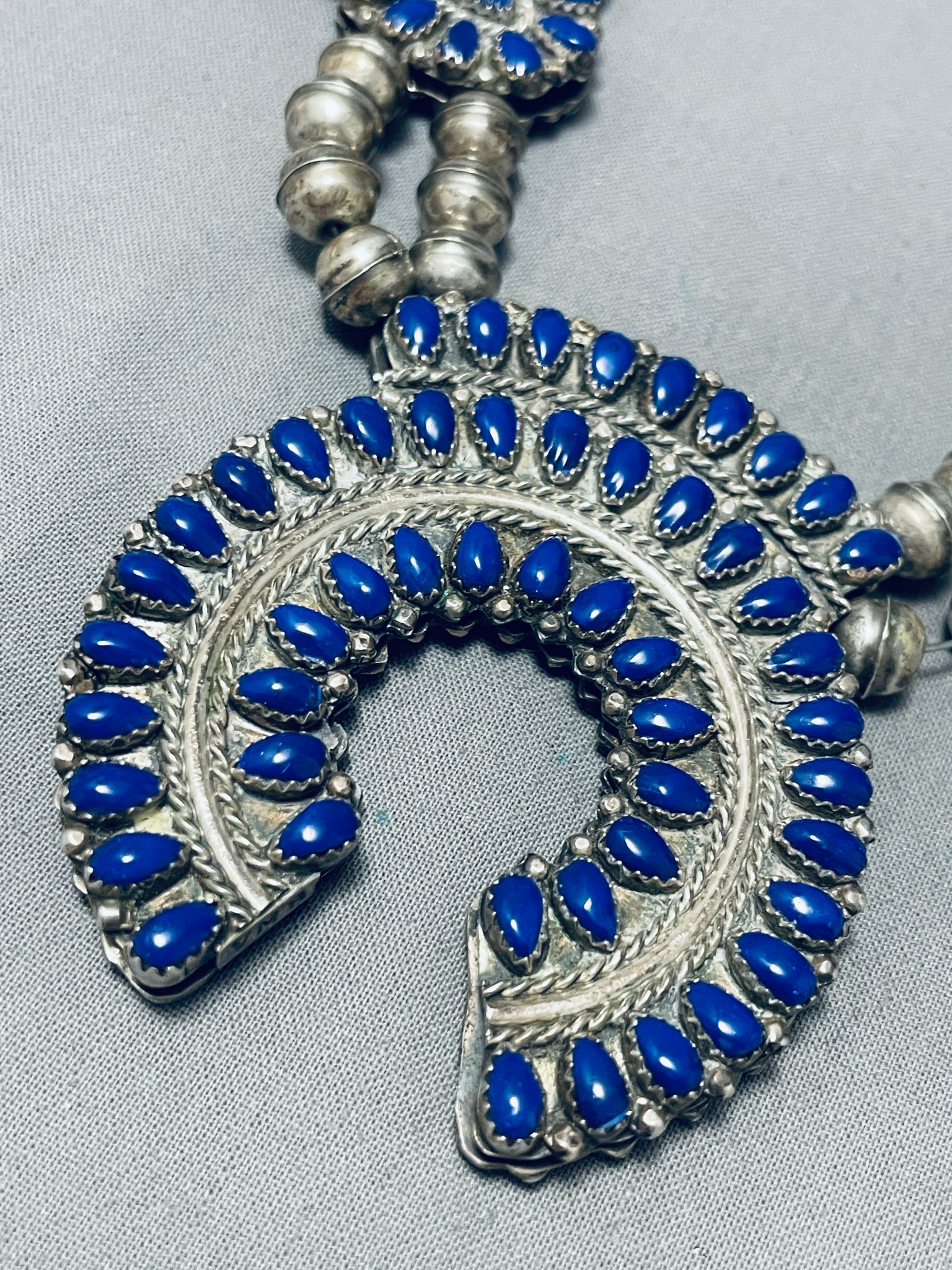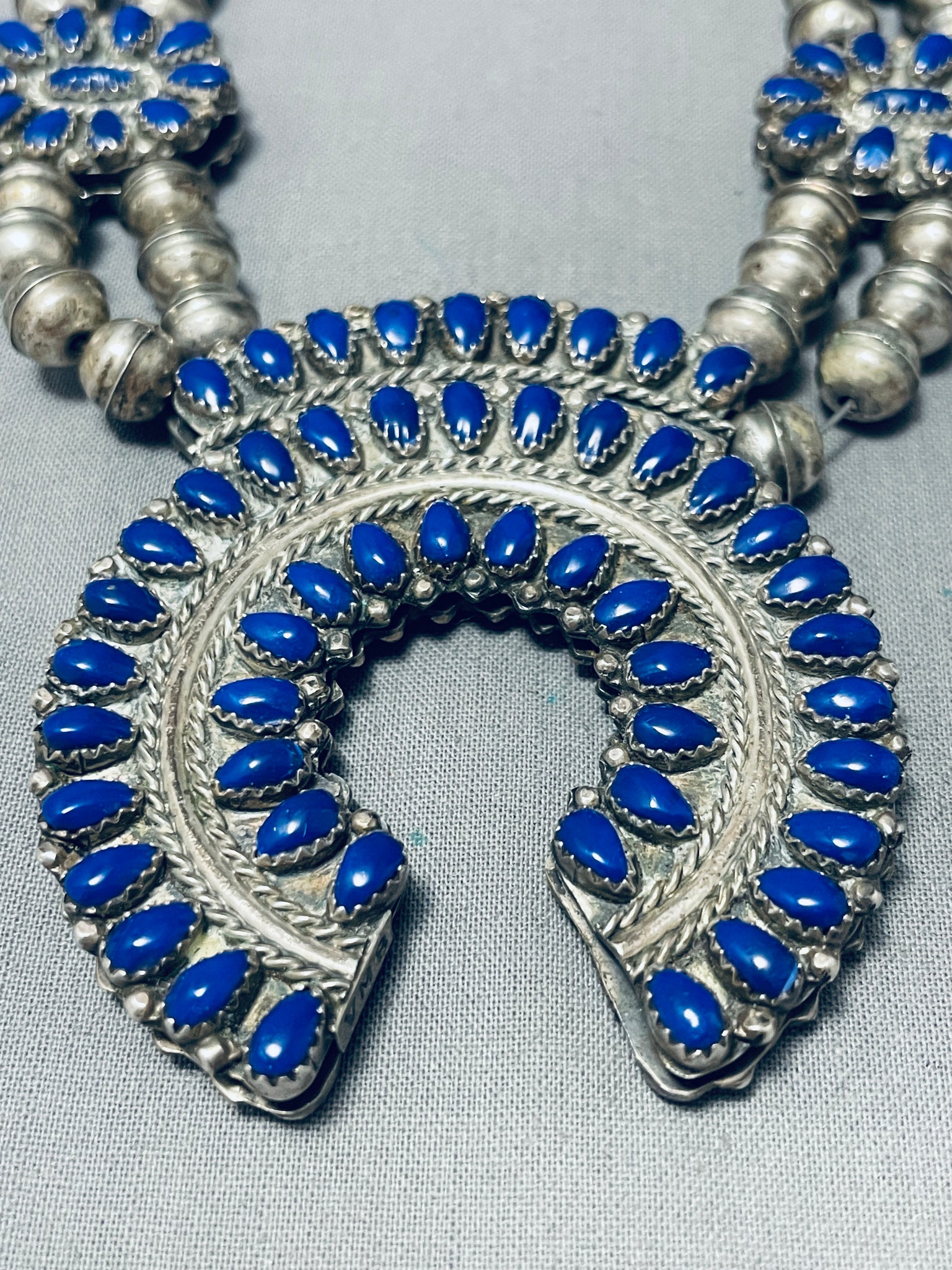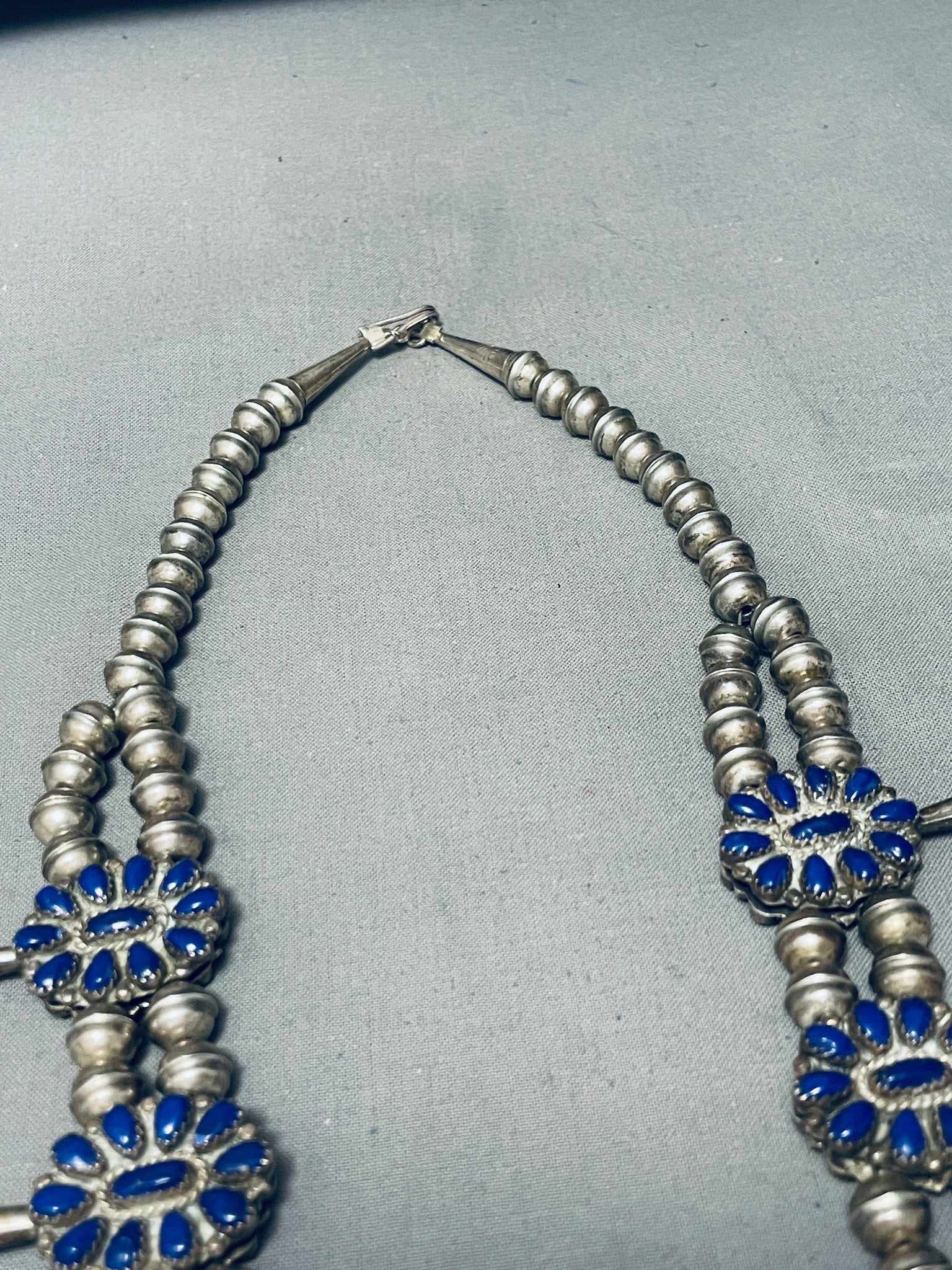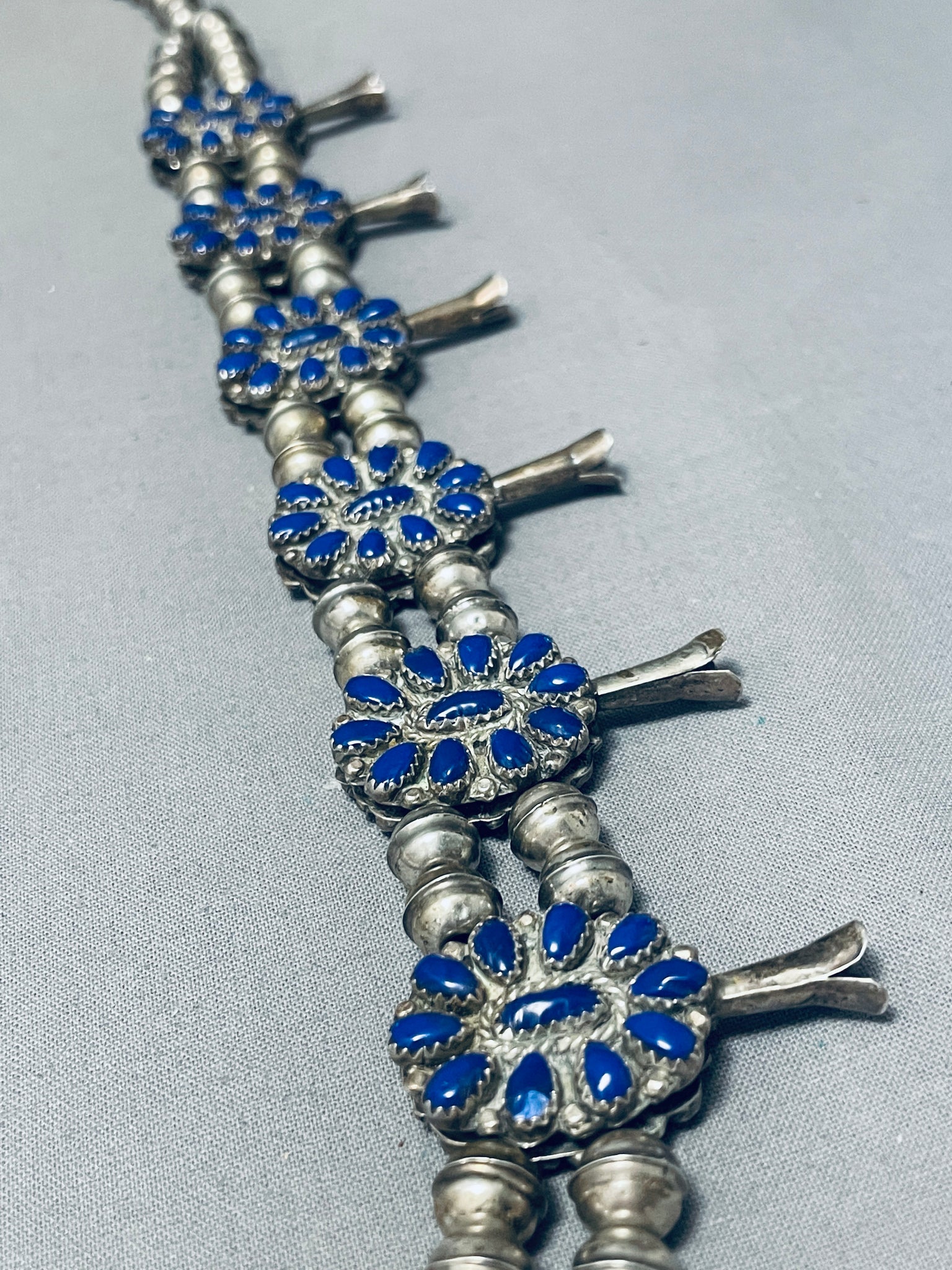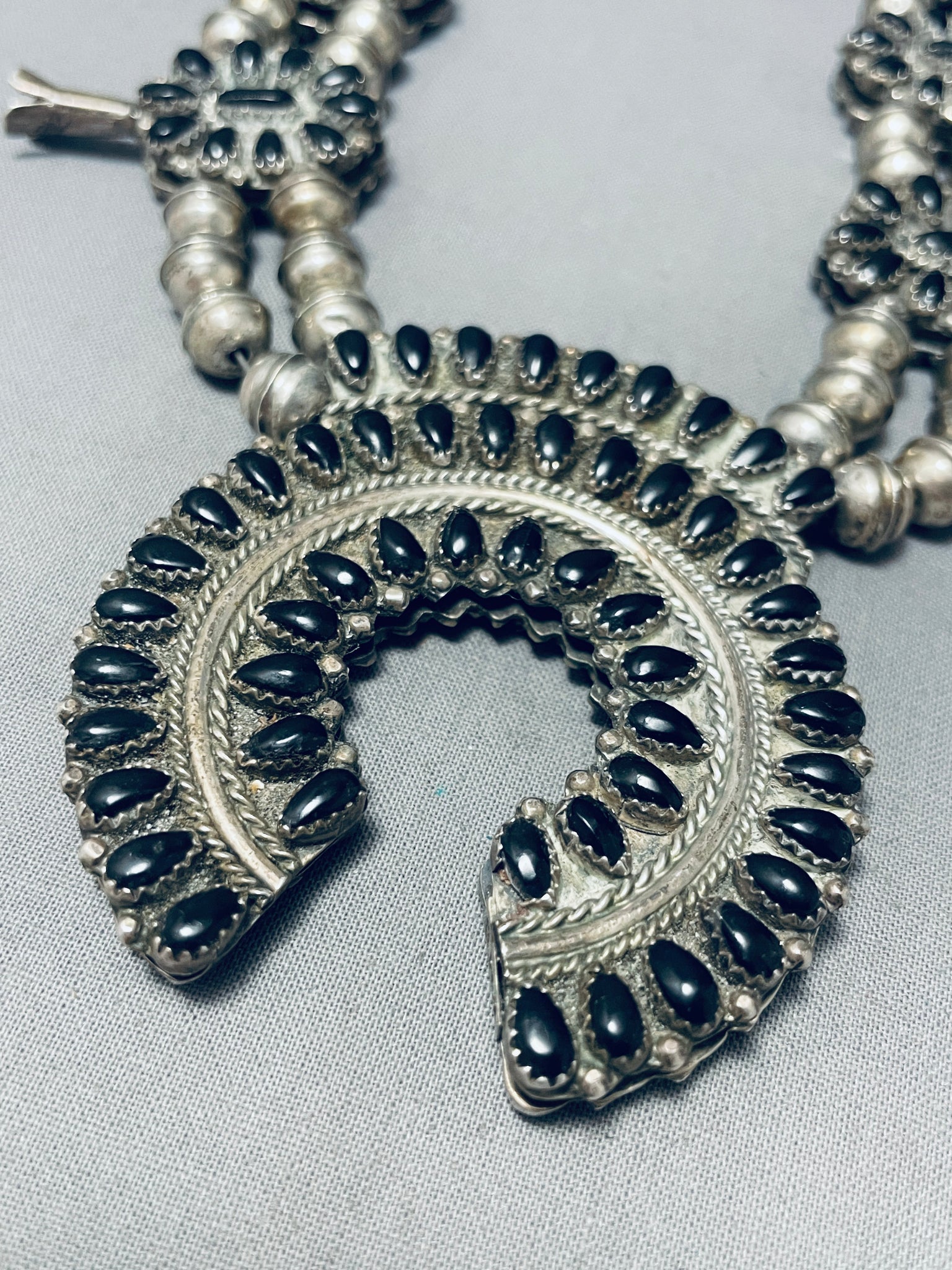 Most Unique Double Sided Vintage Native American Navajo Sterling Silver Squash Blossom Necklace