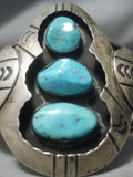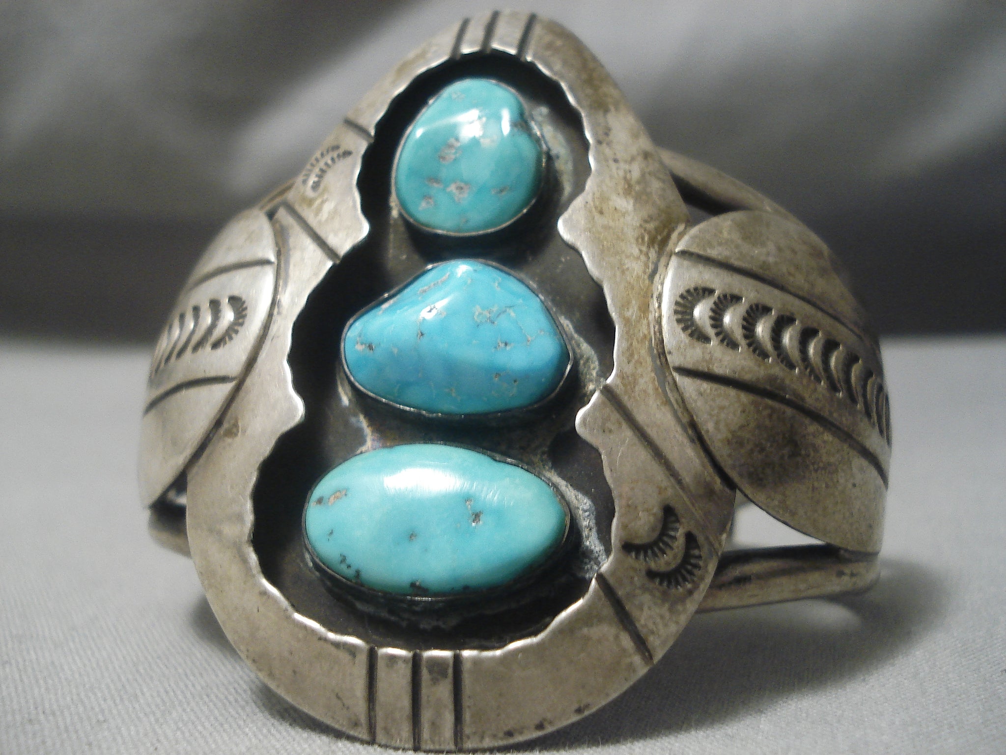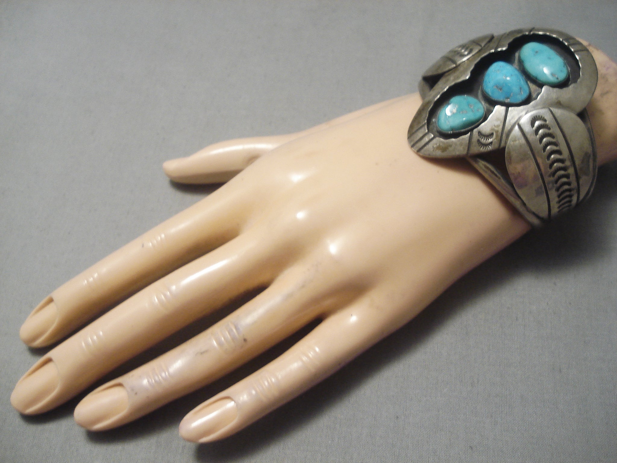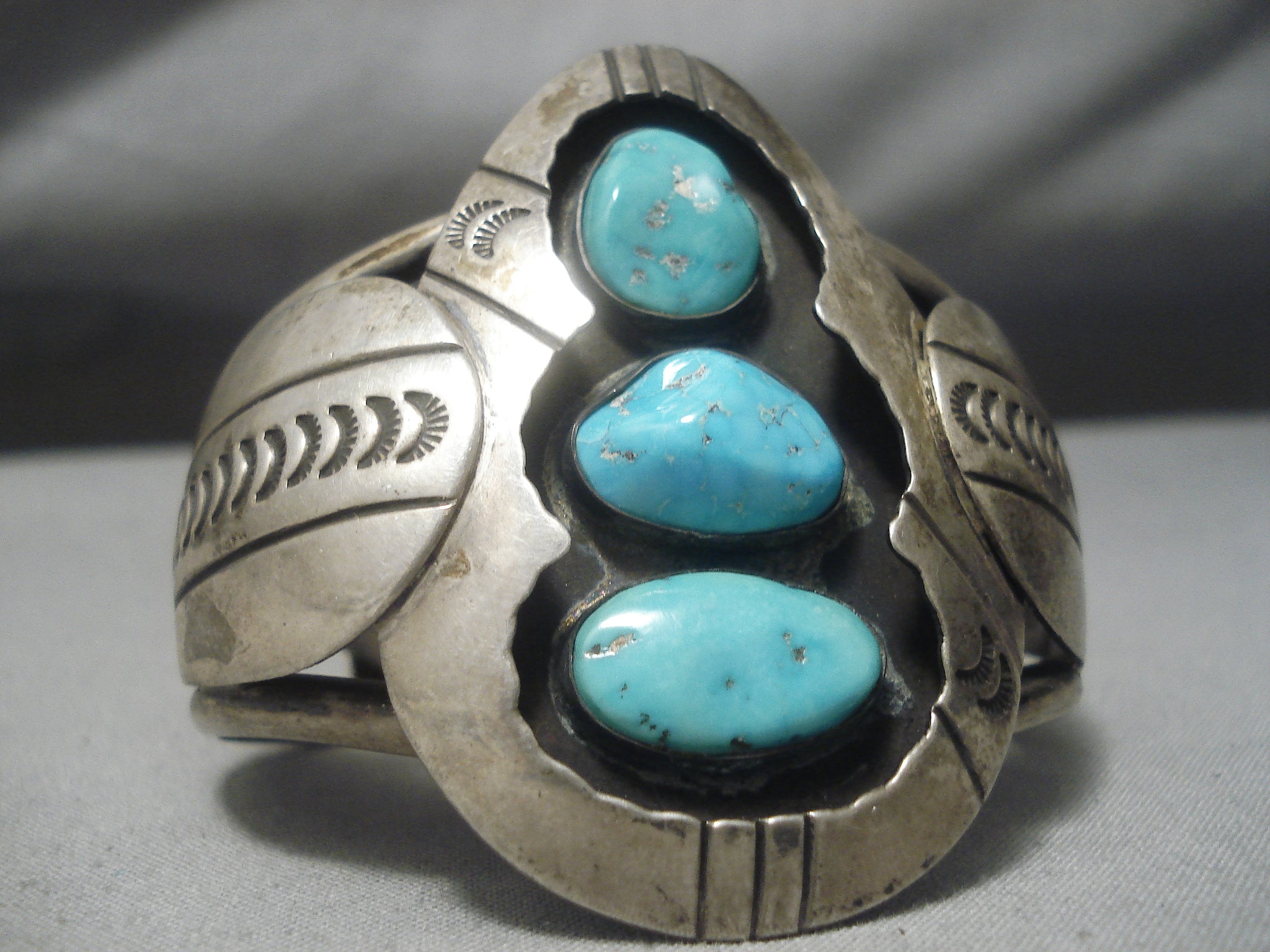 Museum 3 Tier Vintage Native American Navajo Turquoise Sterling Silver Bracelet Old