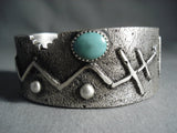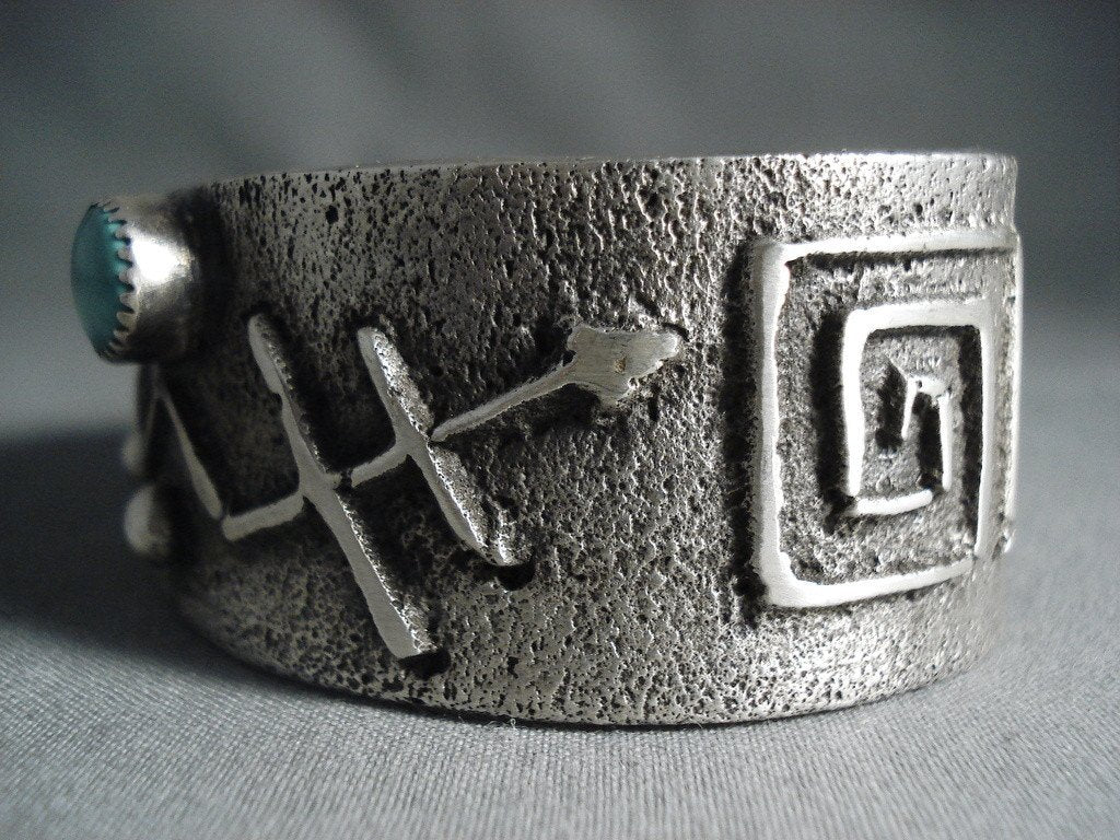 Museum Geometric Petroglyph Sterling Native American Jewelry Silver Domed Turquoise Bracelet
