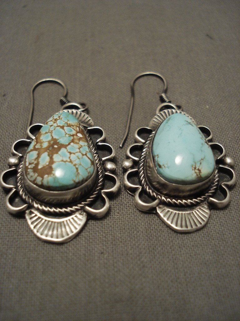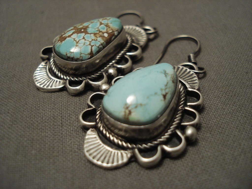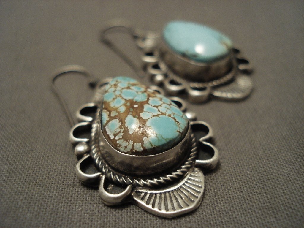 Museum Navajo Natural #8 Turquoise Native American Jewelry Silver Earrings