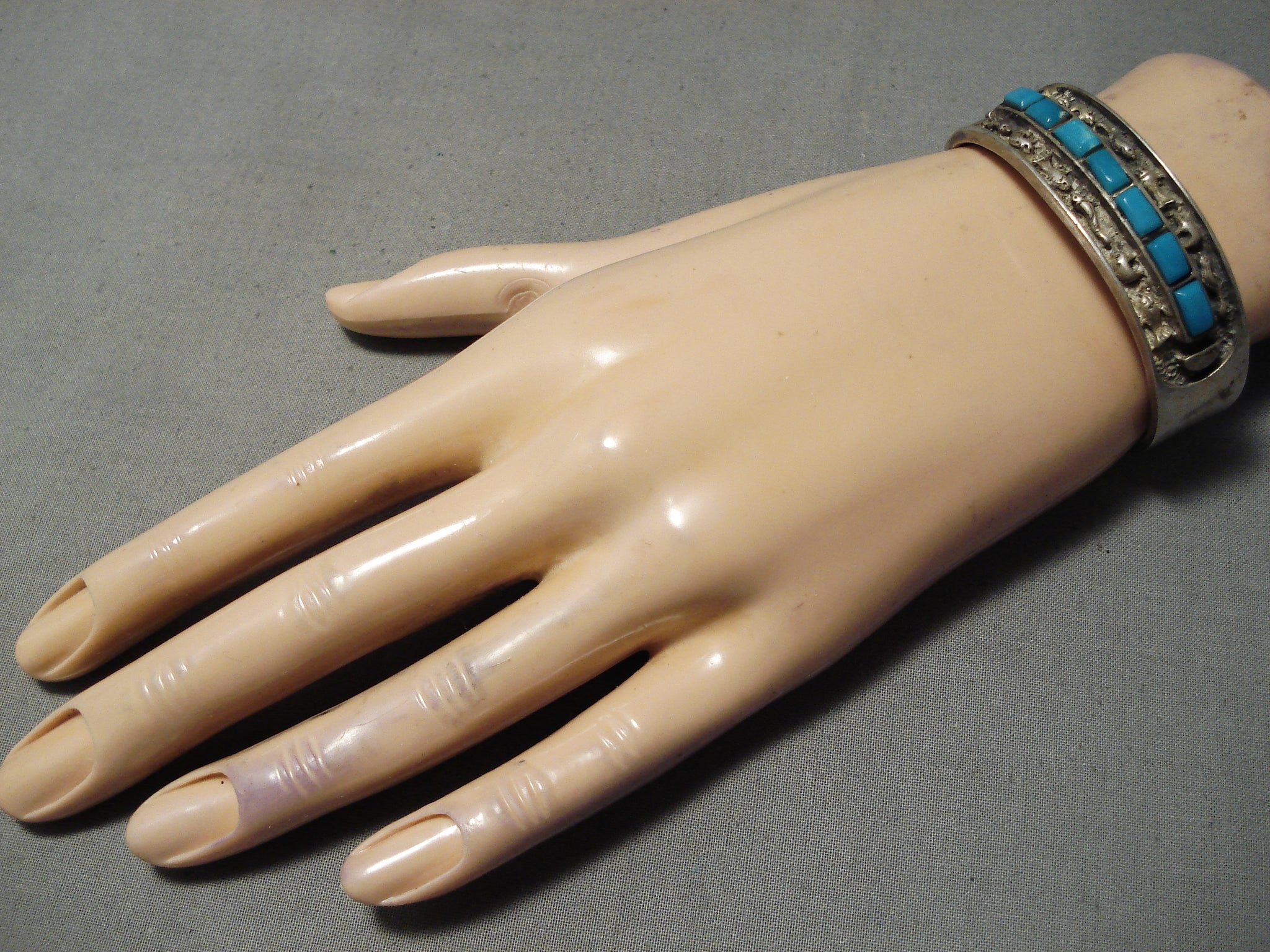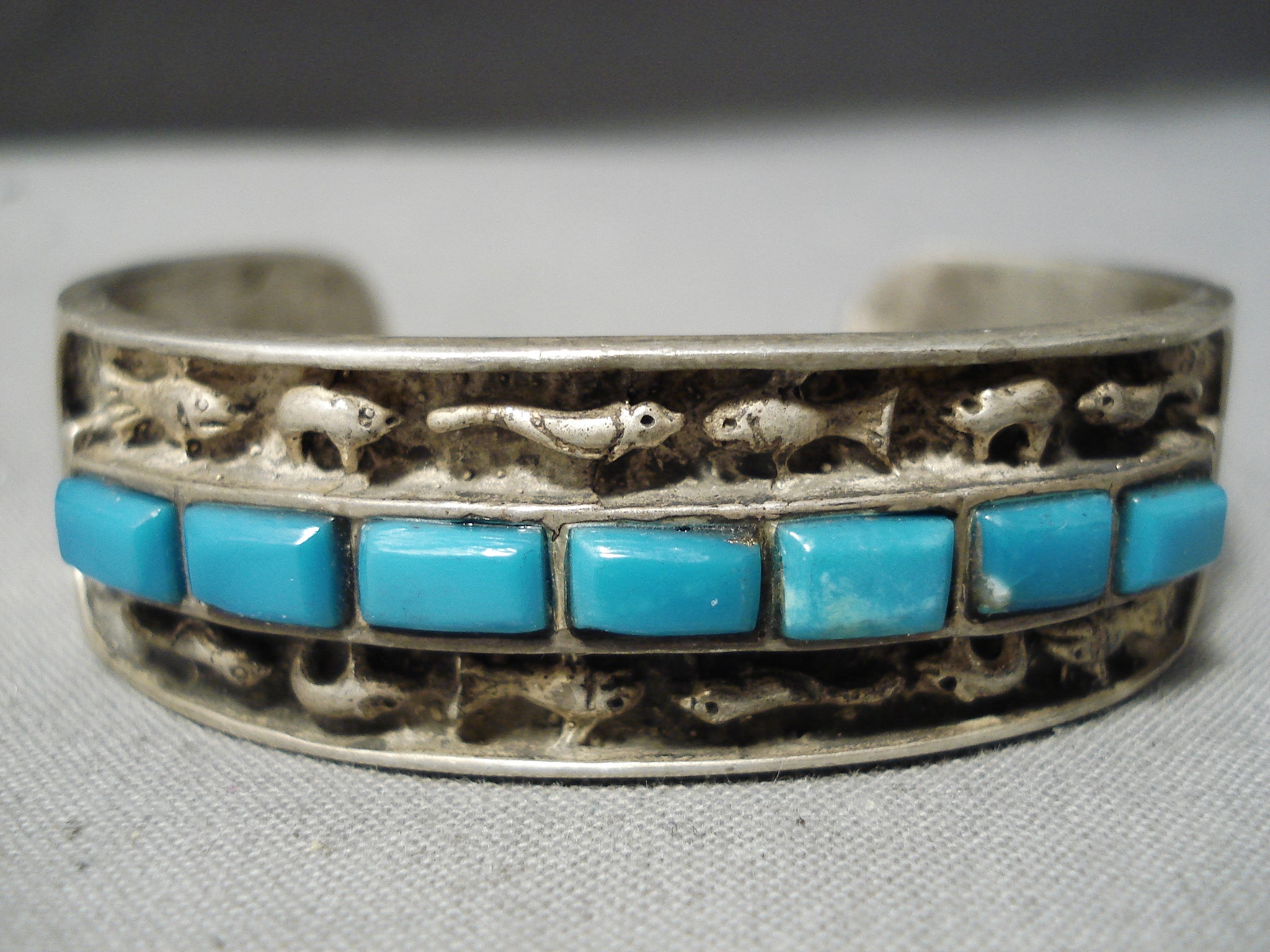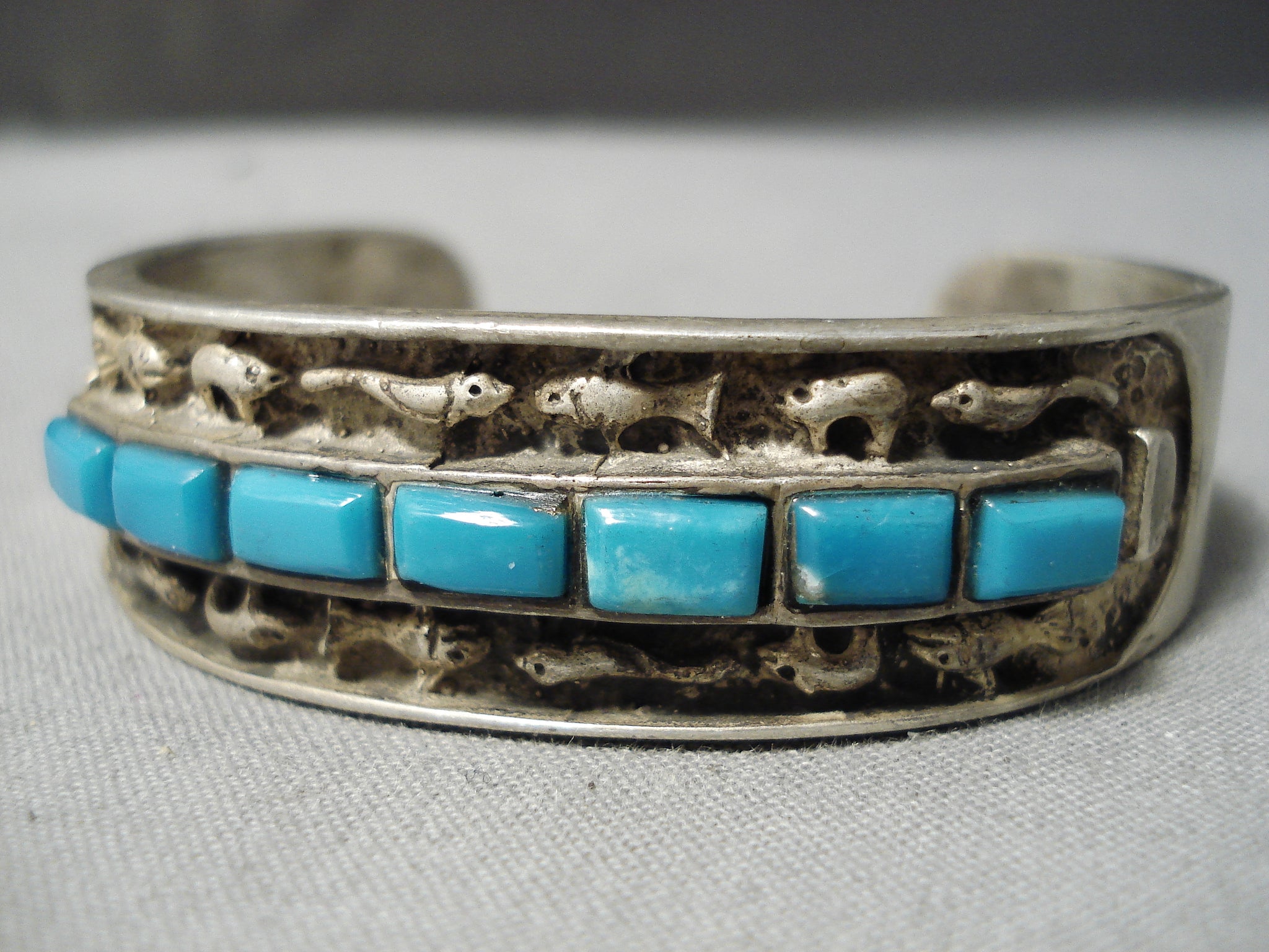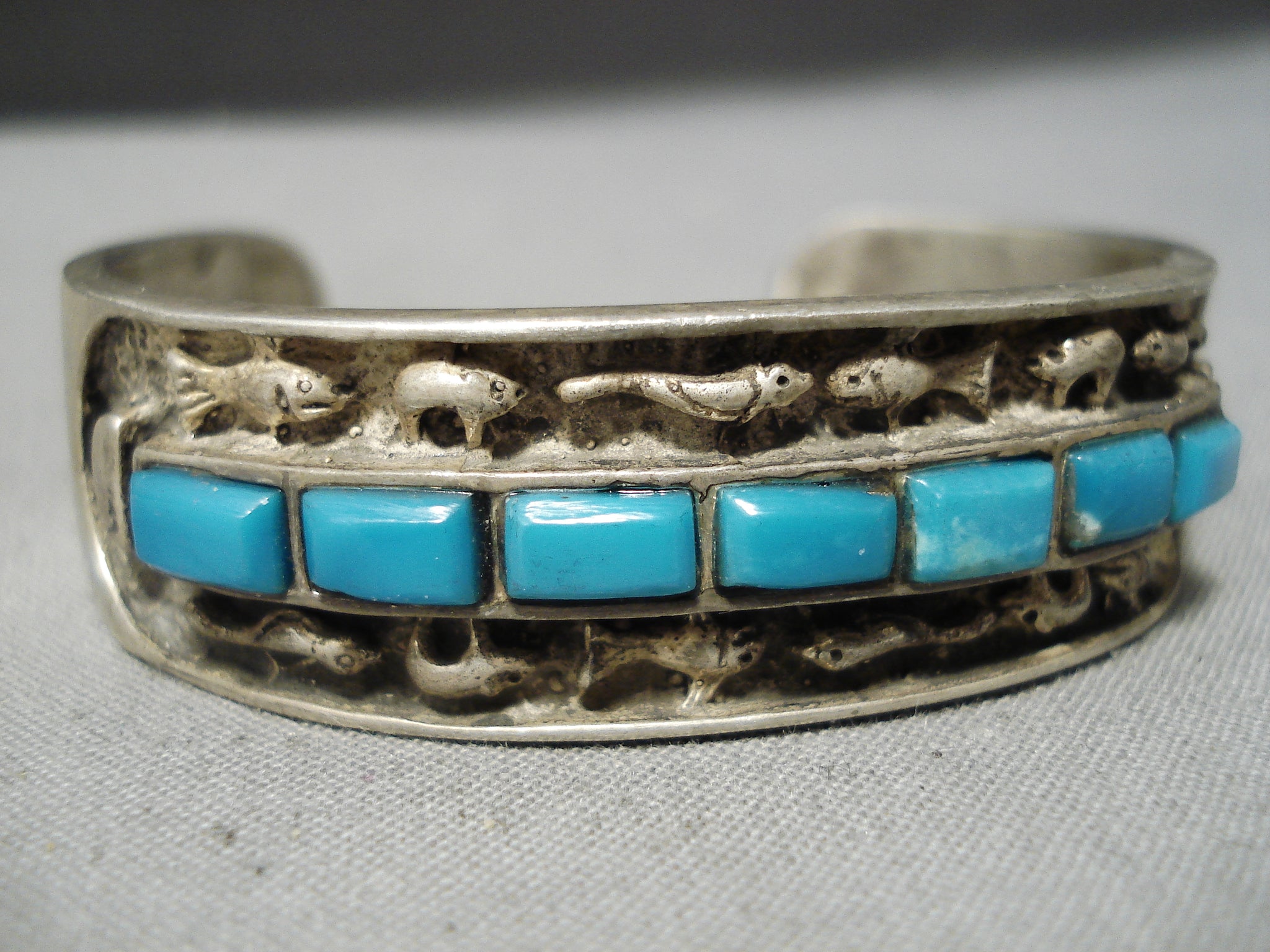 Museum Vintage Native American Navajo Animal Fetish Turquoise Sterling Silver Bracelet Old