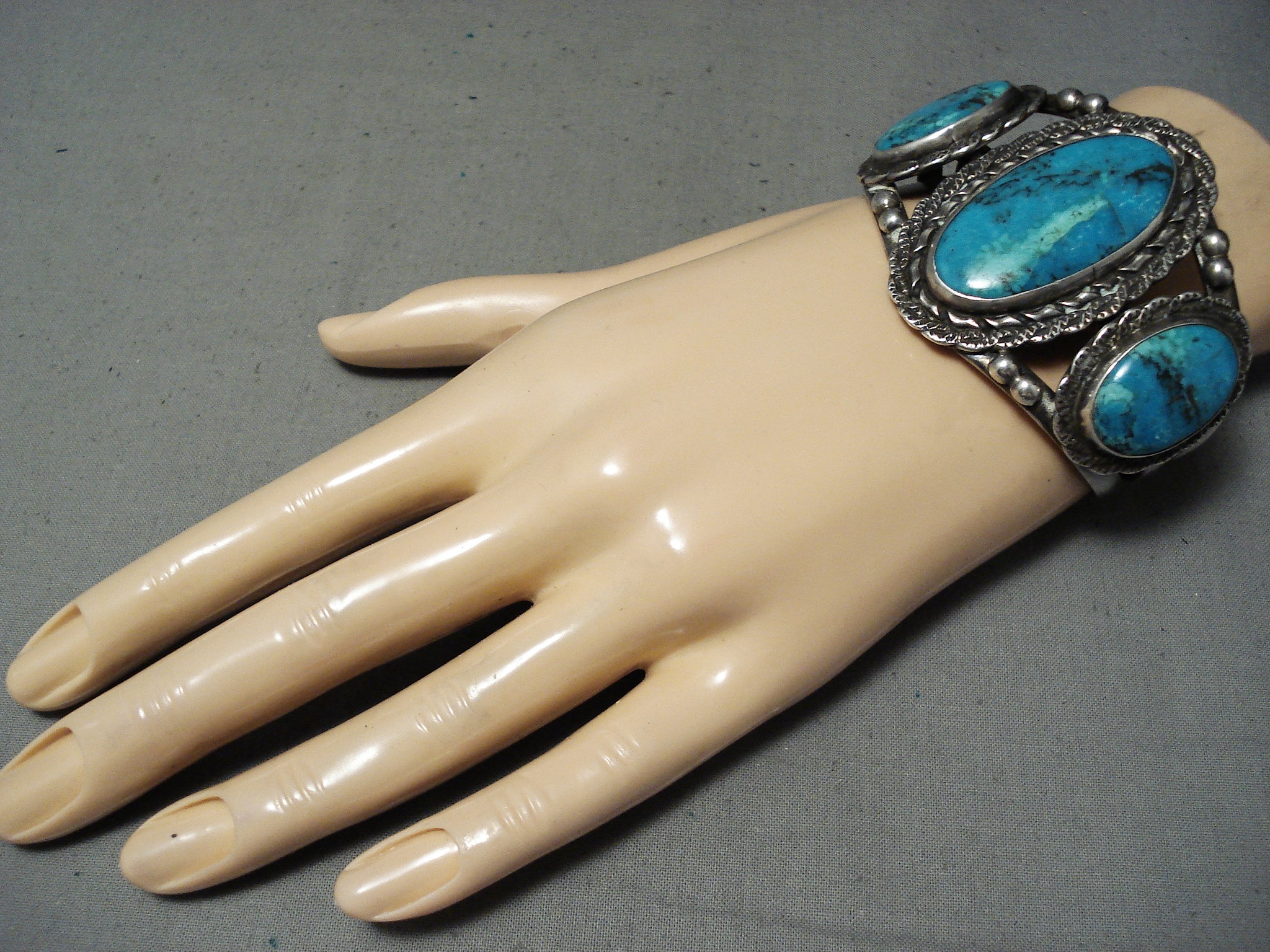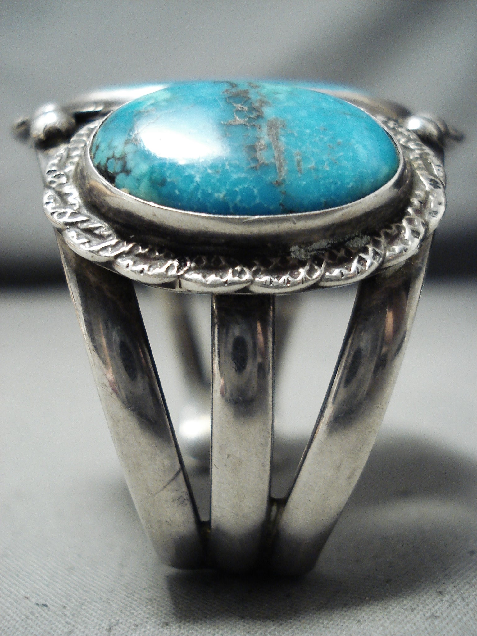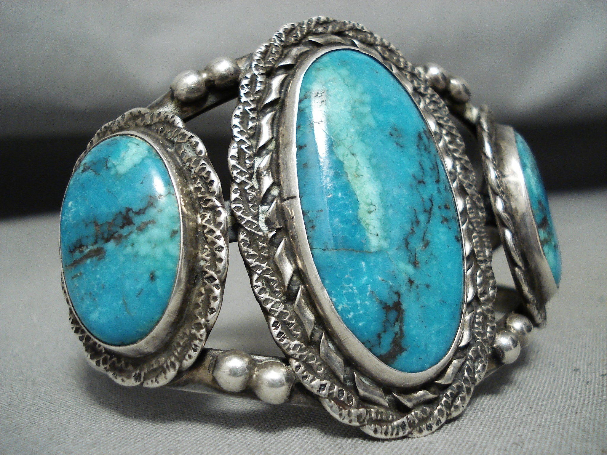 Museum Vintage Native American Navajo Blue Diamond Turquoise Sterling Silver Bracelet