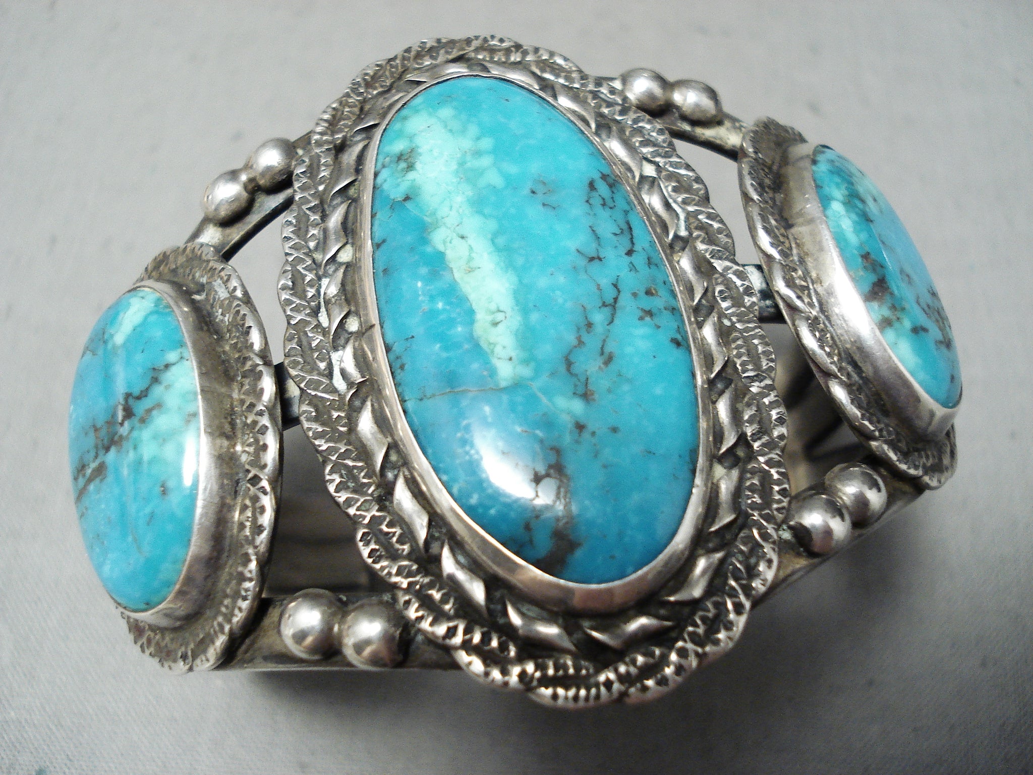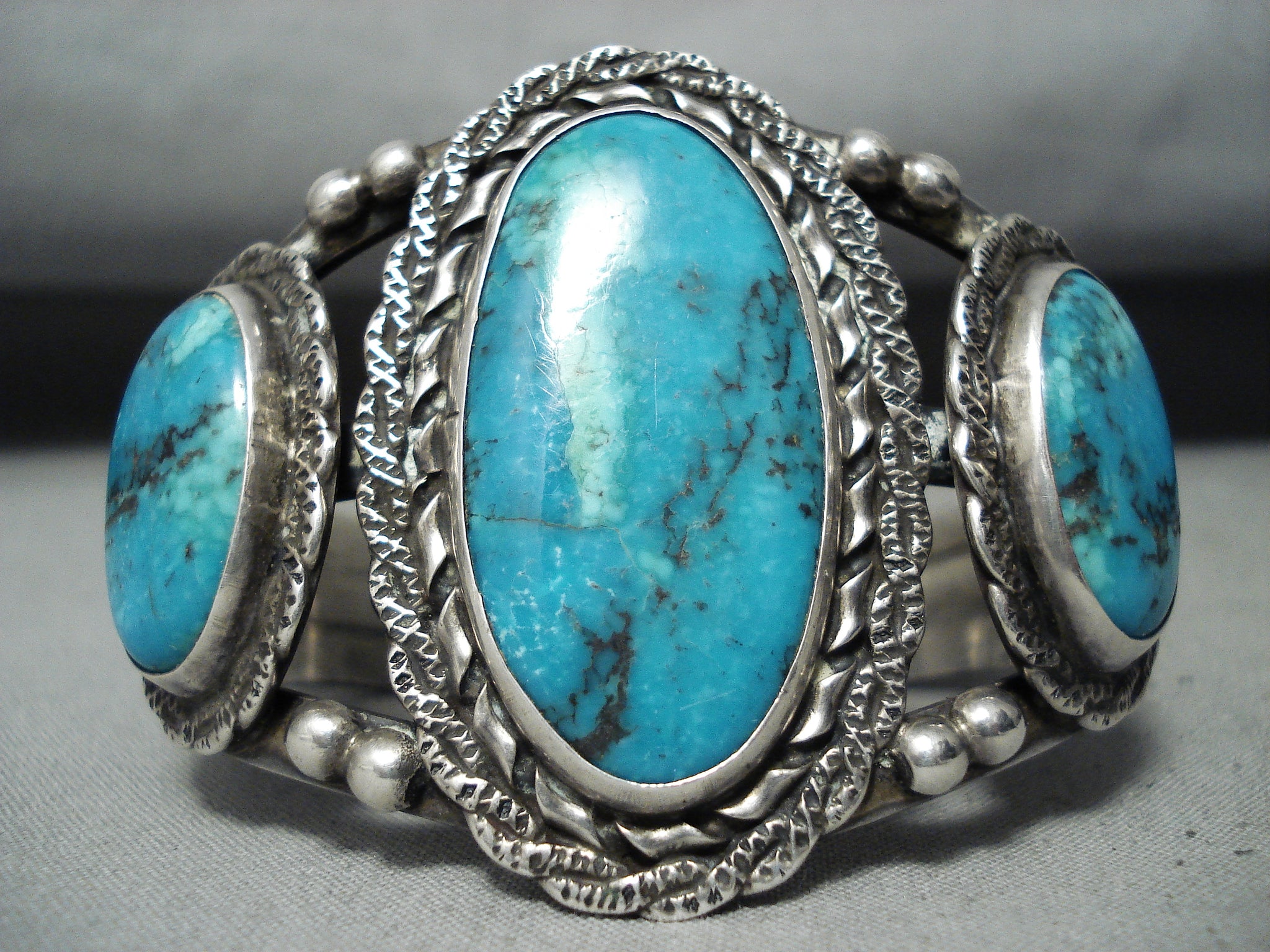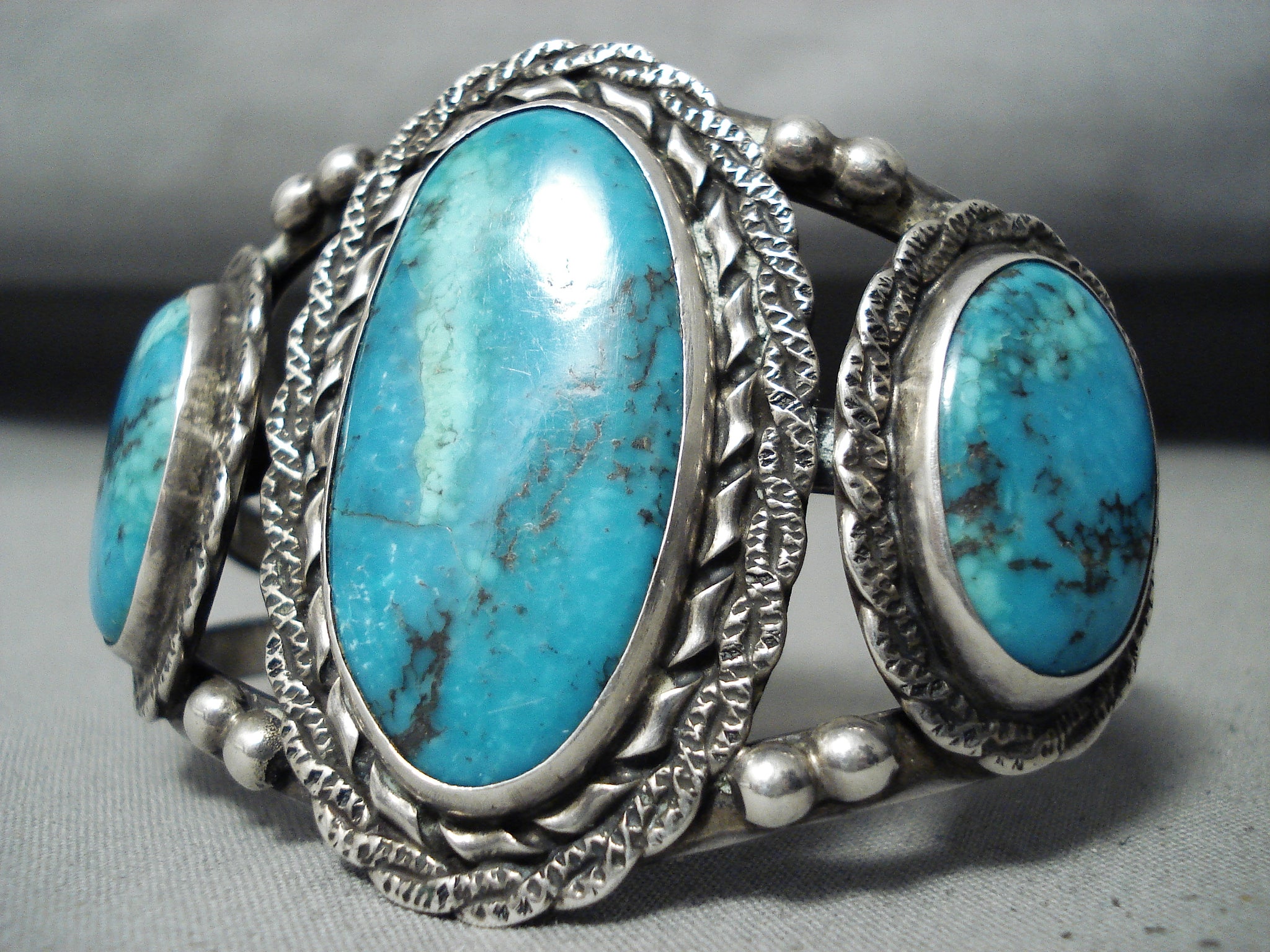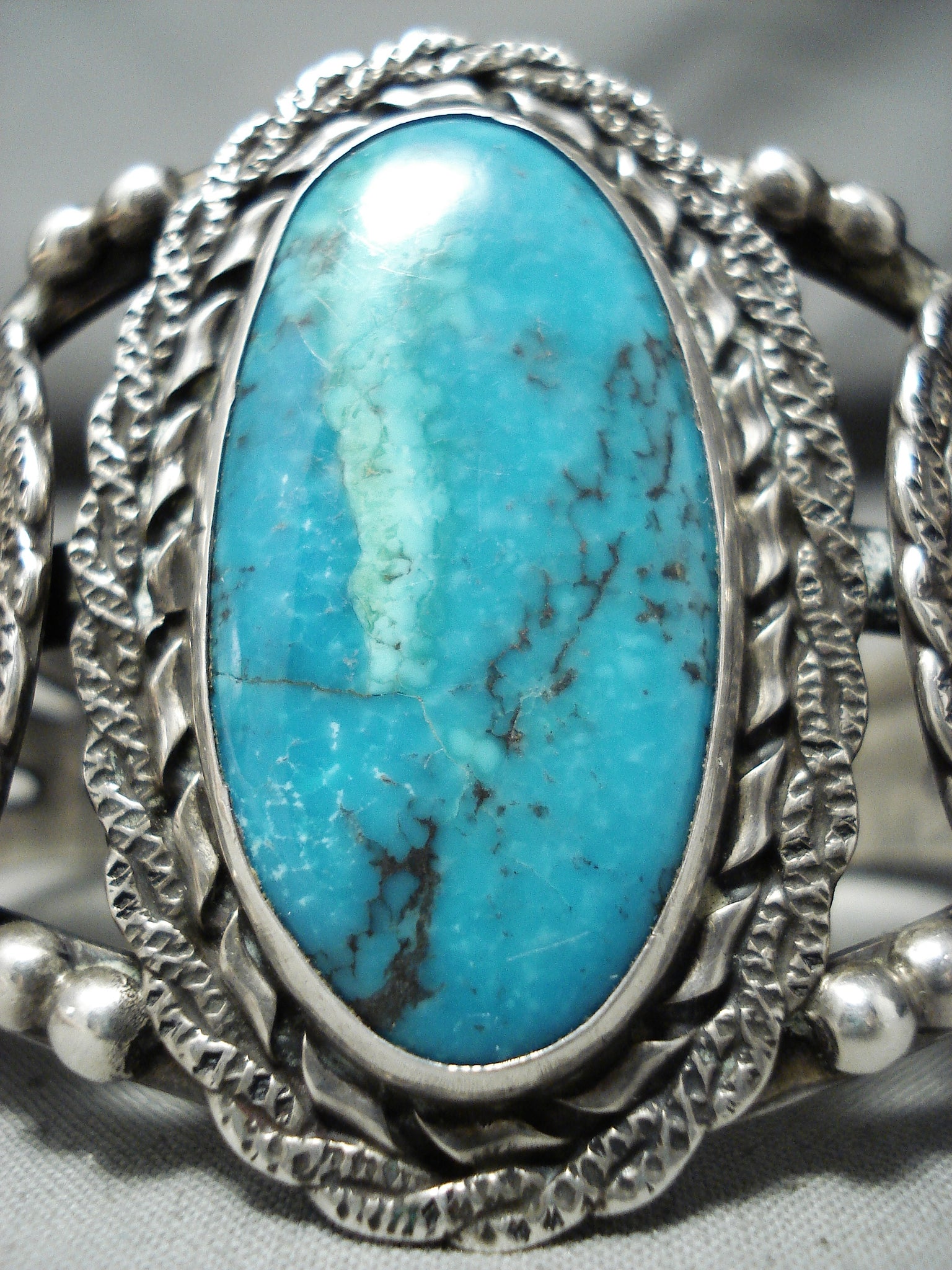 Museum Vintage Native American Navajo Blue Diamond Turquoise Sterling Silver Bracelet