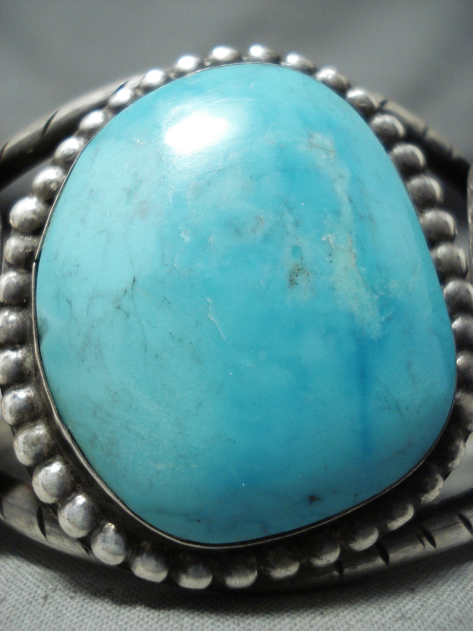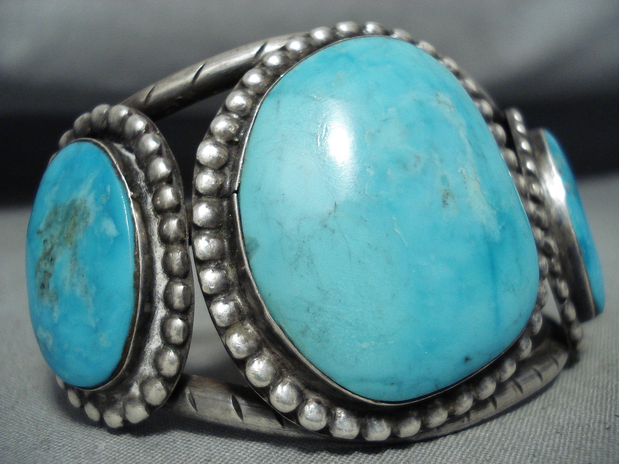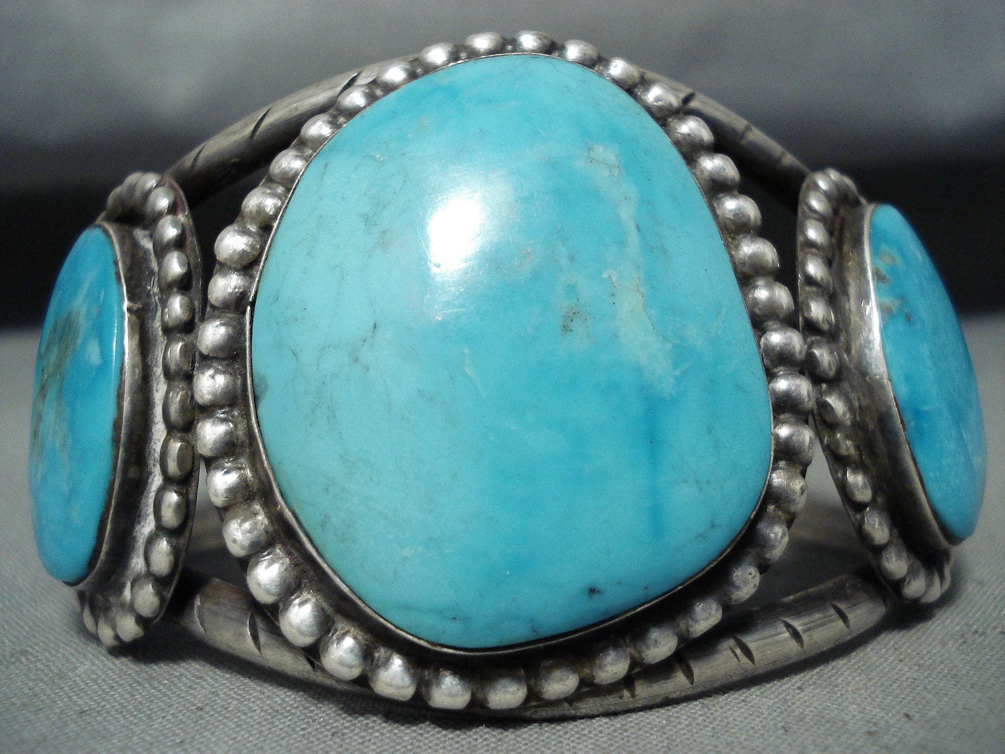 Museum Vintage Native American Navajo Easter Blue Turquoise Sterling Silver Bracelet