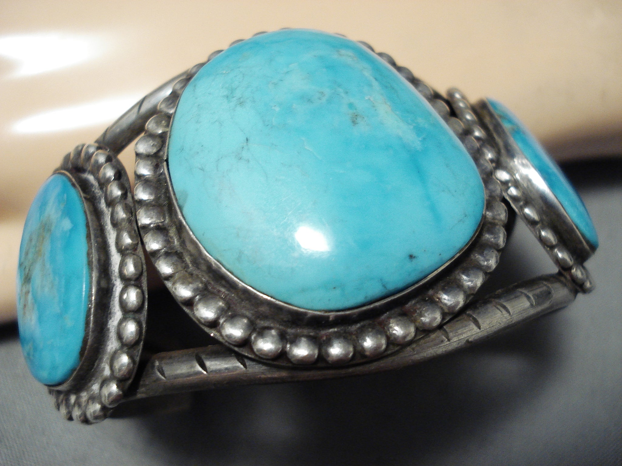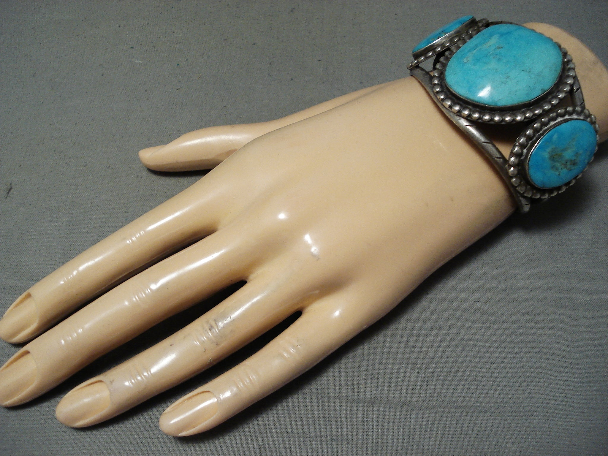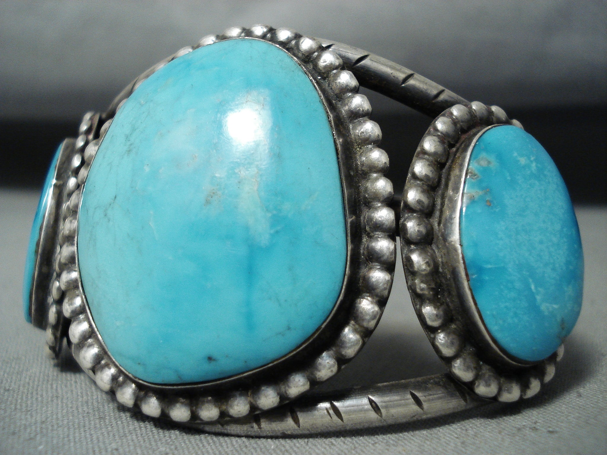 Museum Vintage Native American Navajo Easter Blue Turquoise Sterling Silver Bracelet