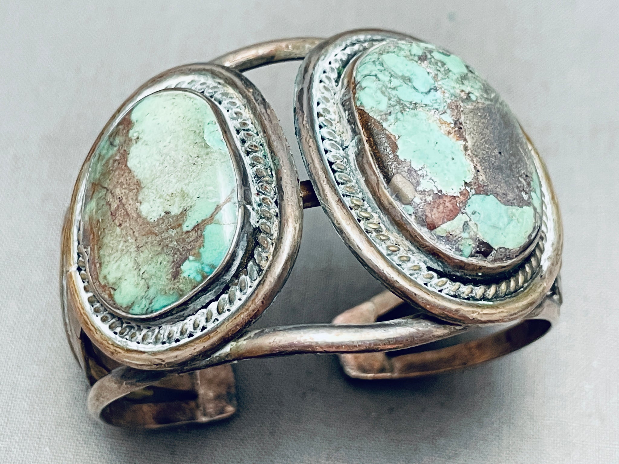 Museum Vintage Native American Navajo Green Turquoise Sterling Silver Bracelet