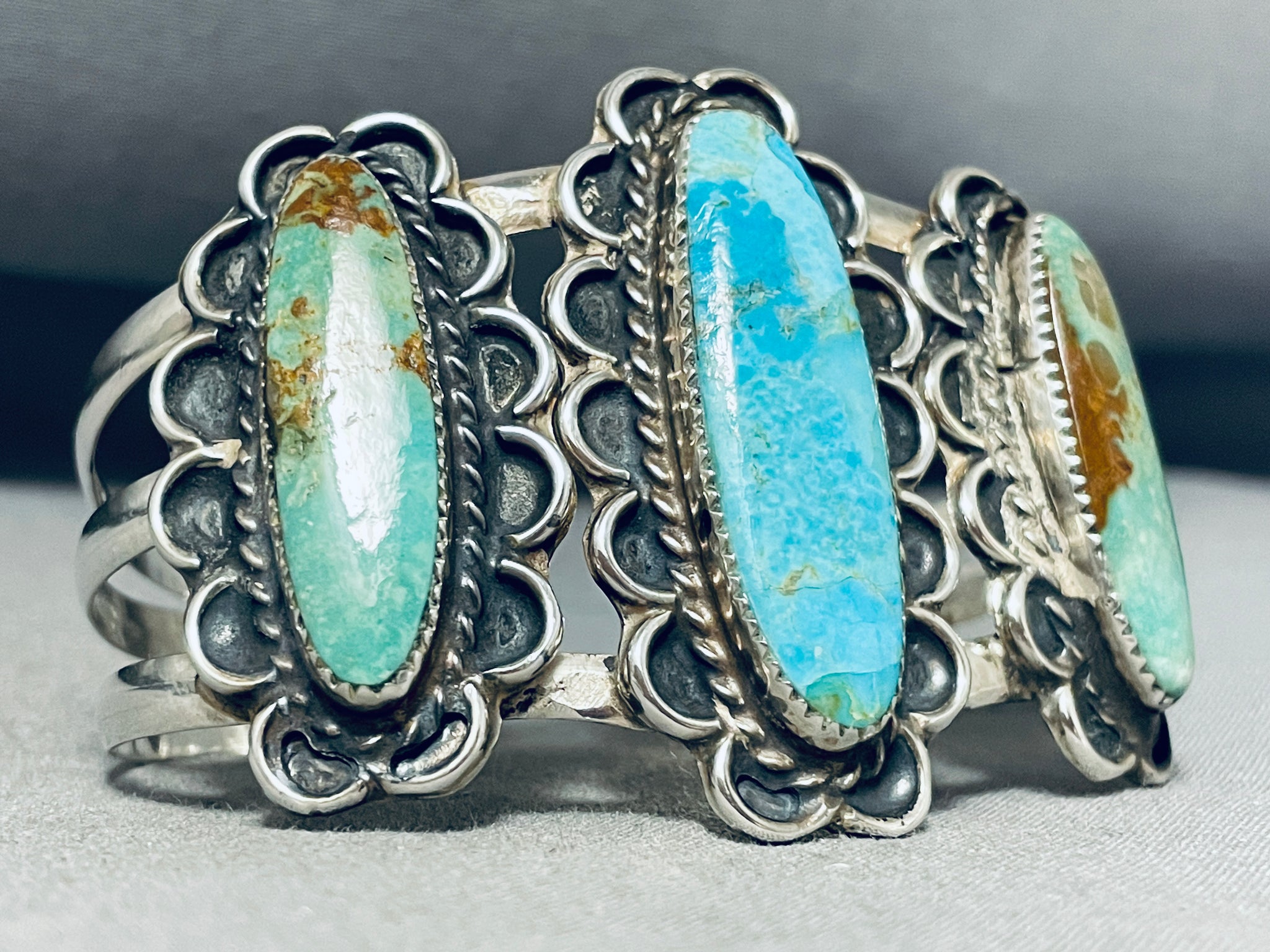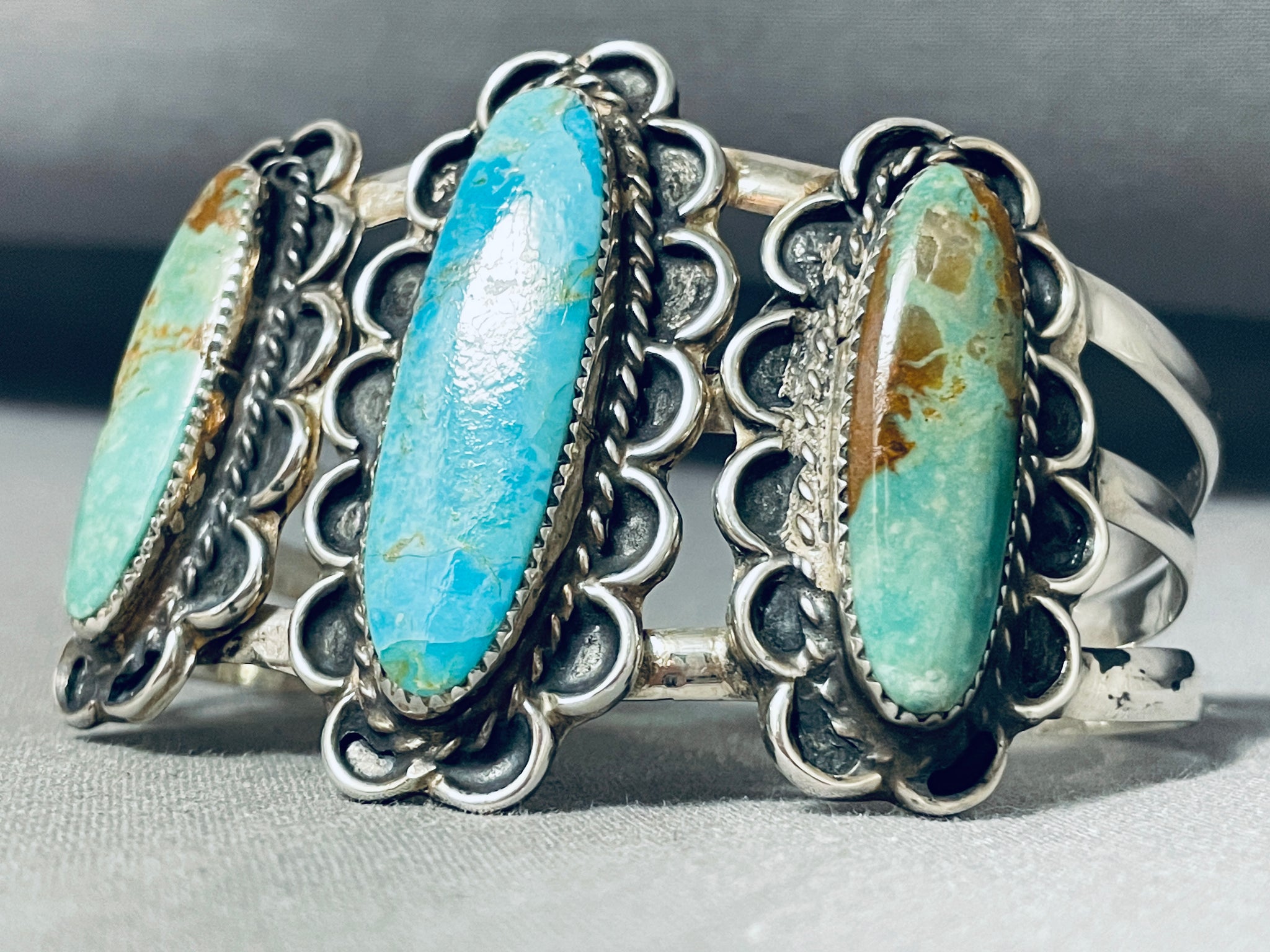Museum Vintage Native American Navajo Long Turquoise Sterling Silver Bracelet Cuff