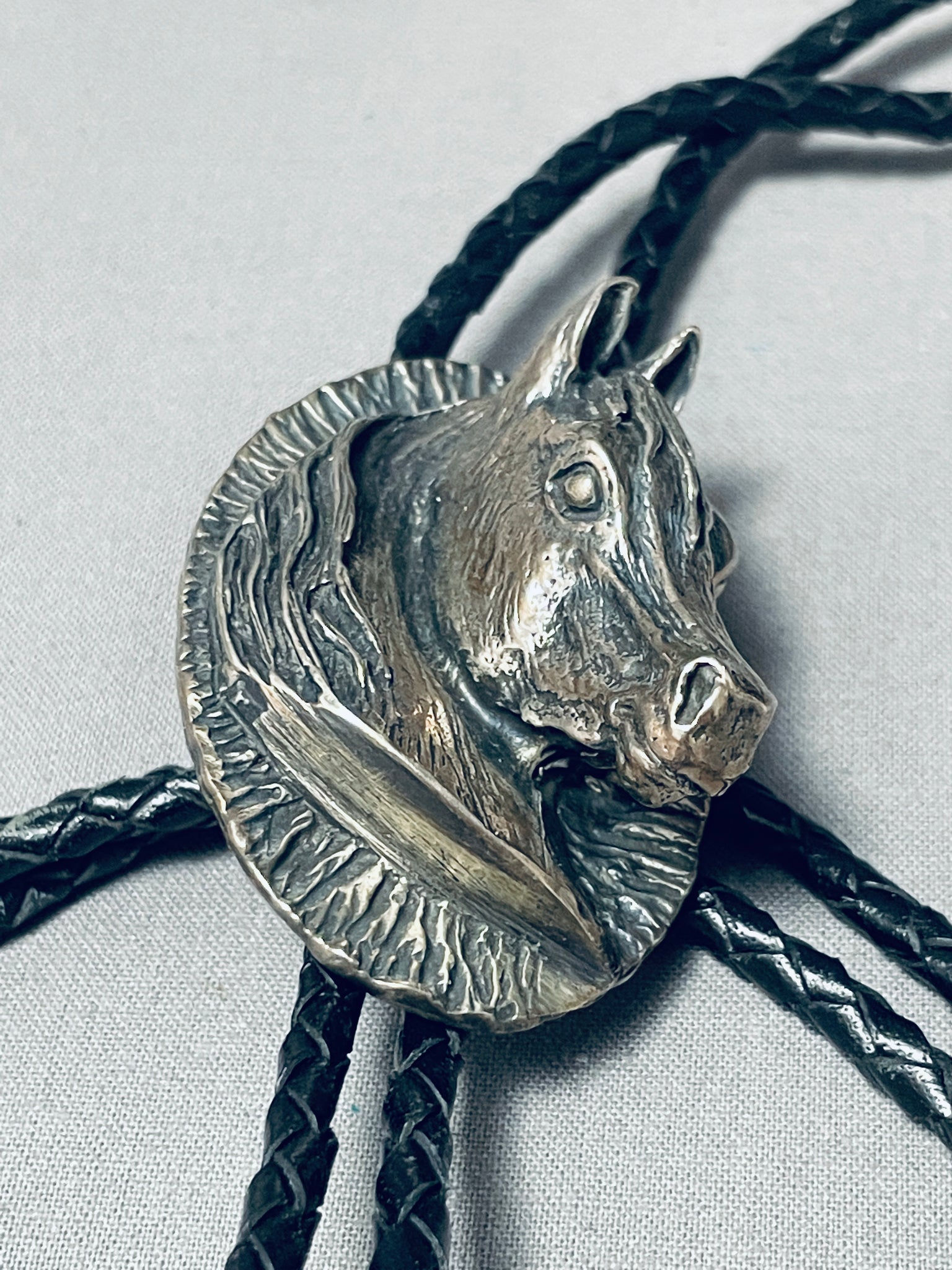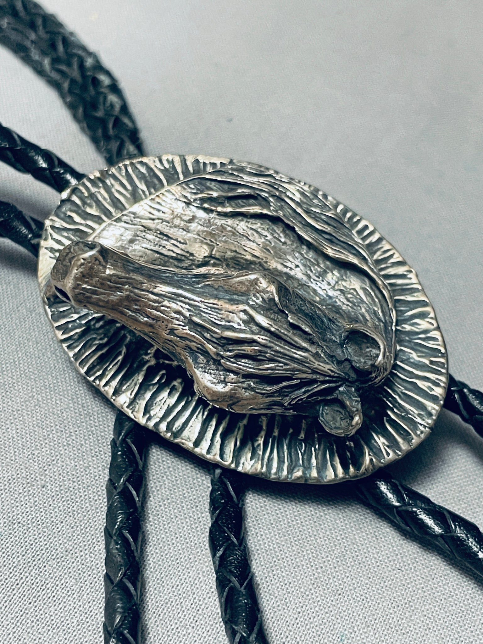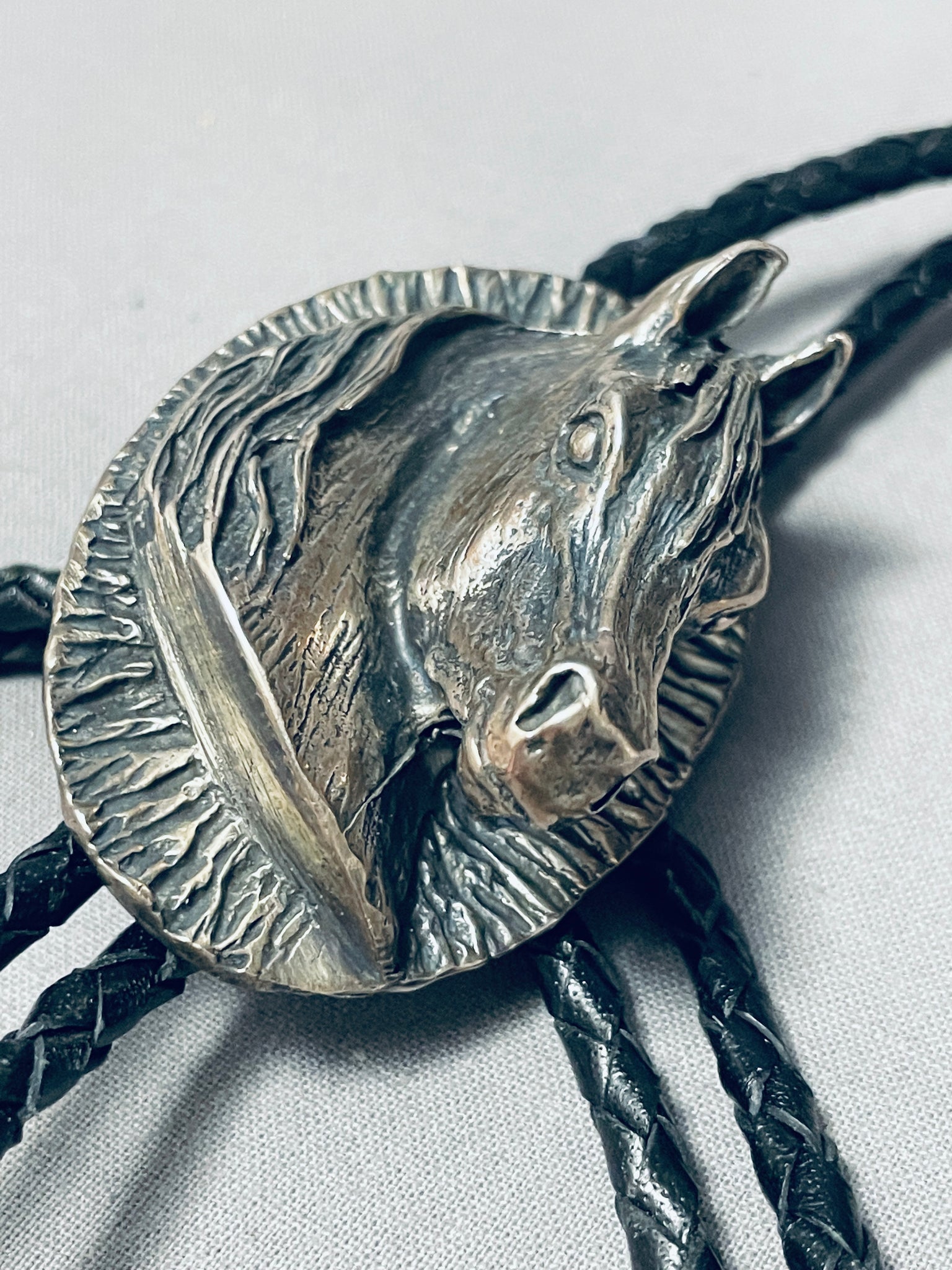 Native American 3d Horse Unique Vintage Southwestern Sterling Silver Bolo Tie