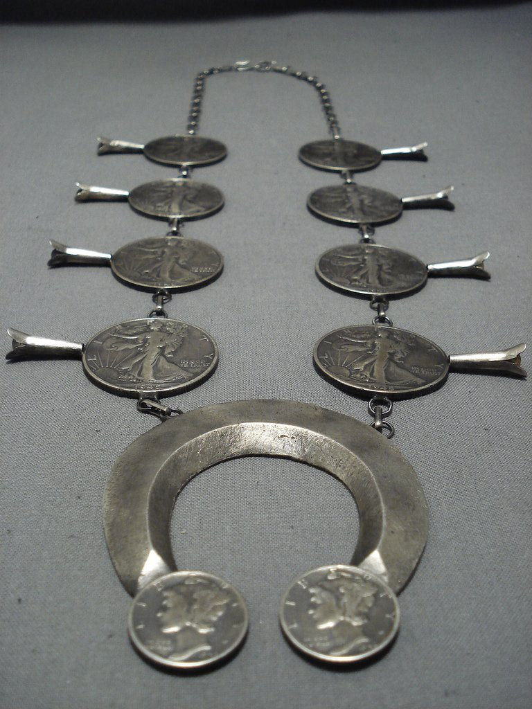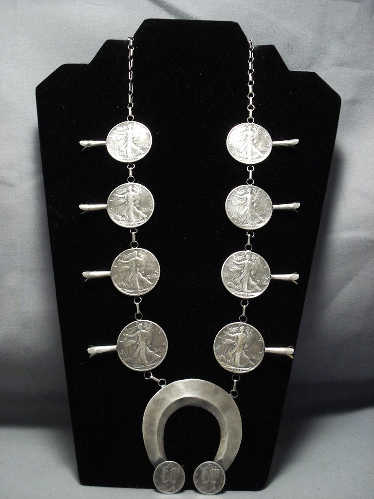 Native American Jewelry Amazing Horseshoe Sterling Silver Squash Blossom Necklace