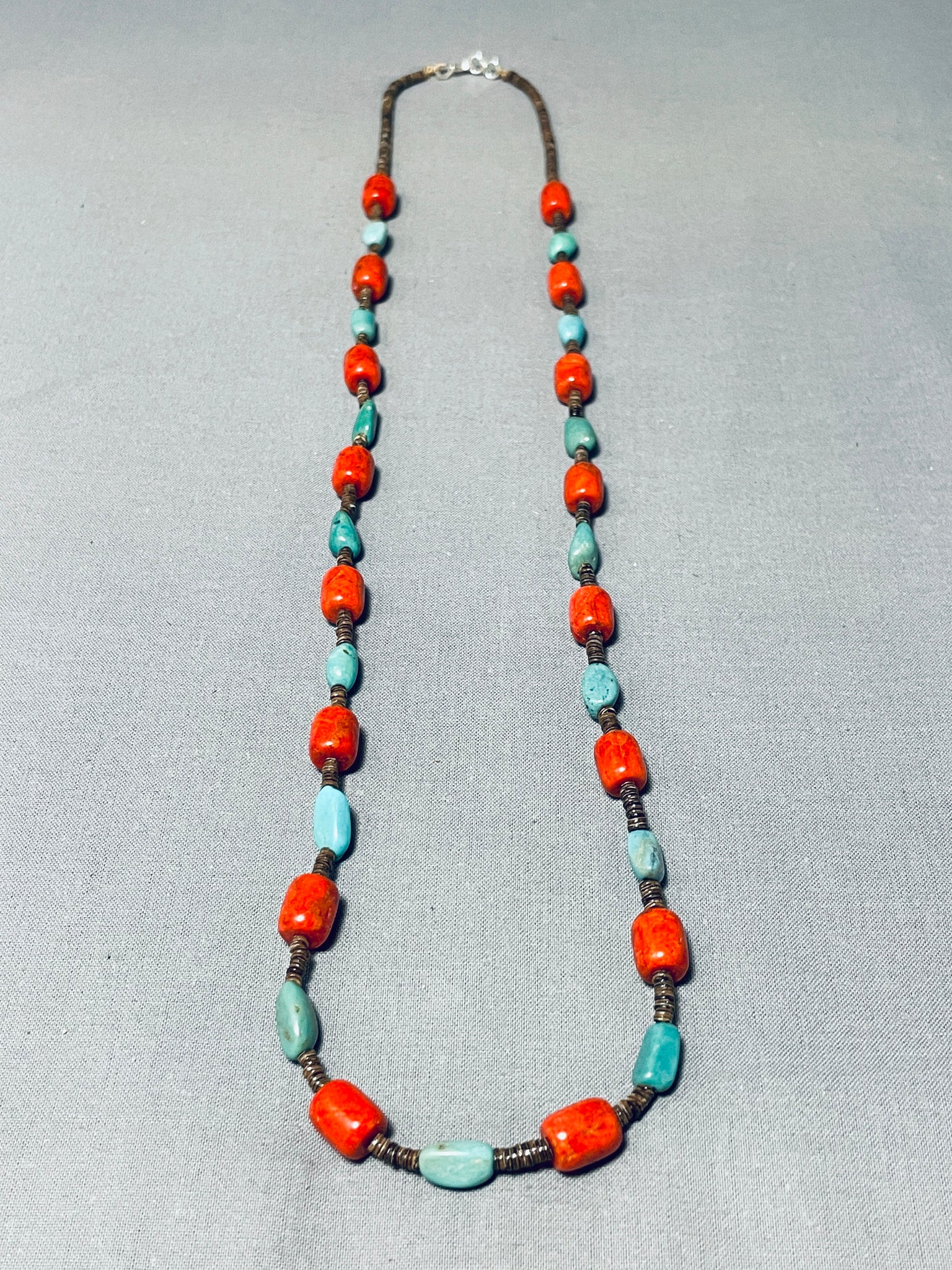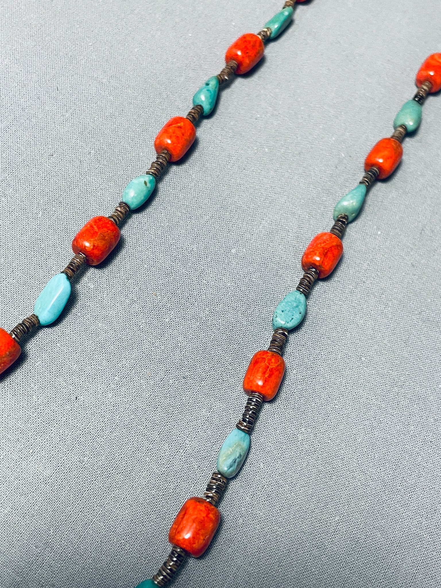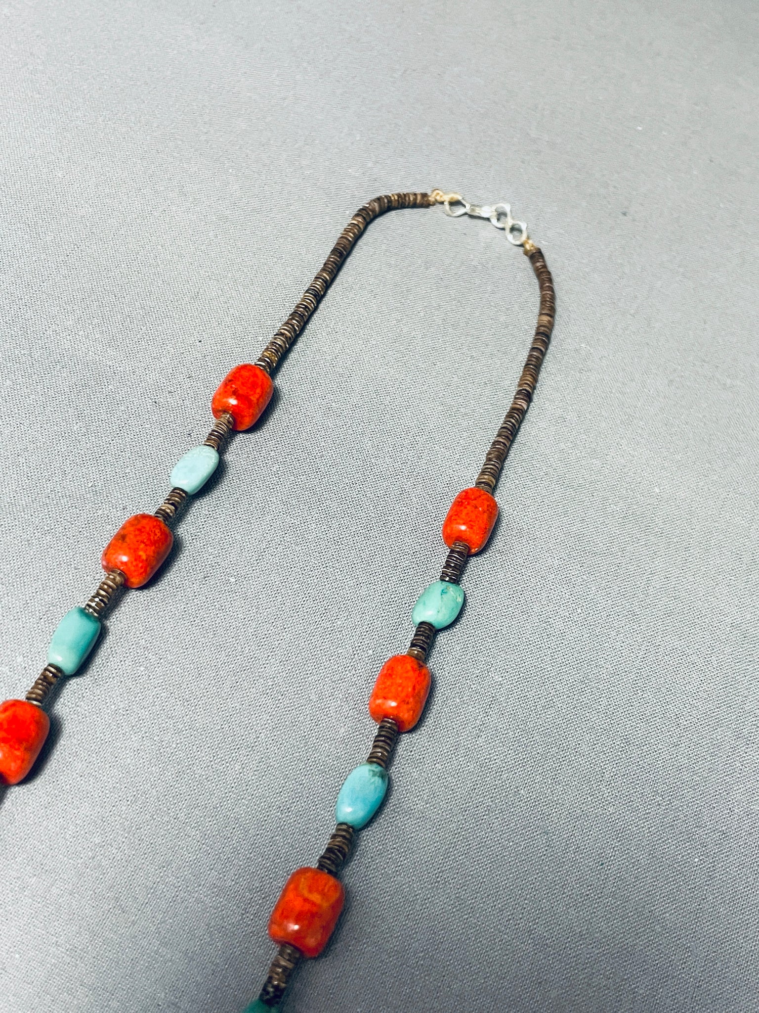 Native American Authentic Santo Domingo Turquoise Coral Heishi Necklace