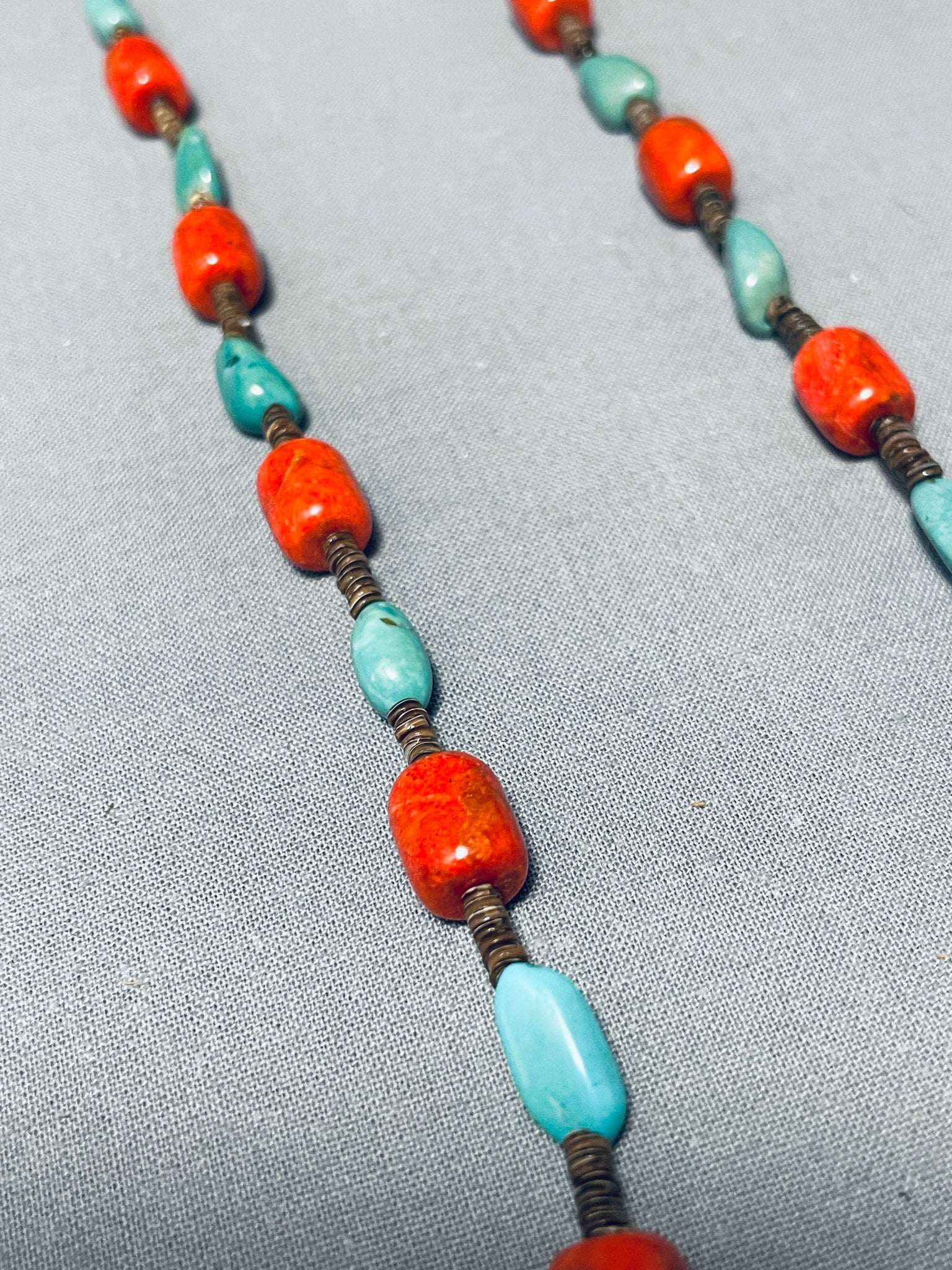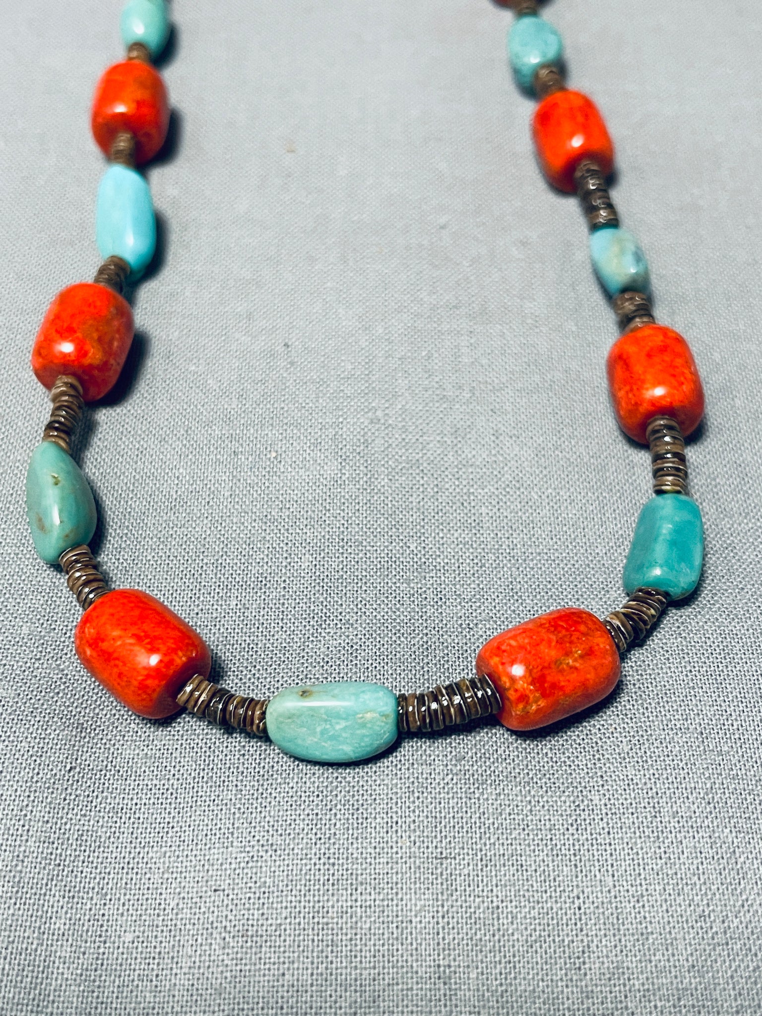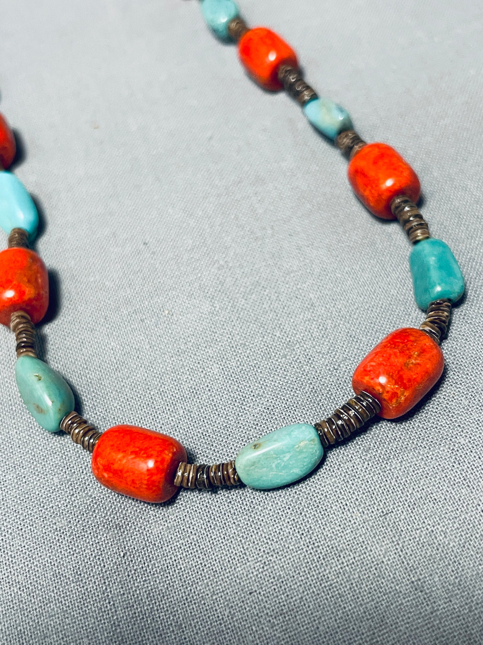 Native American Authentic Santo Domingo Turquoise Coral Heishi Necklace