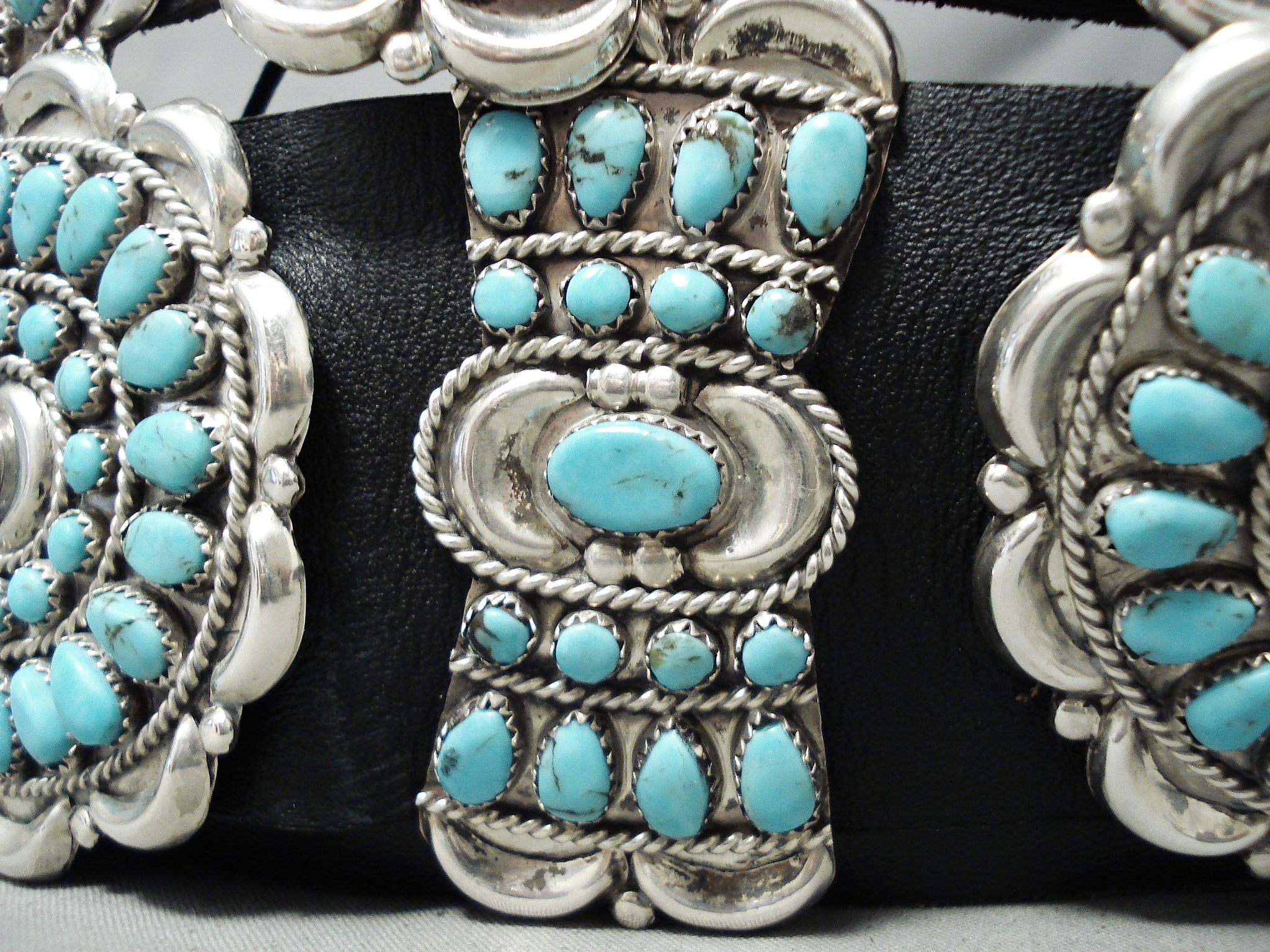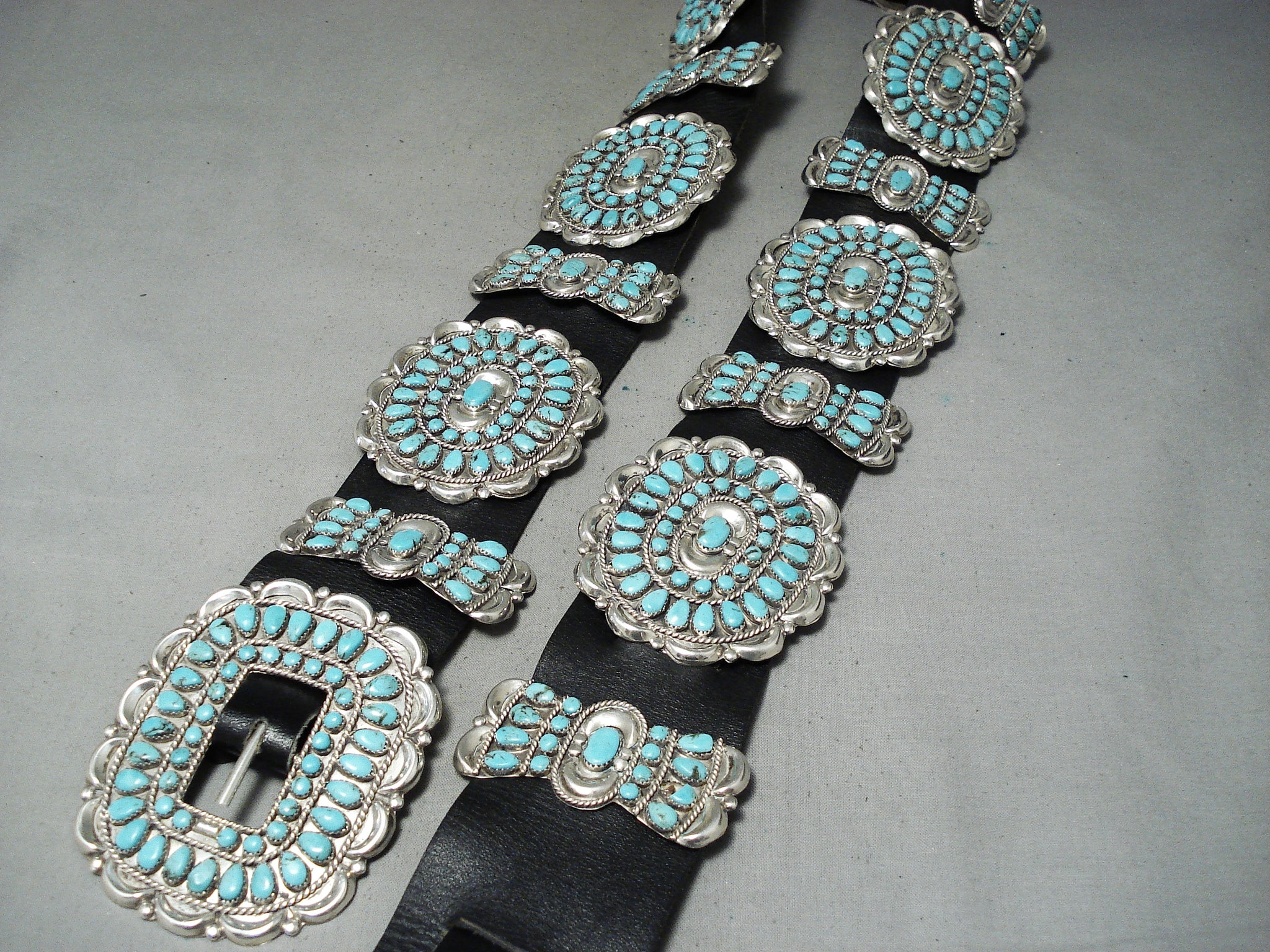 Native American Authentic Vintage Victor Moses Begay Turquoise Sterling Silver Concho Belt