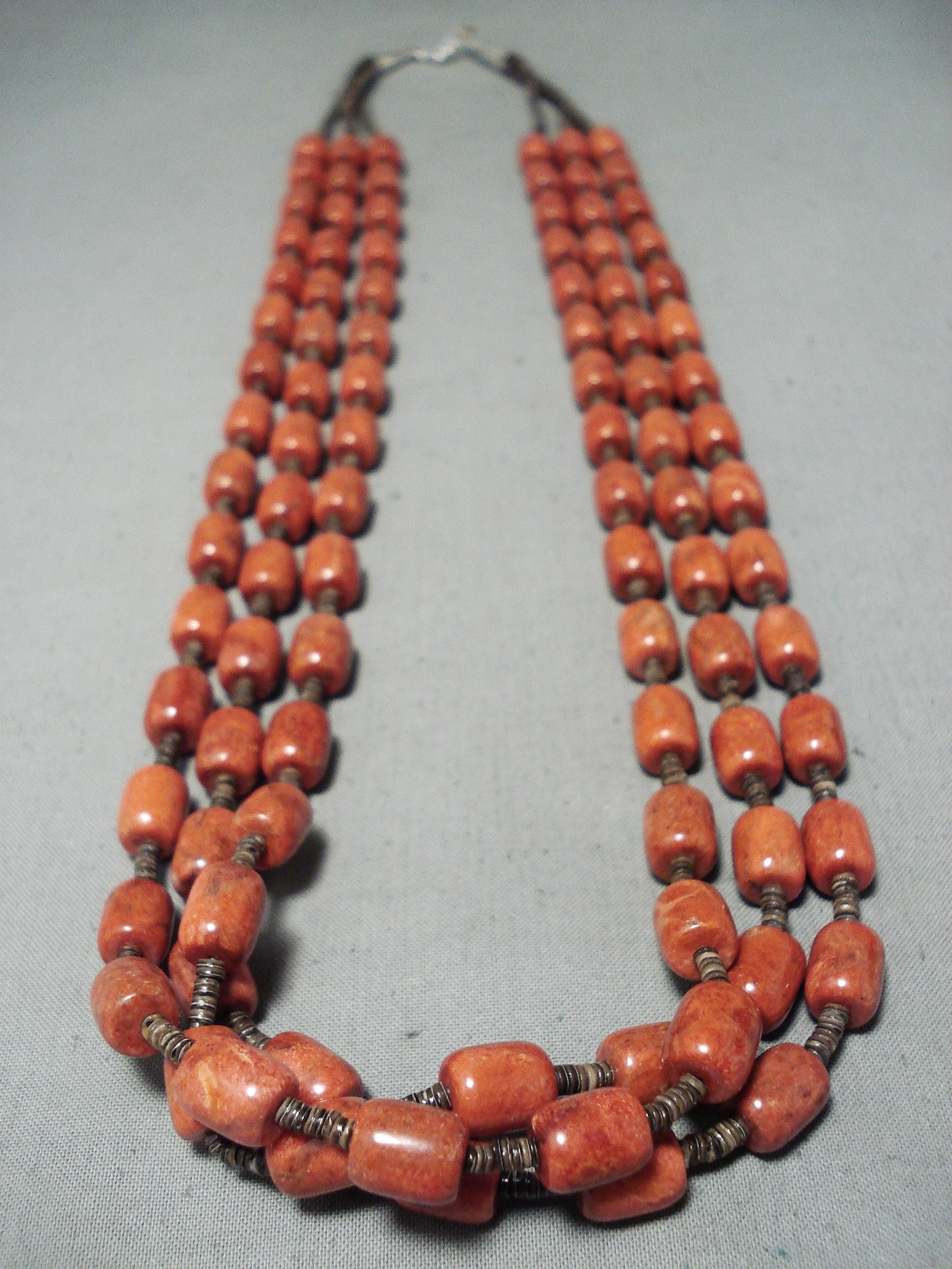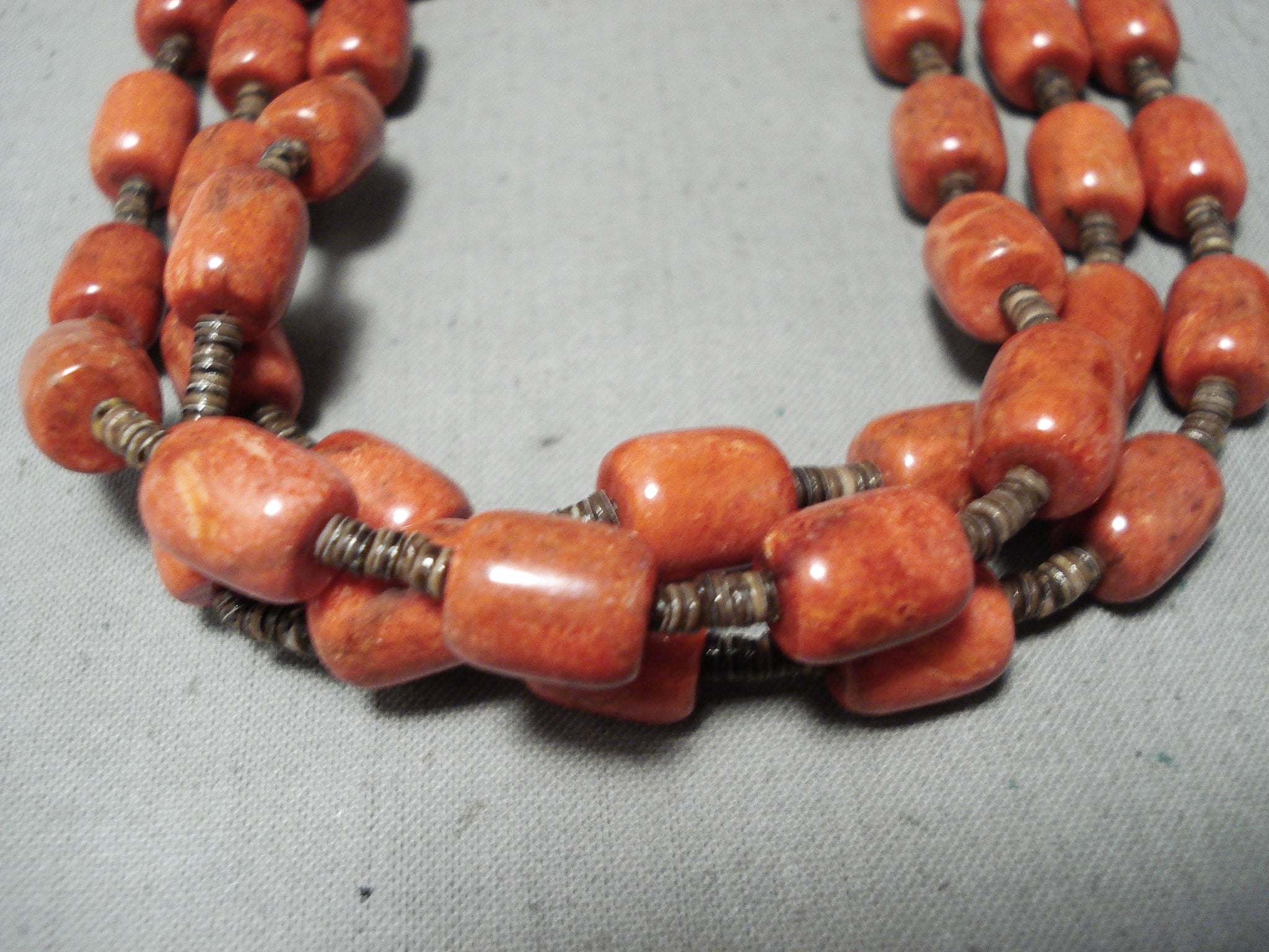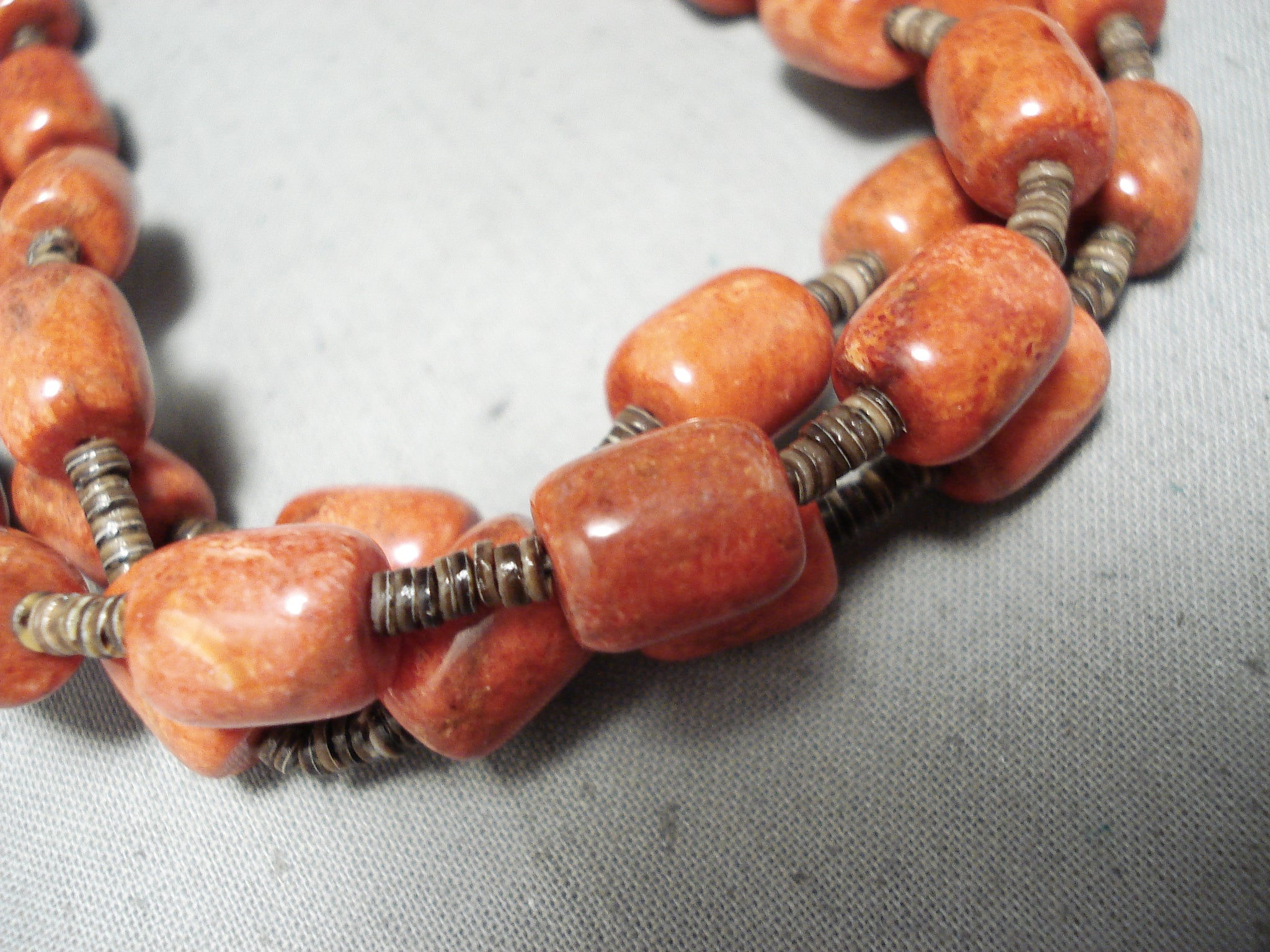 Native American Beautiful Santo Domingo Coral Heishi Sterling Silver Necklace
