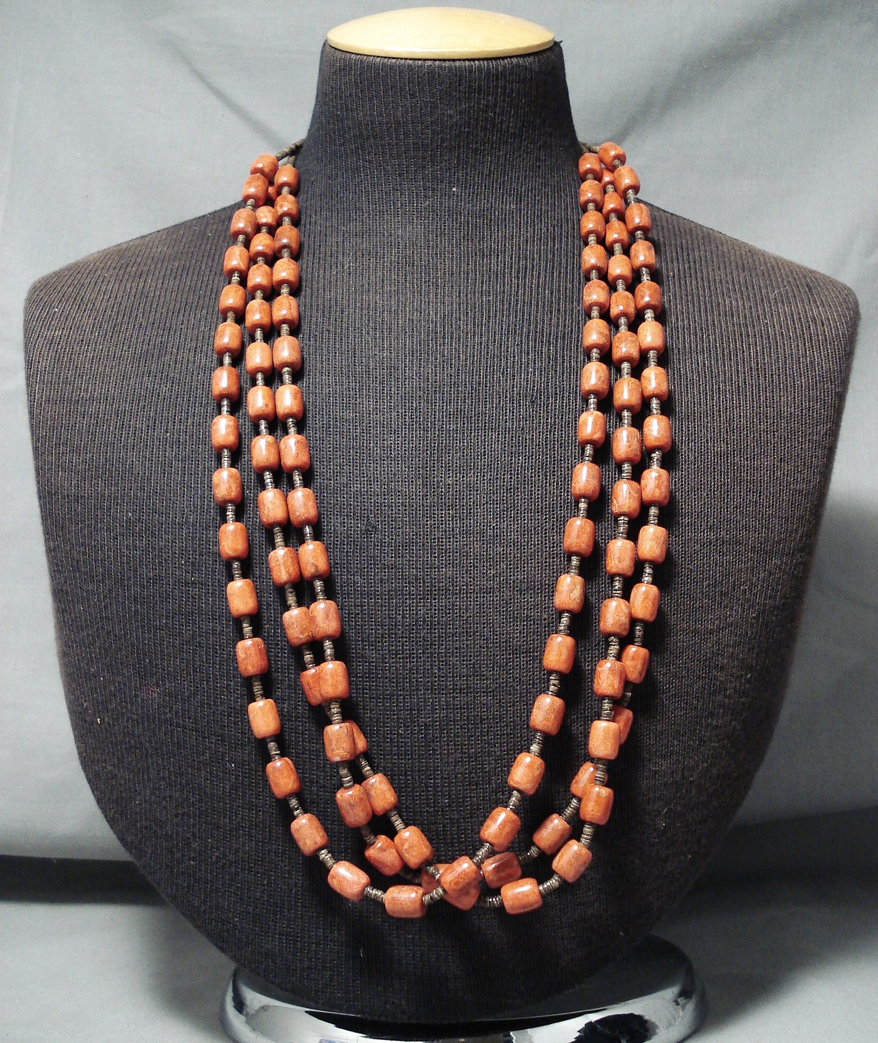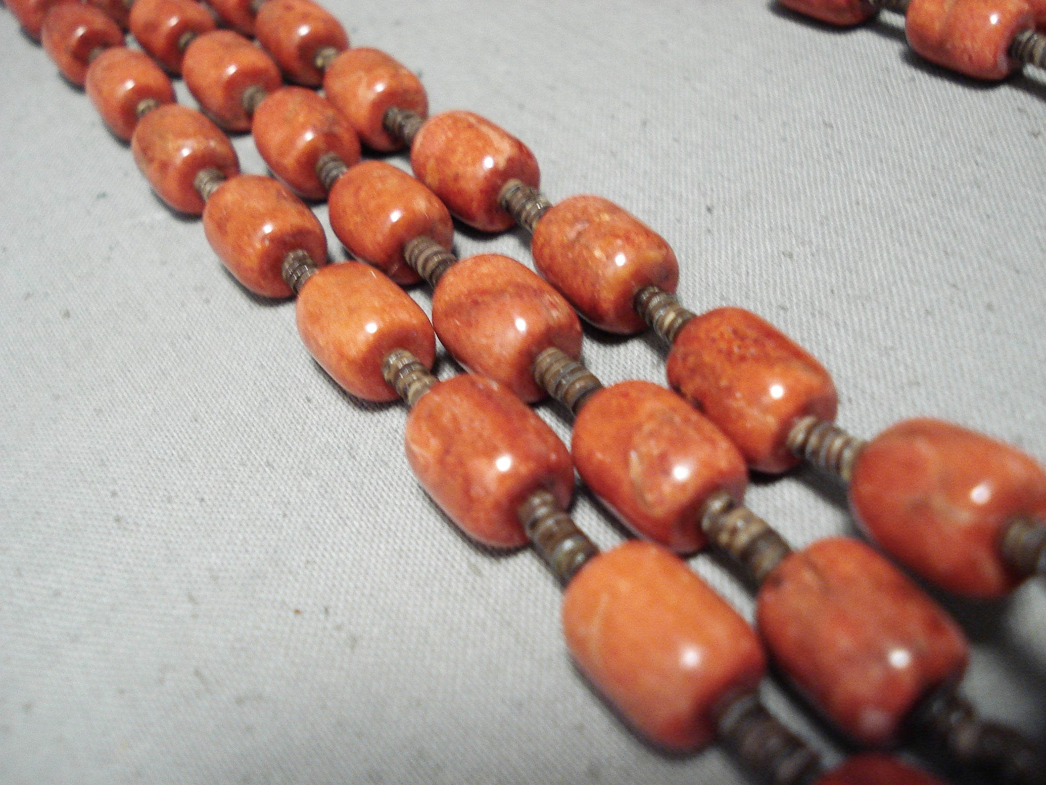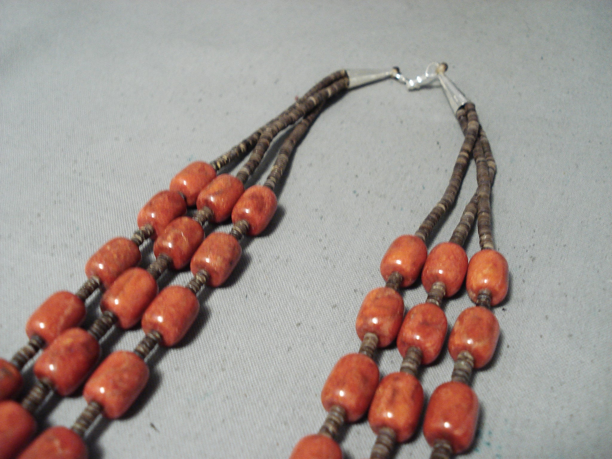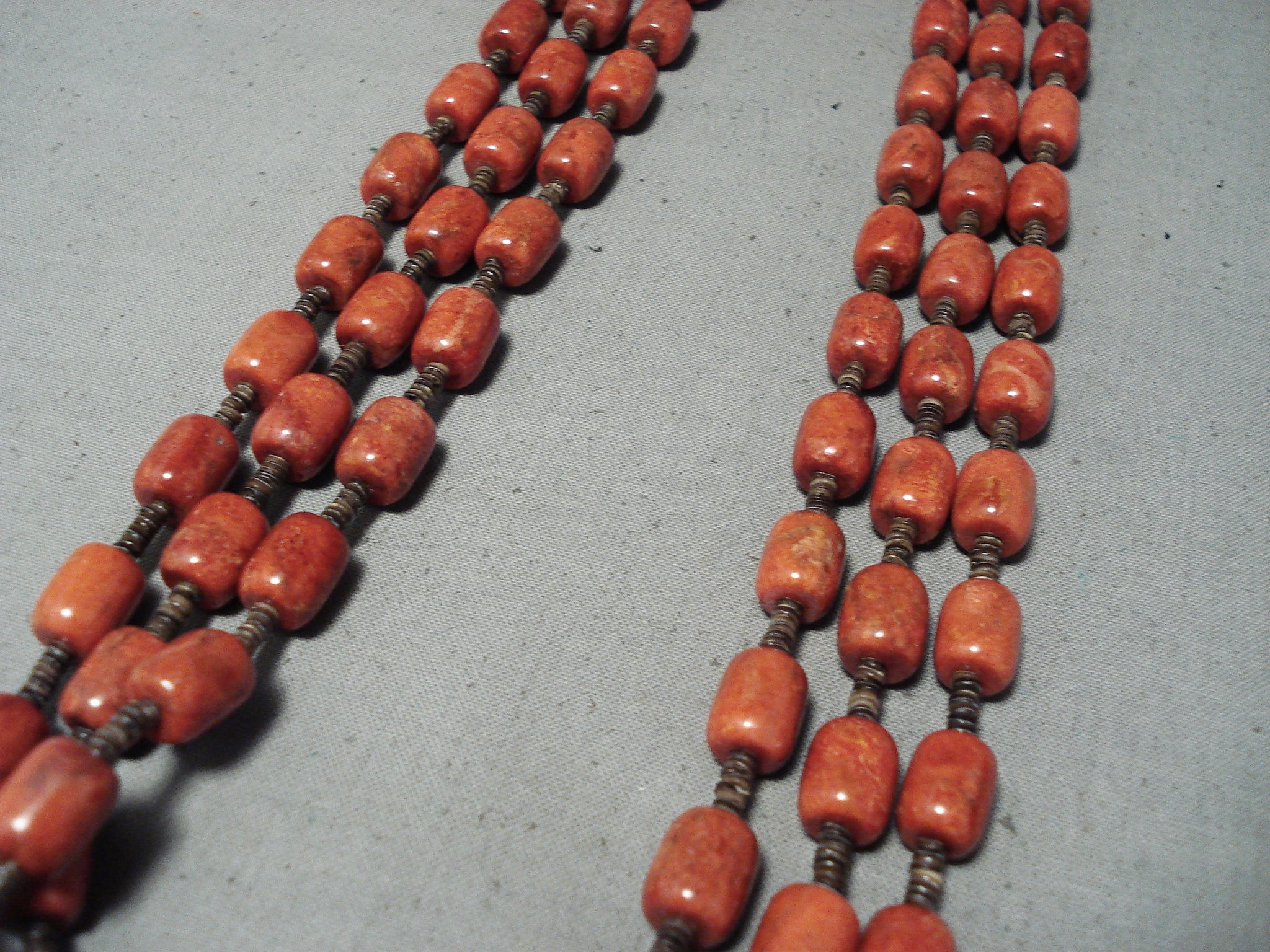 Native American Beautiful Santo Domingo Coral Heishi Sterling Silver Necklace