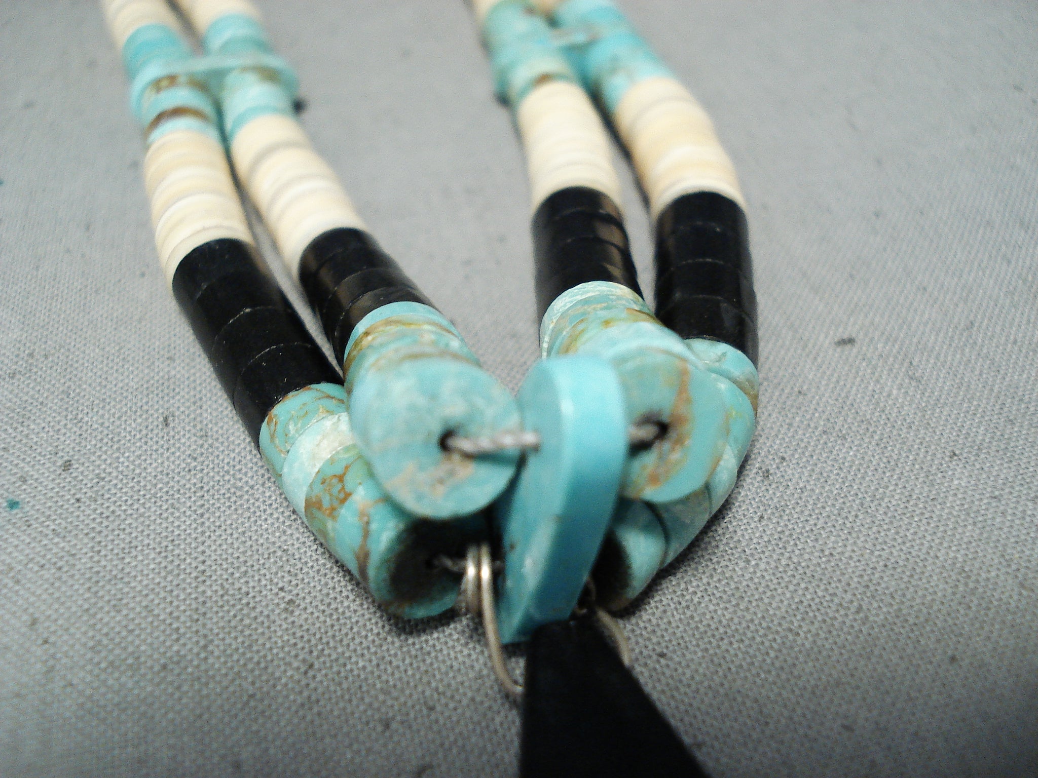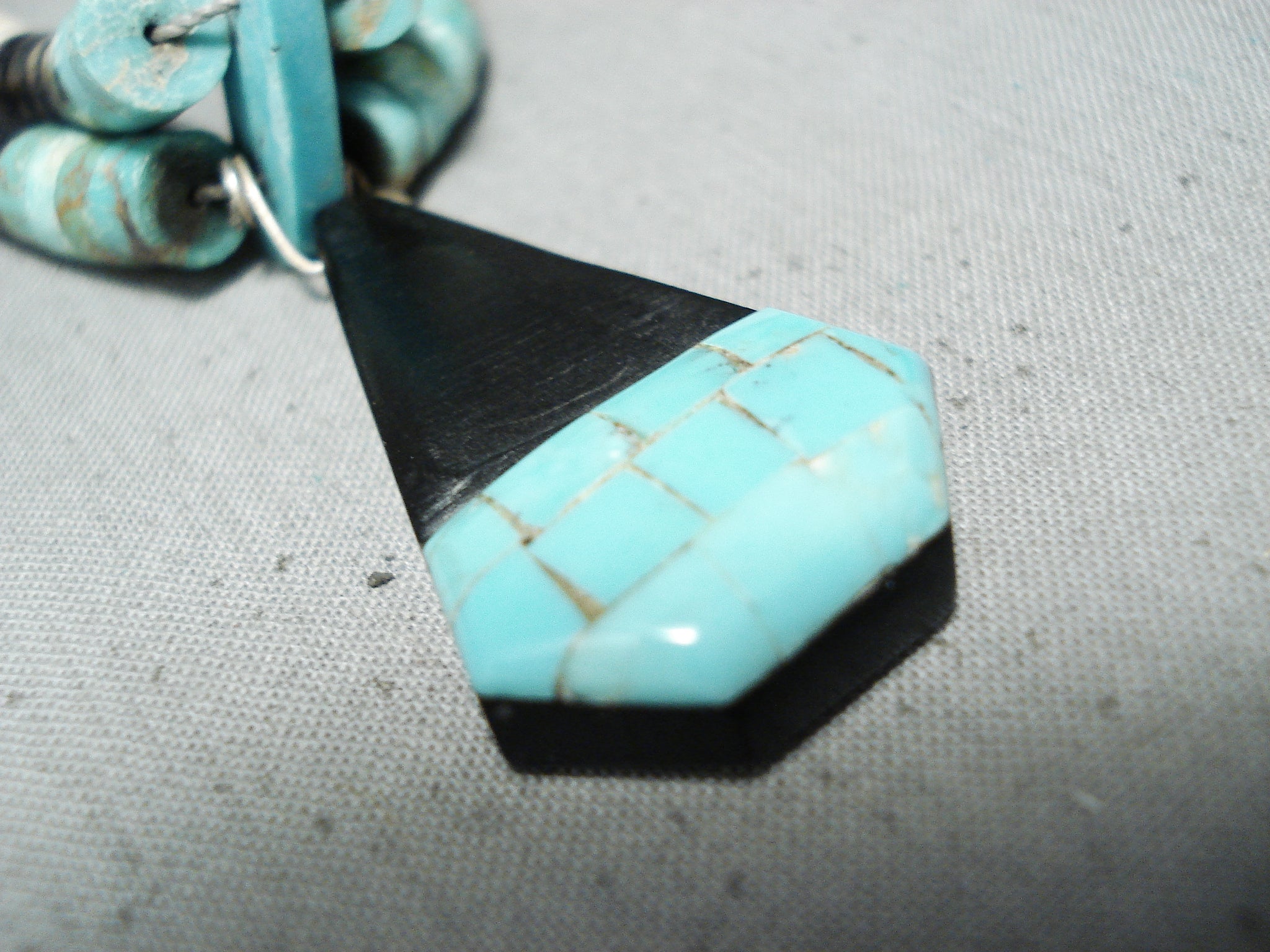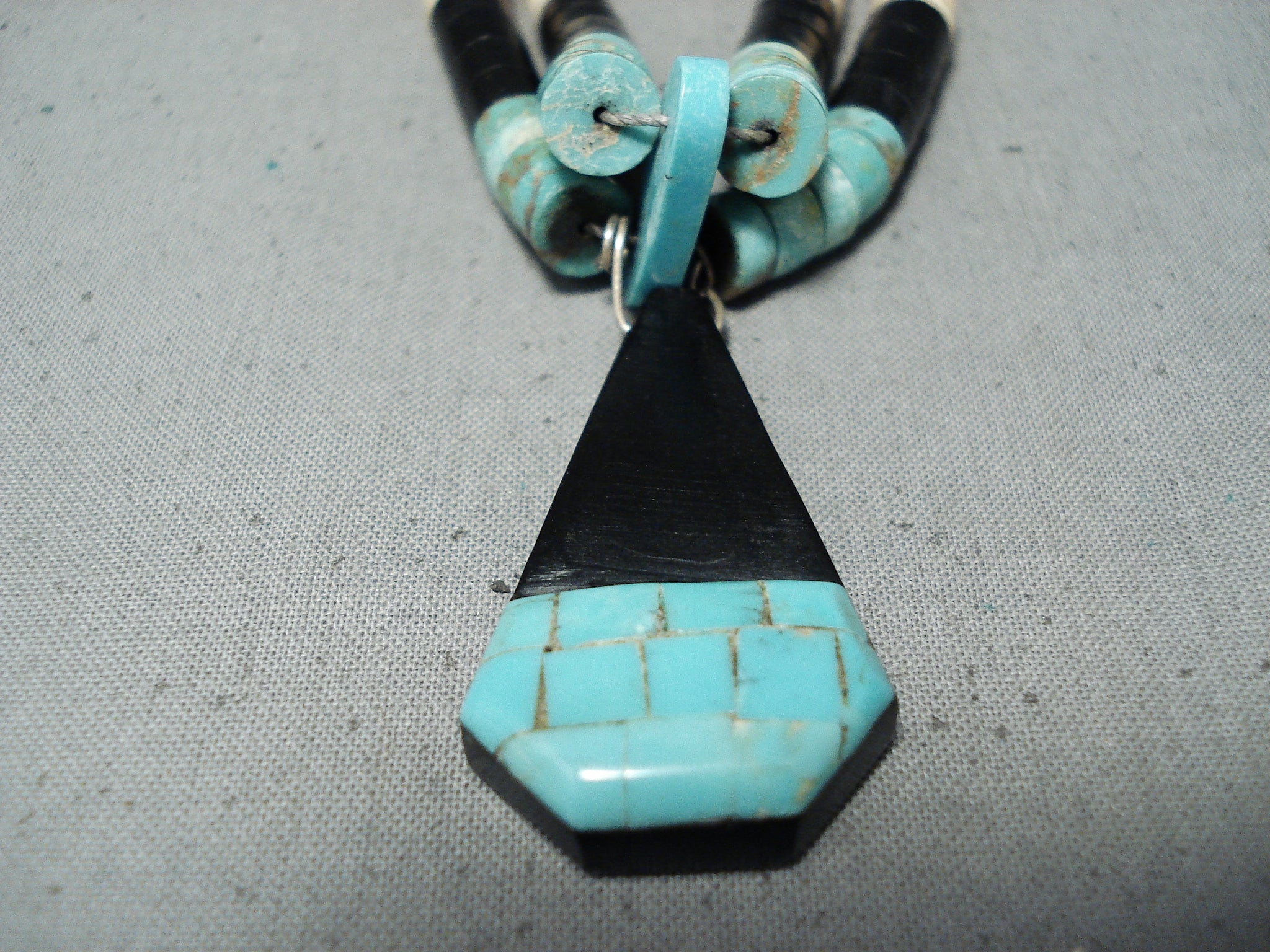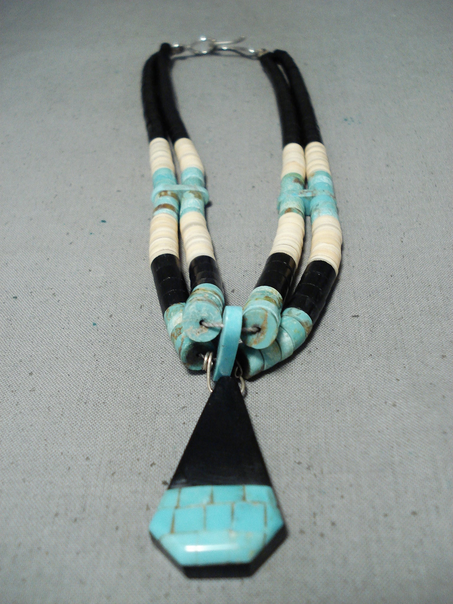 Native American Beautiful Vintage Santo Domingo Turquoise Inlay Jet Shell Necklace