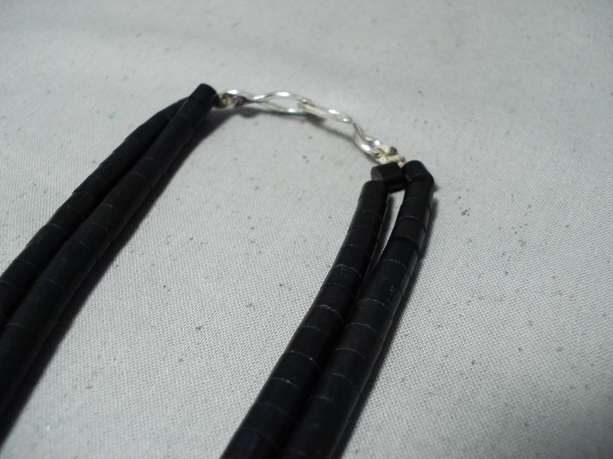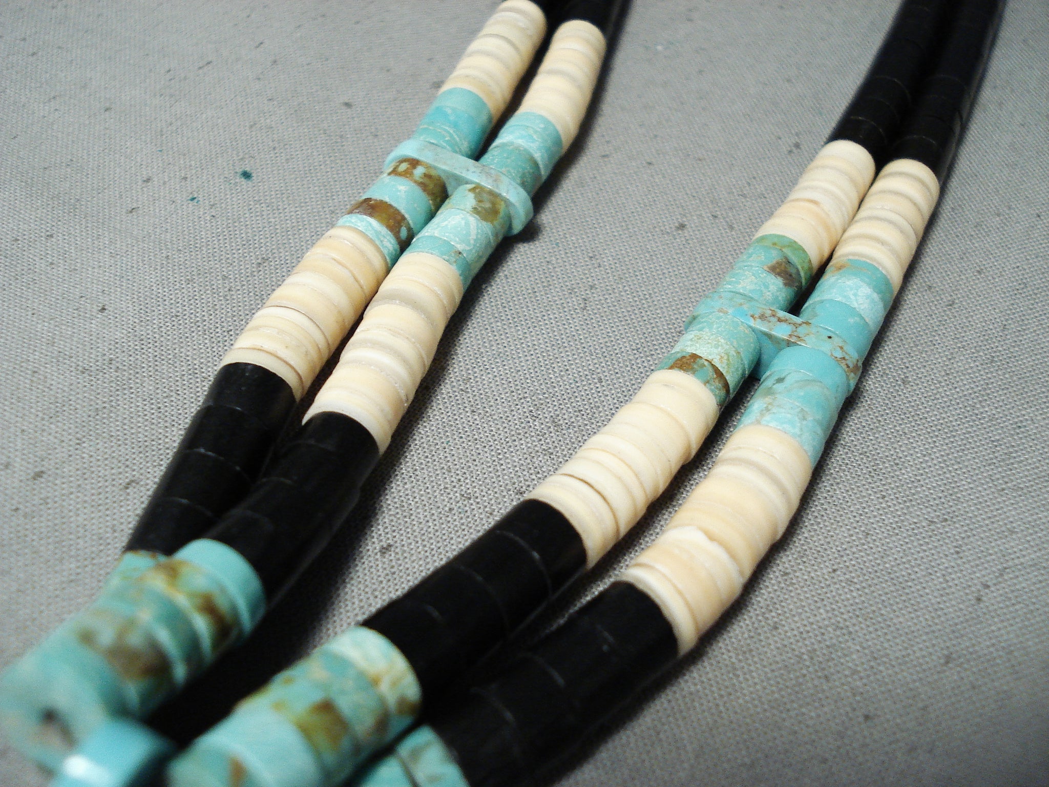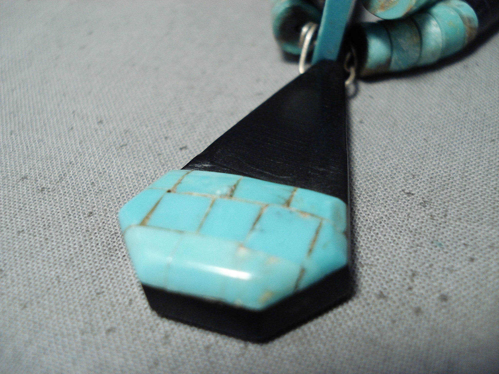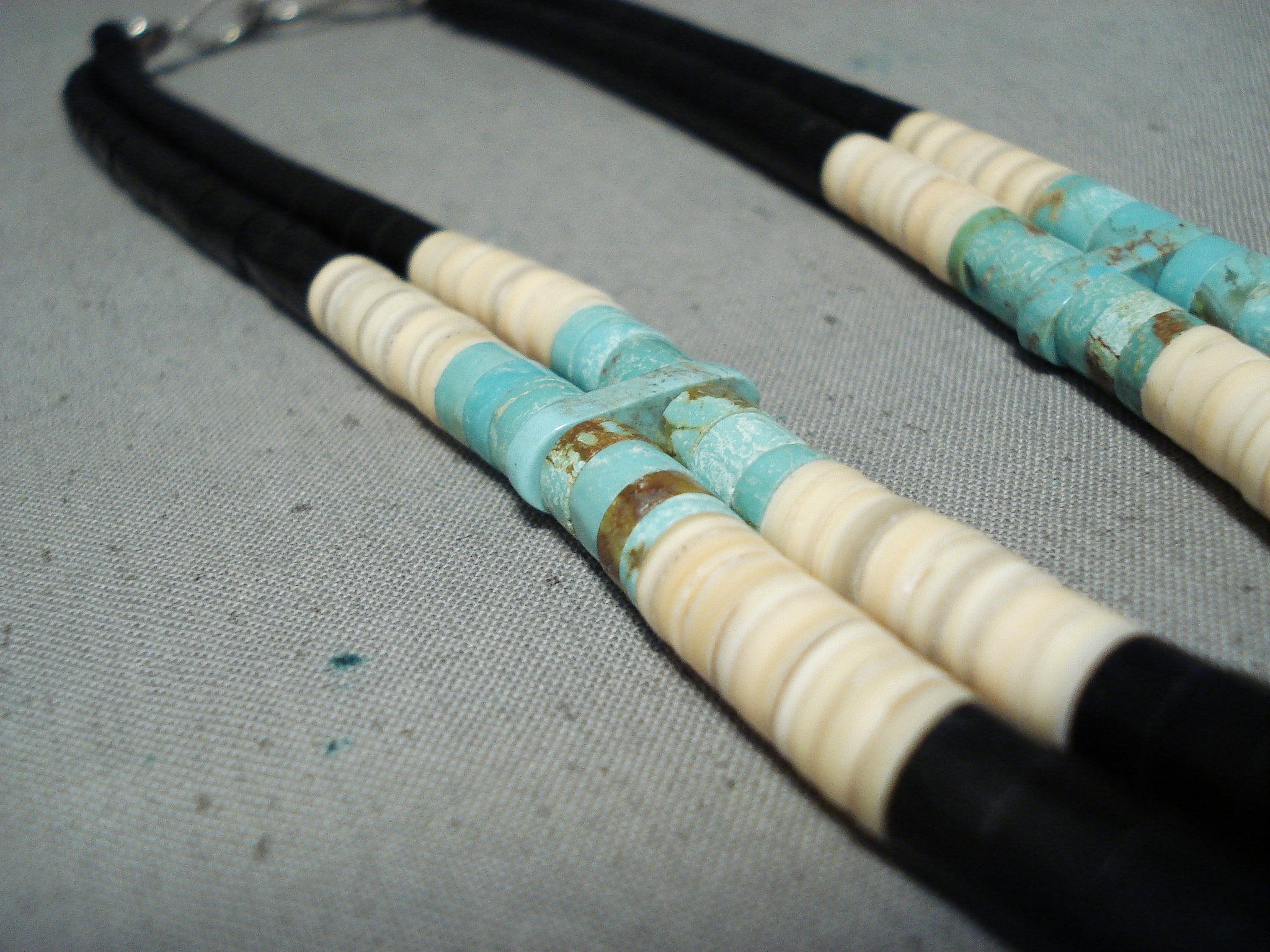 Native American Beautiful Vintage Santo Domingo Turquoise Inlay Jet Shell Necklace