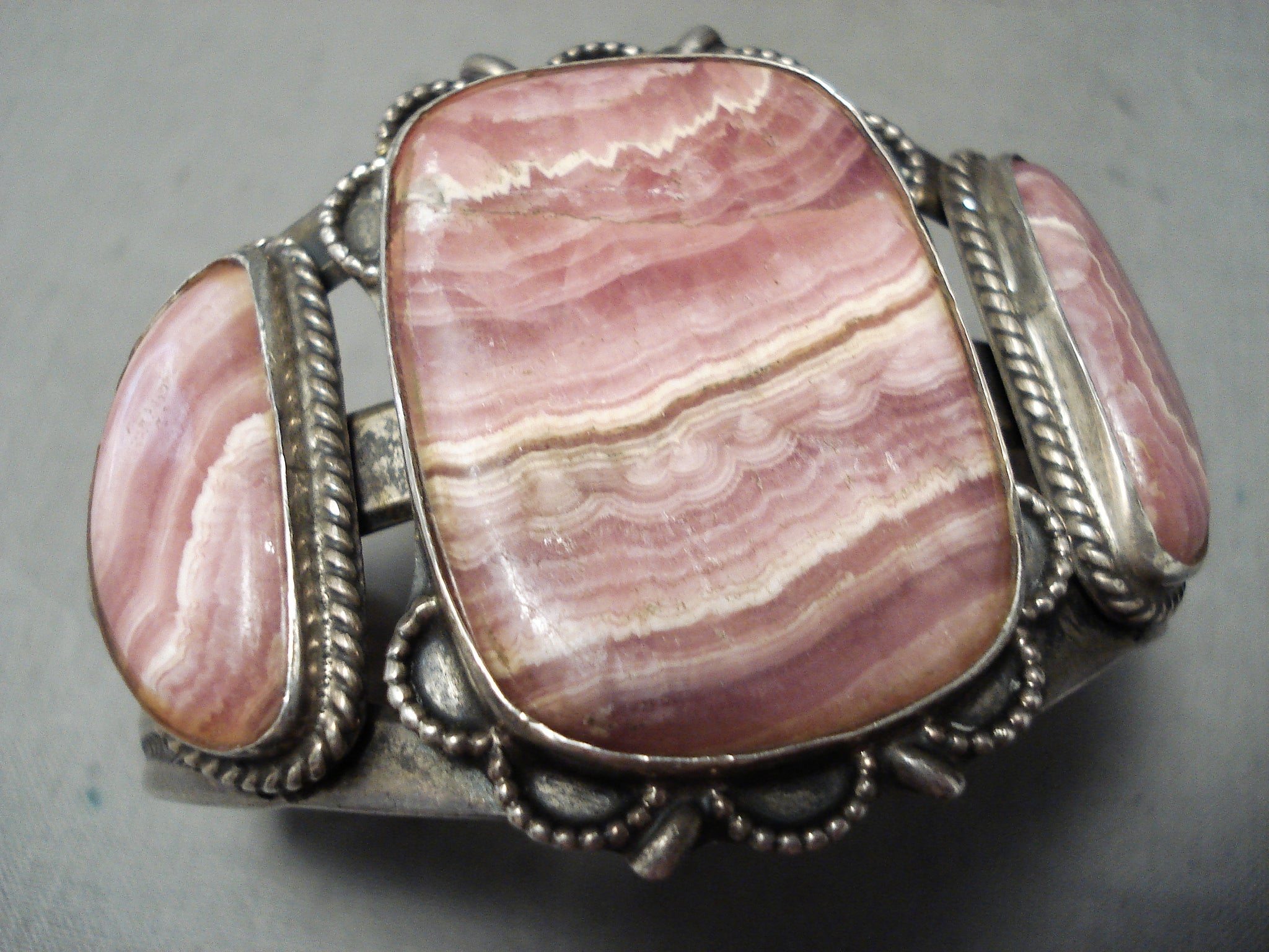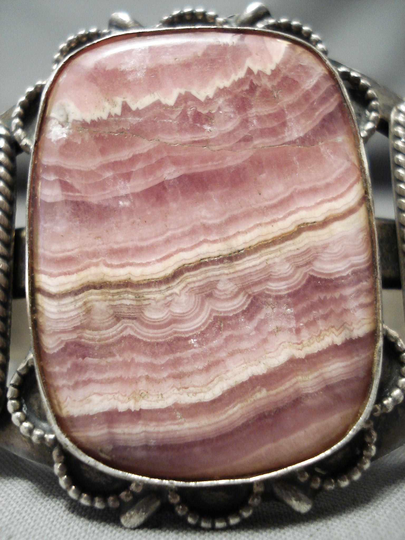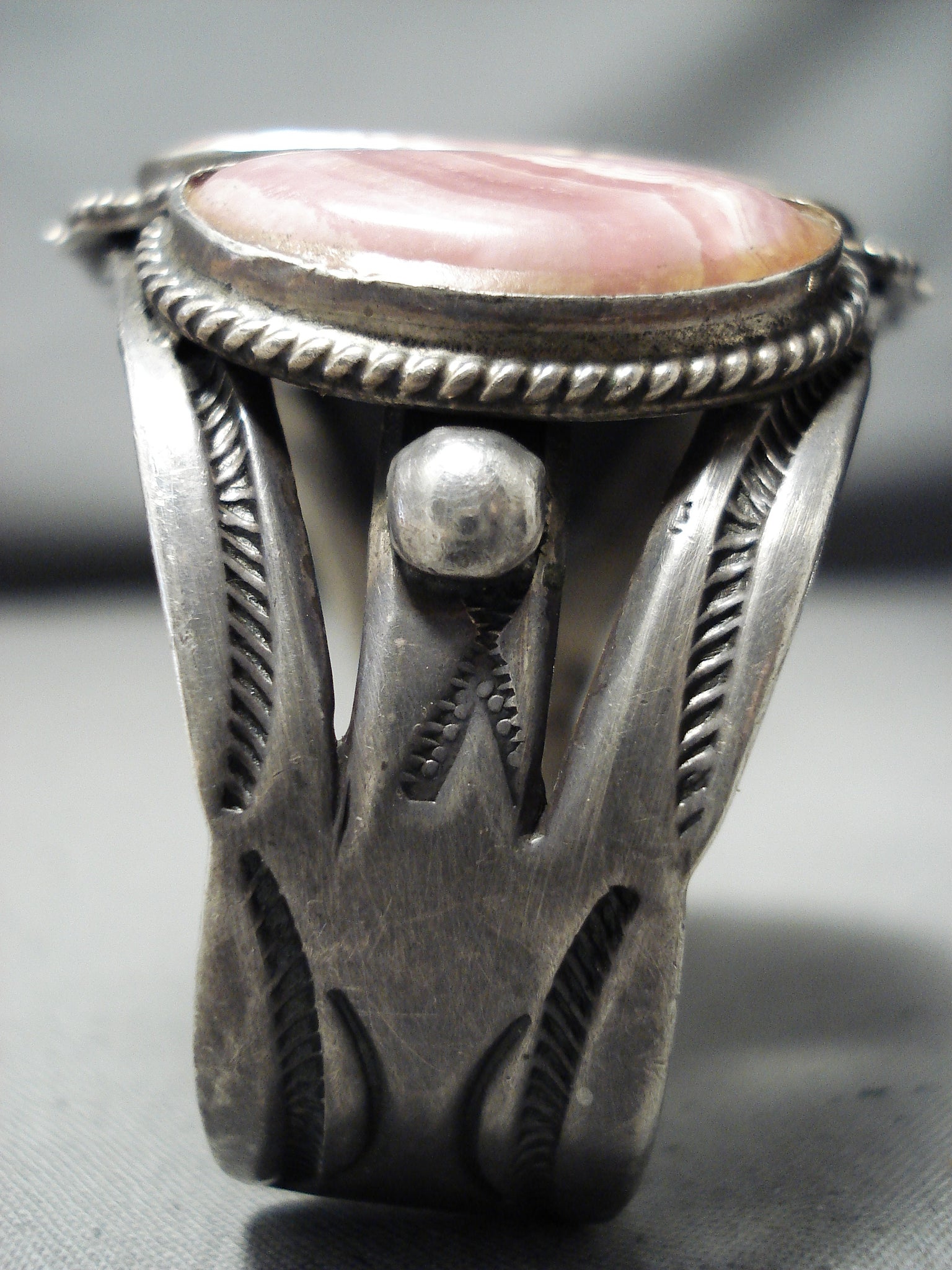 Native American Best Early Vintage Rhodochrosite Sterling Silver Stamped Bracelet Old