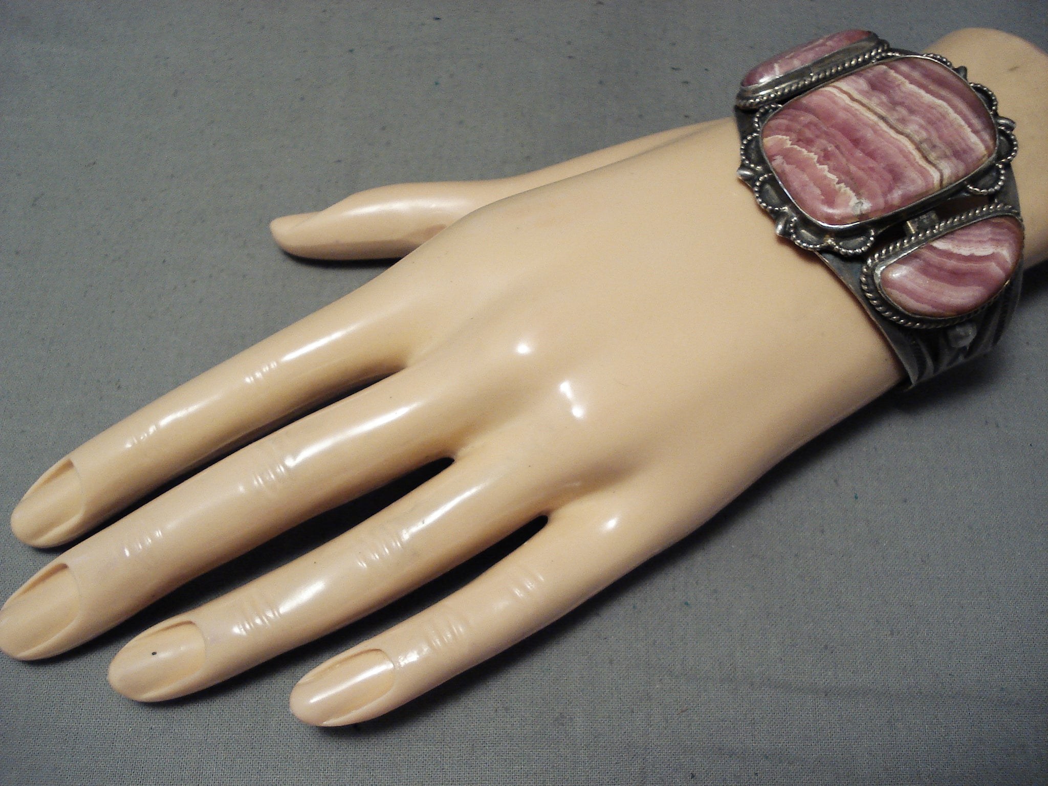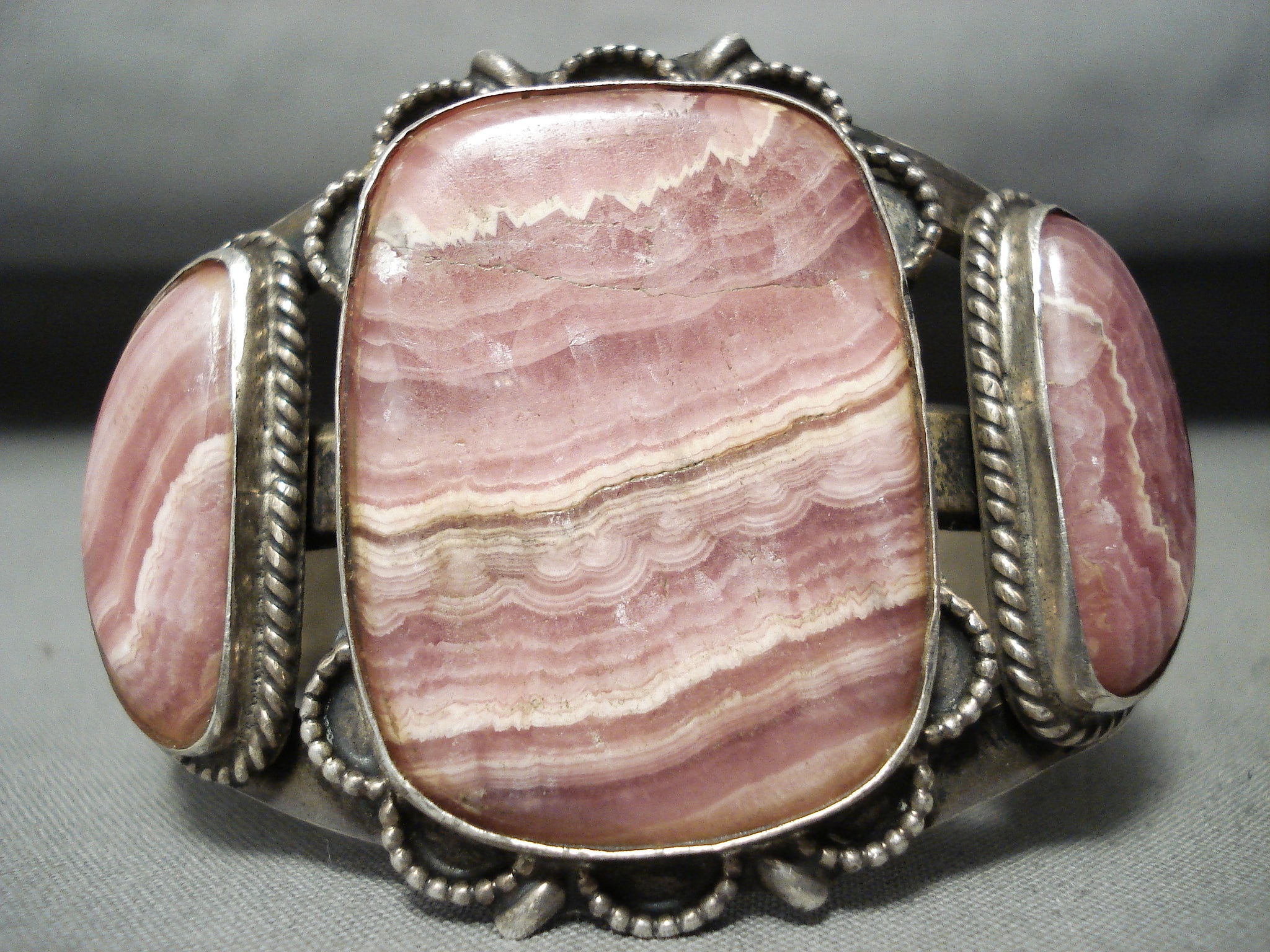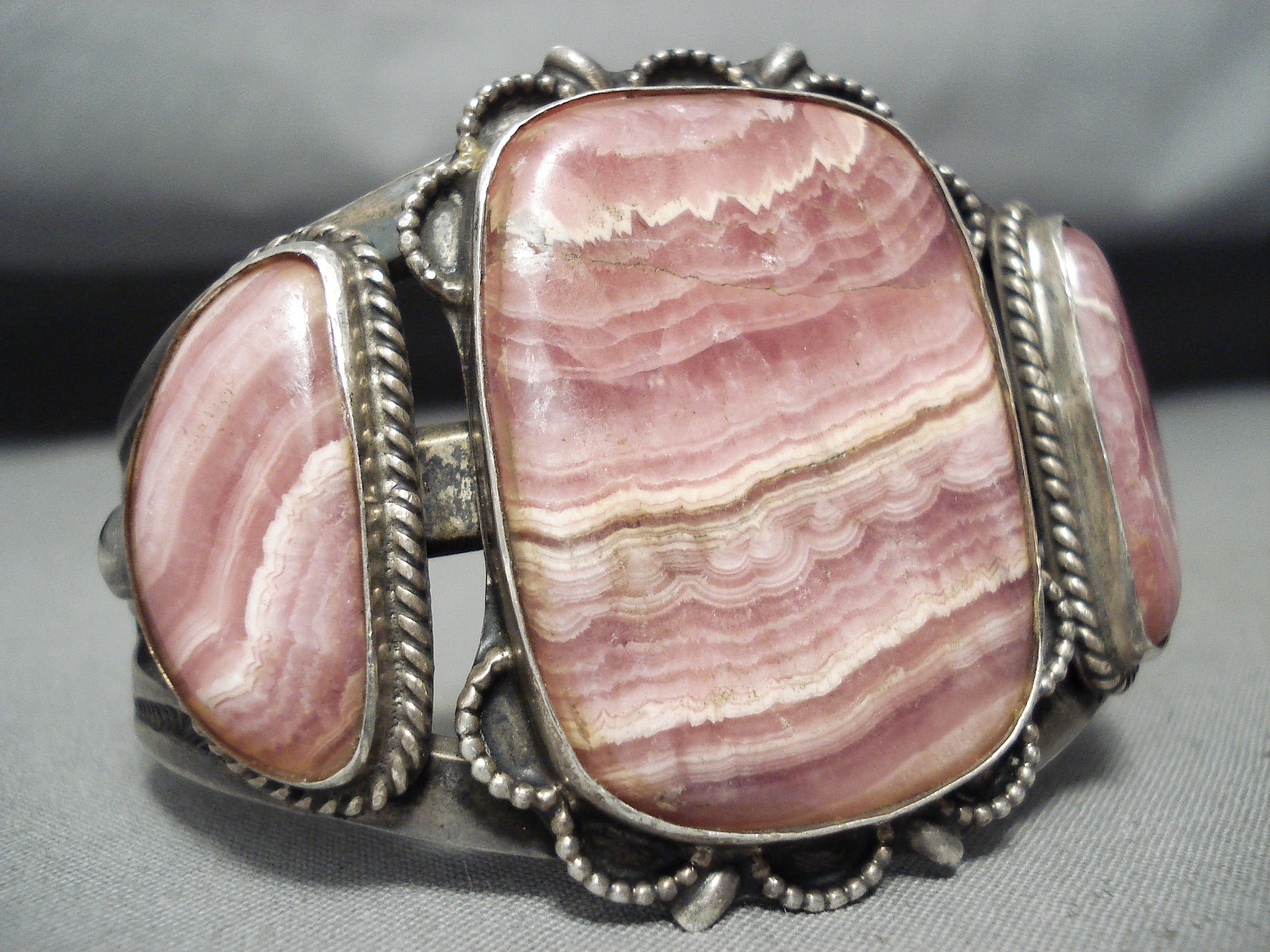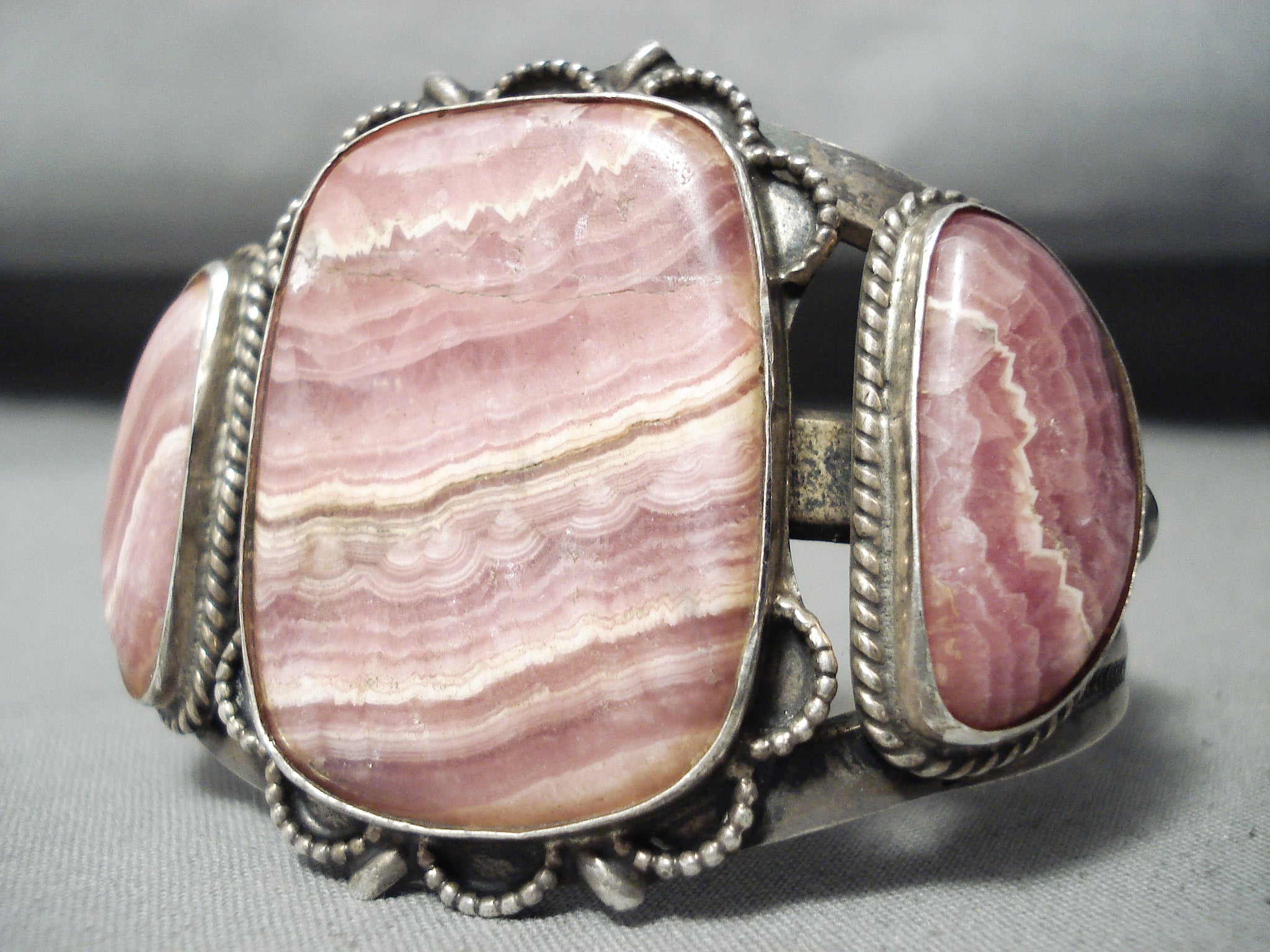 Native American Best Early Vintage Rhodochrosite Sterling Silver Stamped Bracelet Old