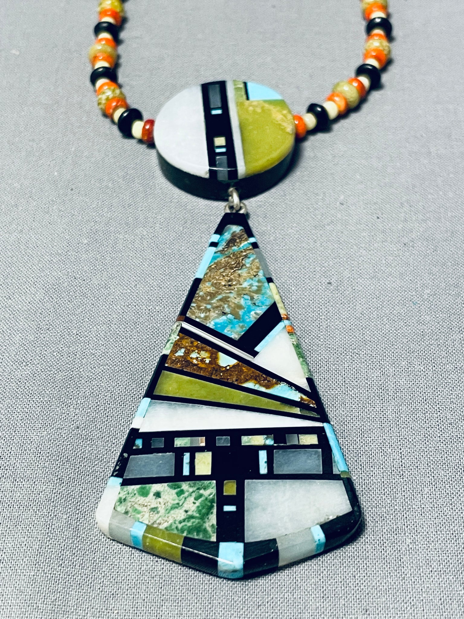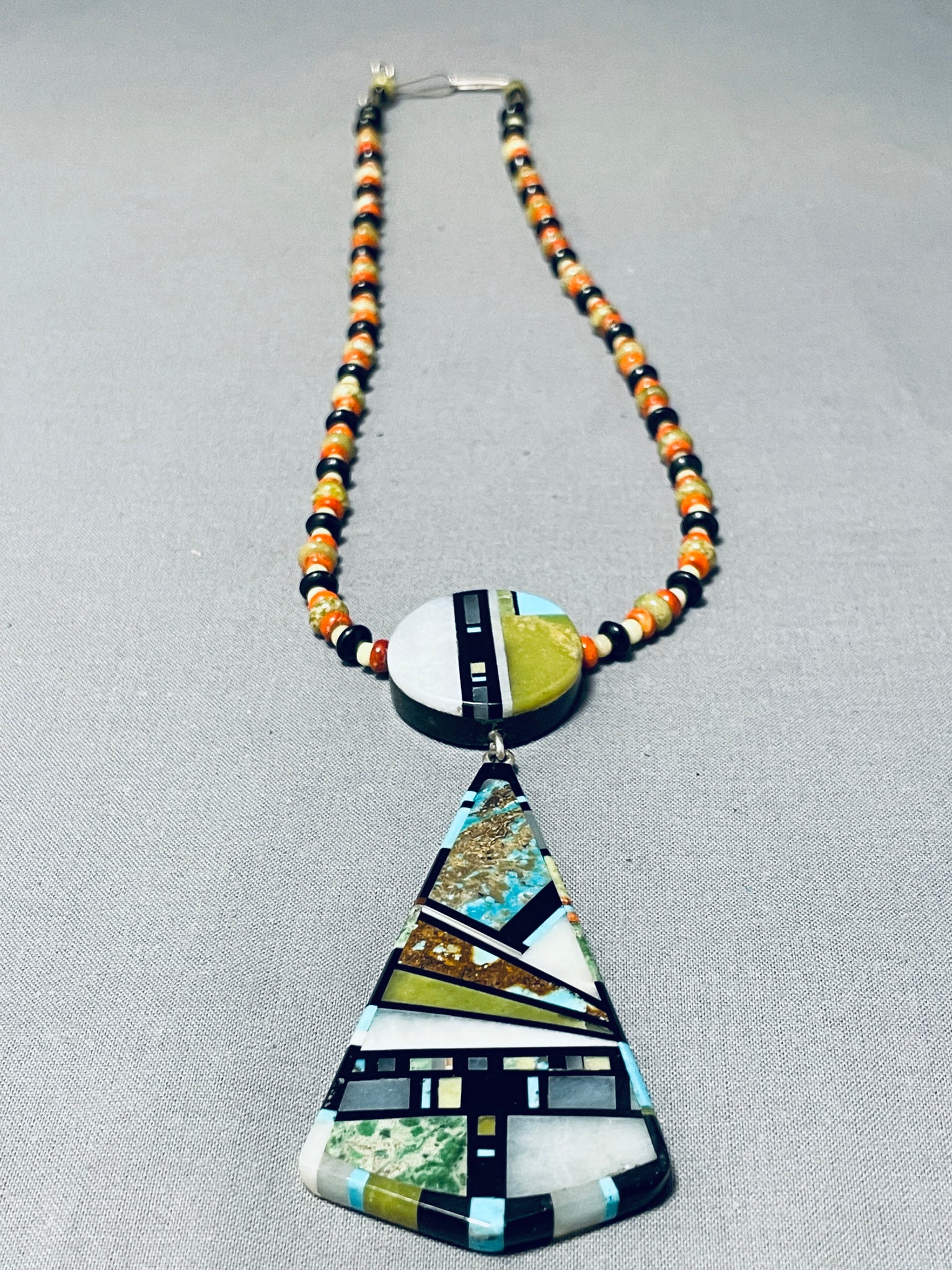Native American Chris Nieto Vintage Santo Domingo Turquoise Sterling Silver Necklace
