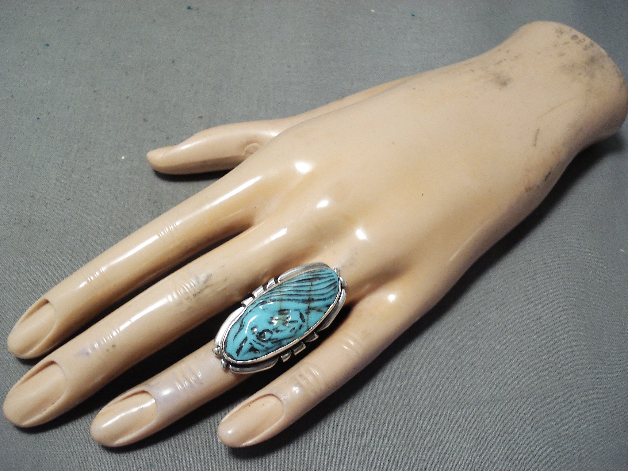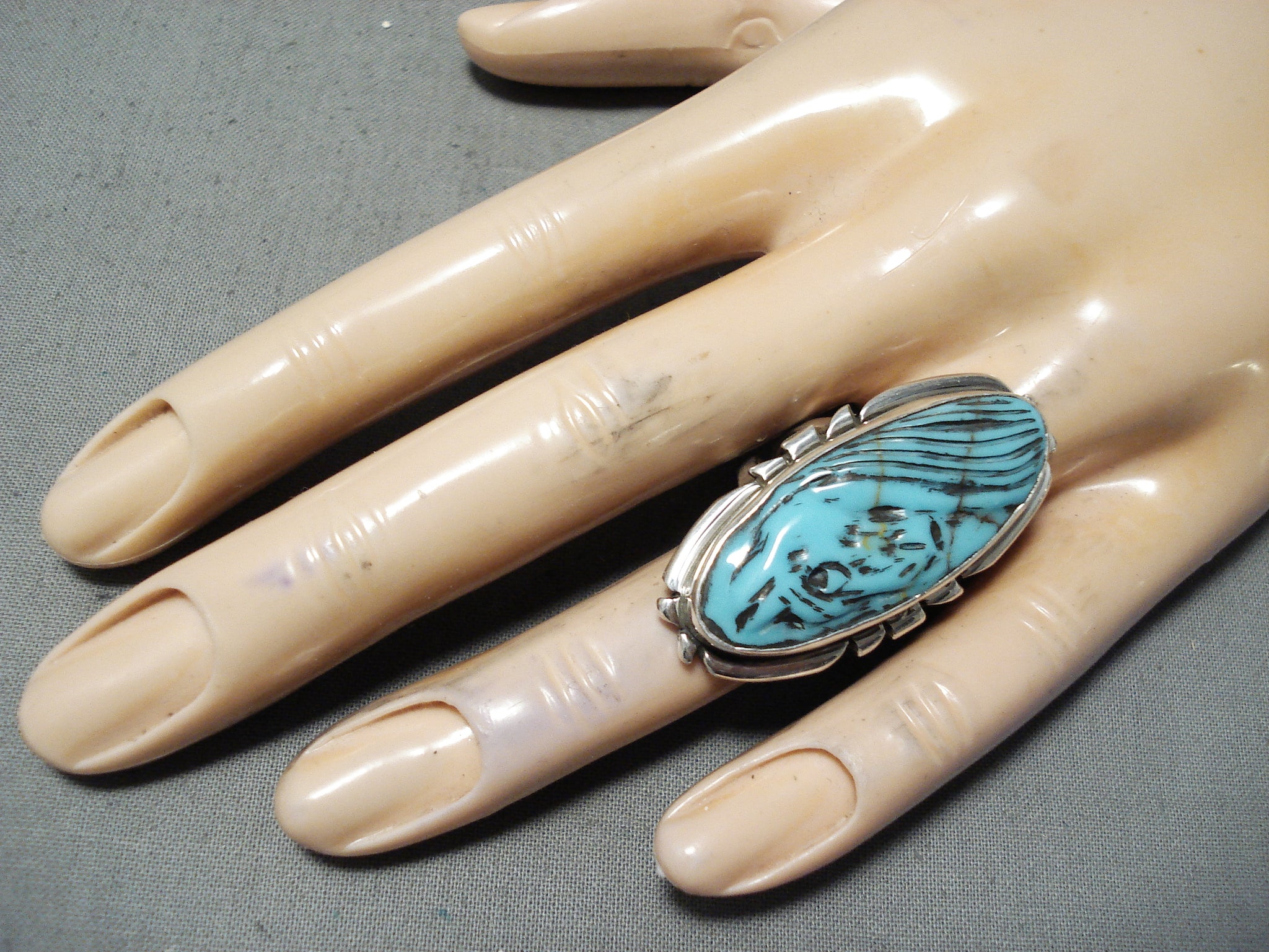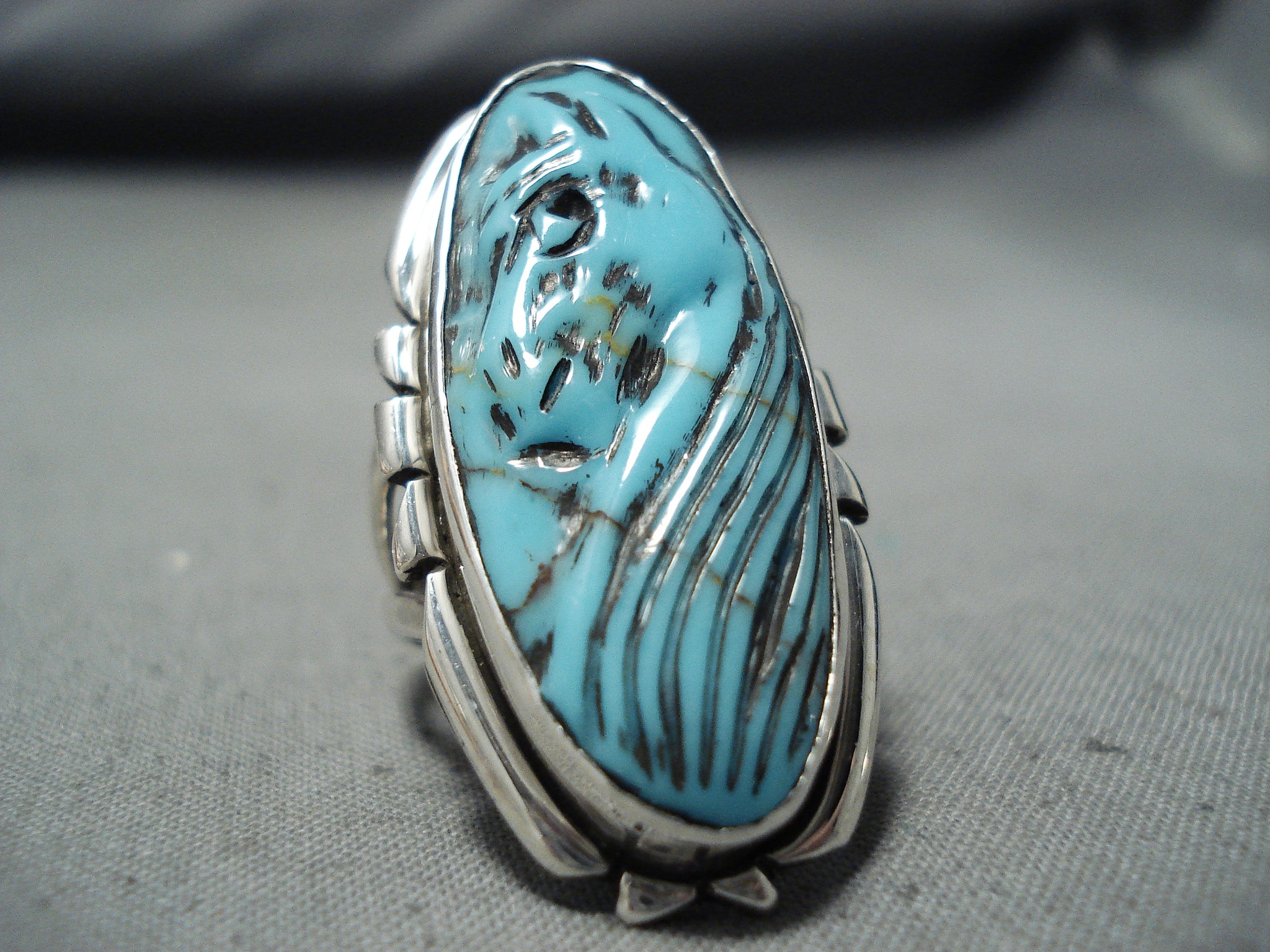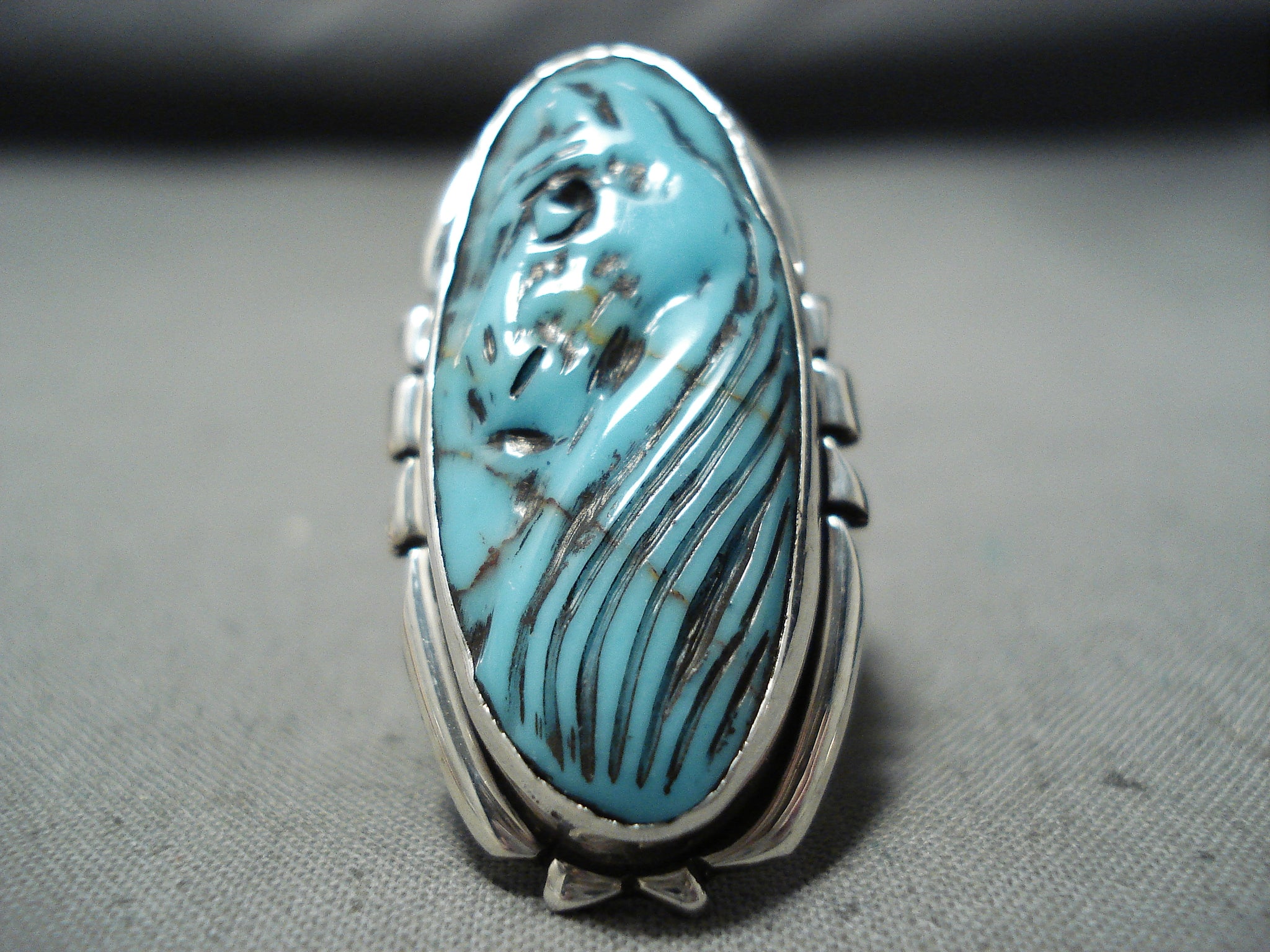 Completely Hand Carved Horse Turquoise Sterling Silver Ring