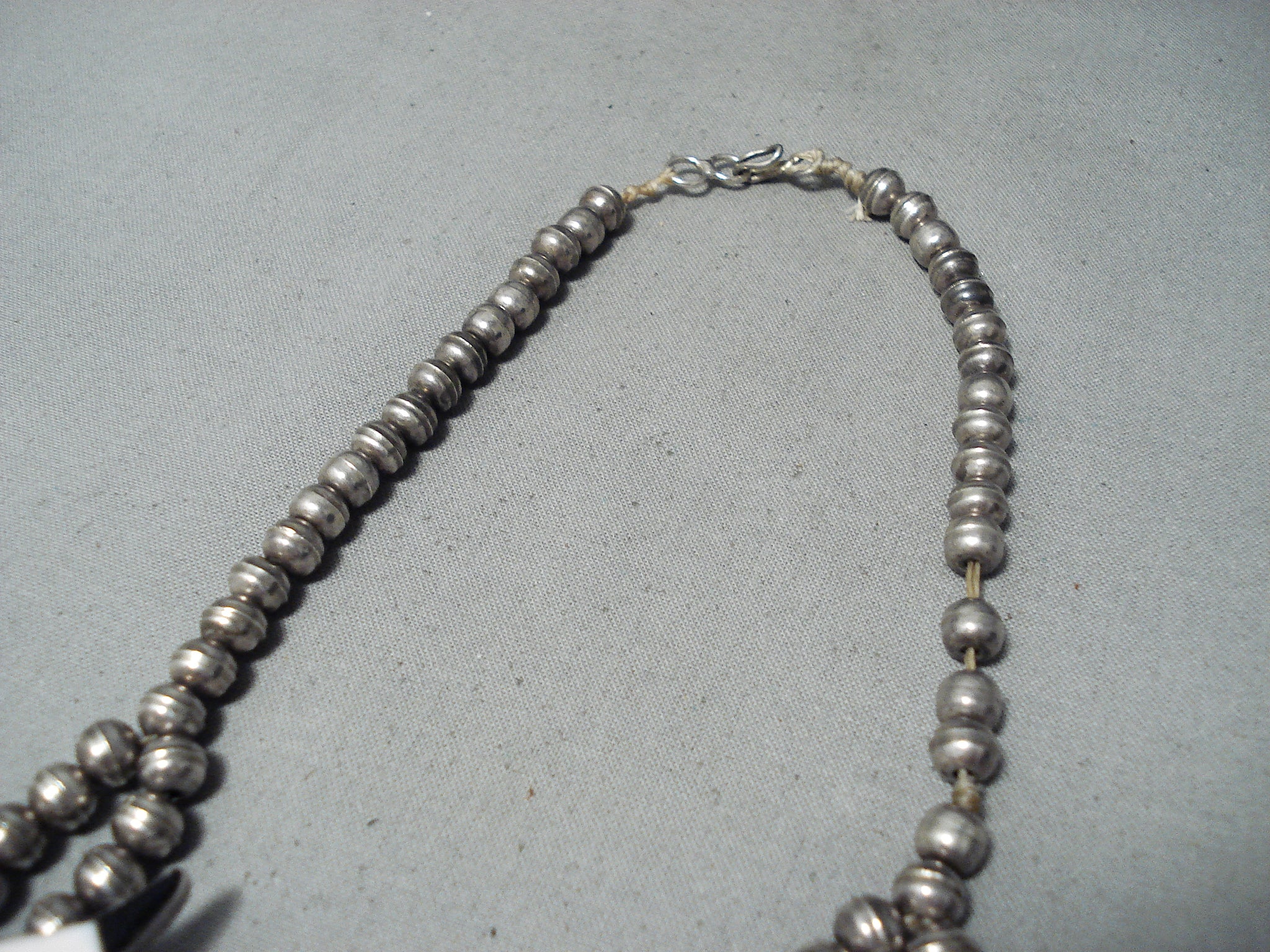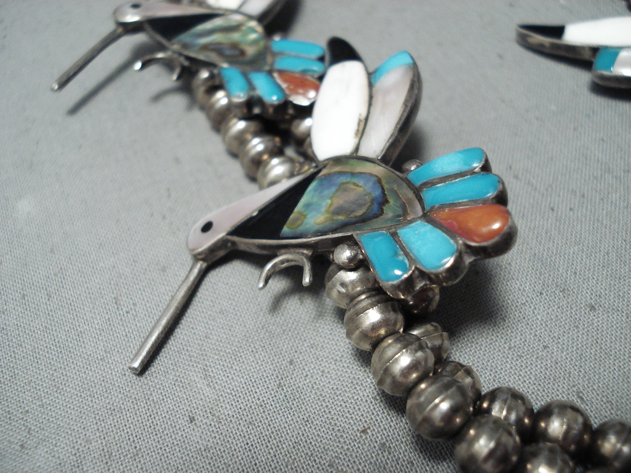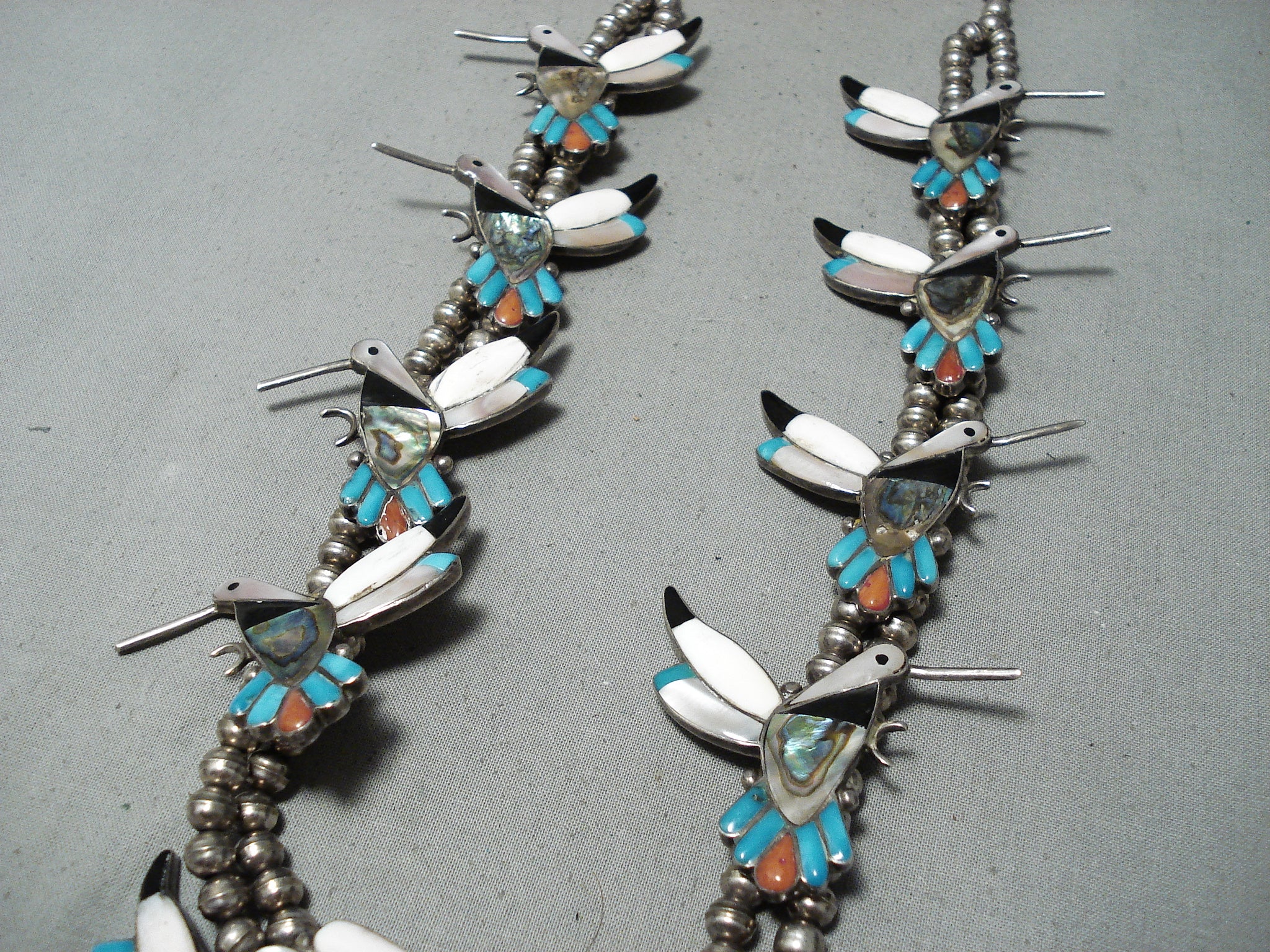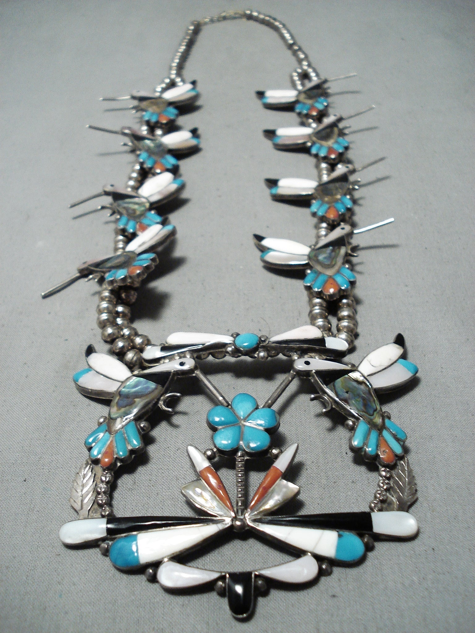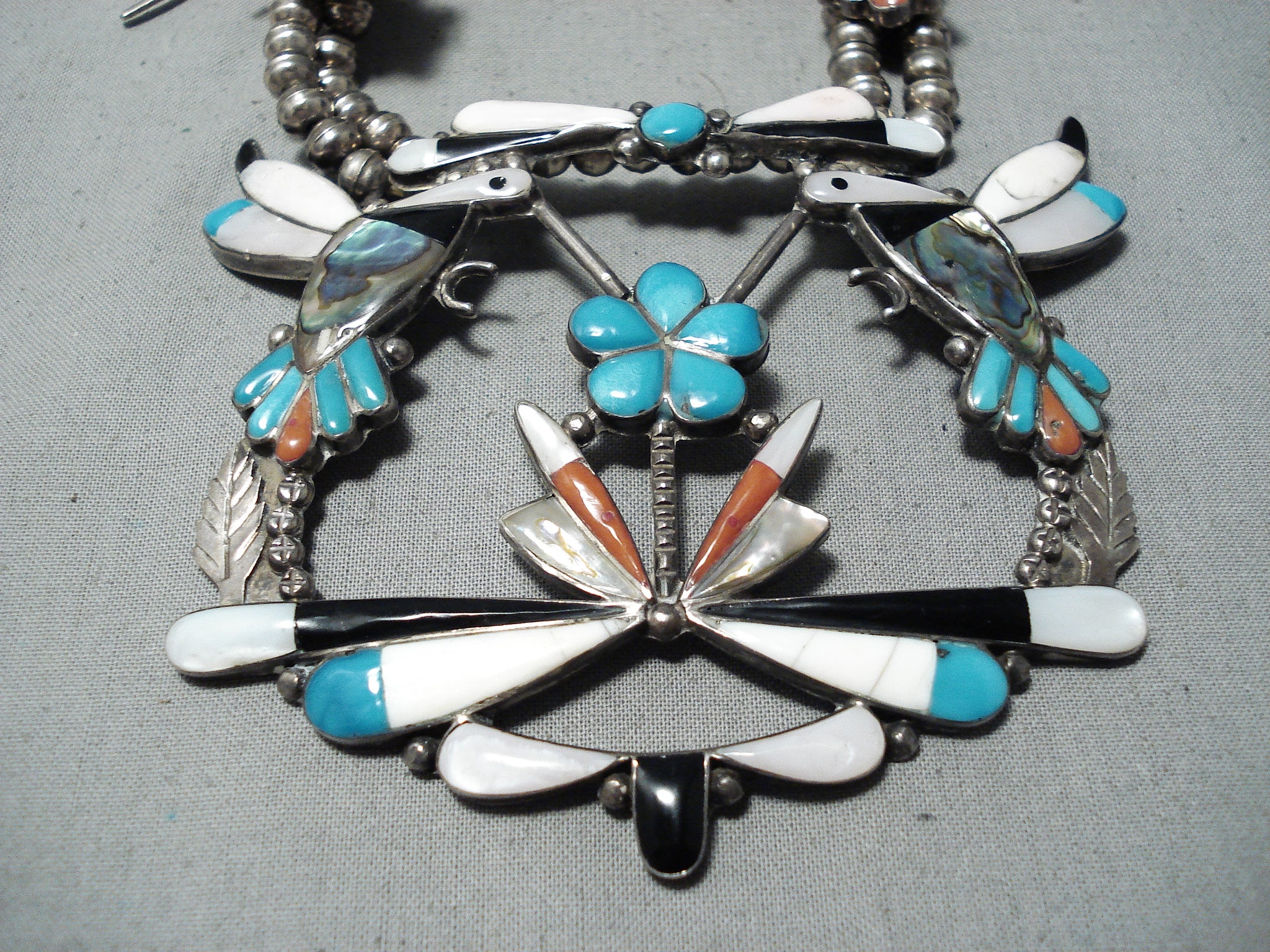 Native American Detailed! Vintage Zuni Turquoise Sterling Silver Squash Blossom Necklace