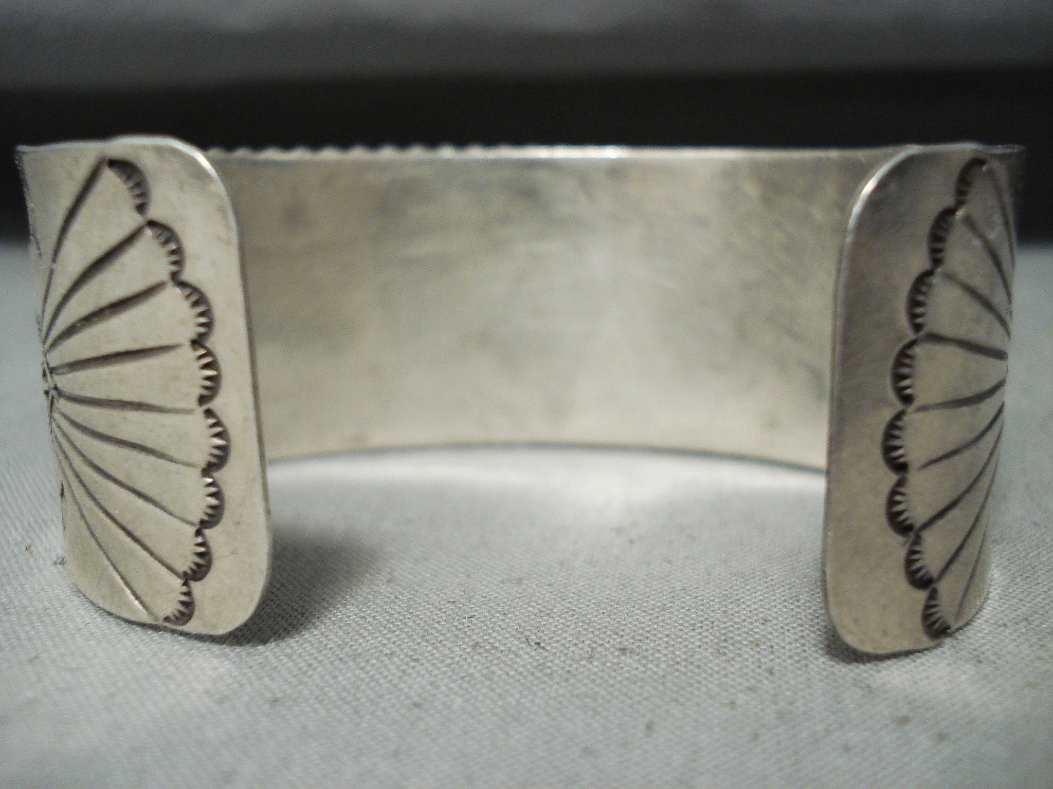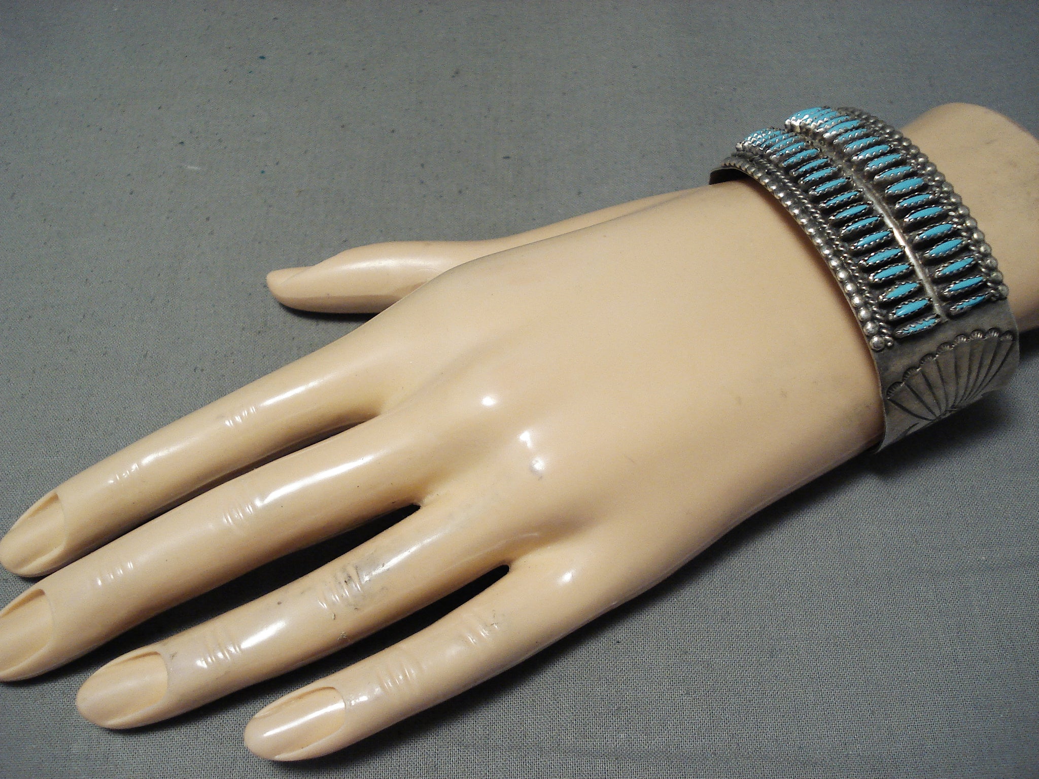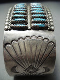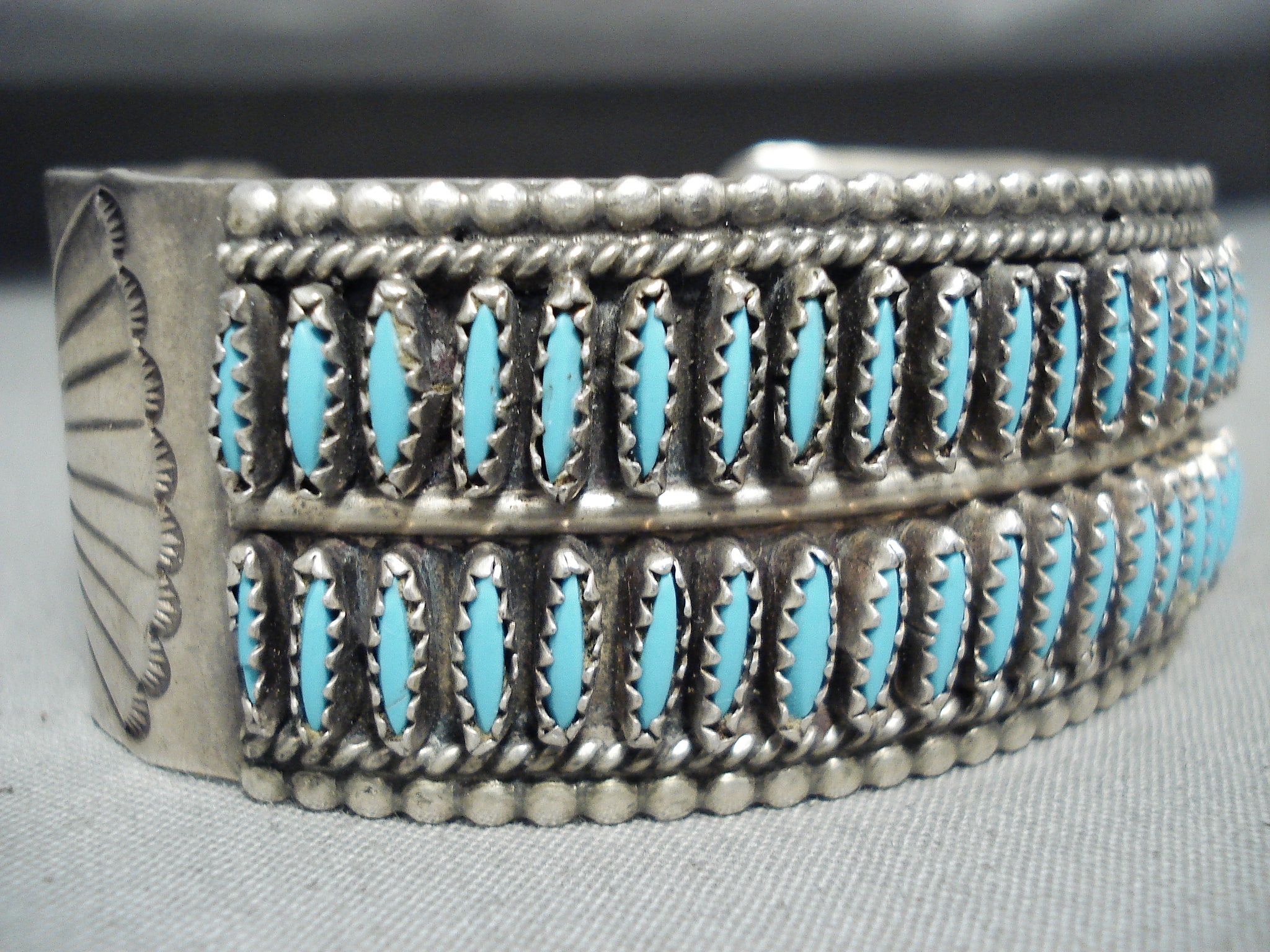 Native American Double Row Vintage Navajo Needle Turquoise Sterling Silver Bracelet