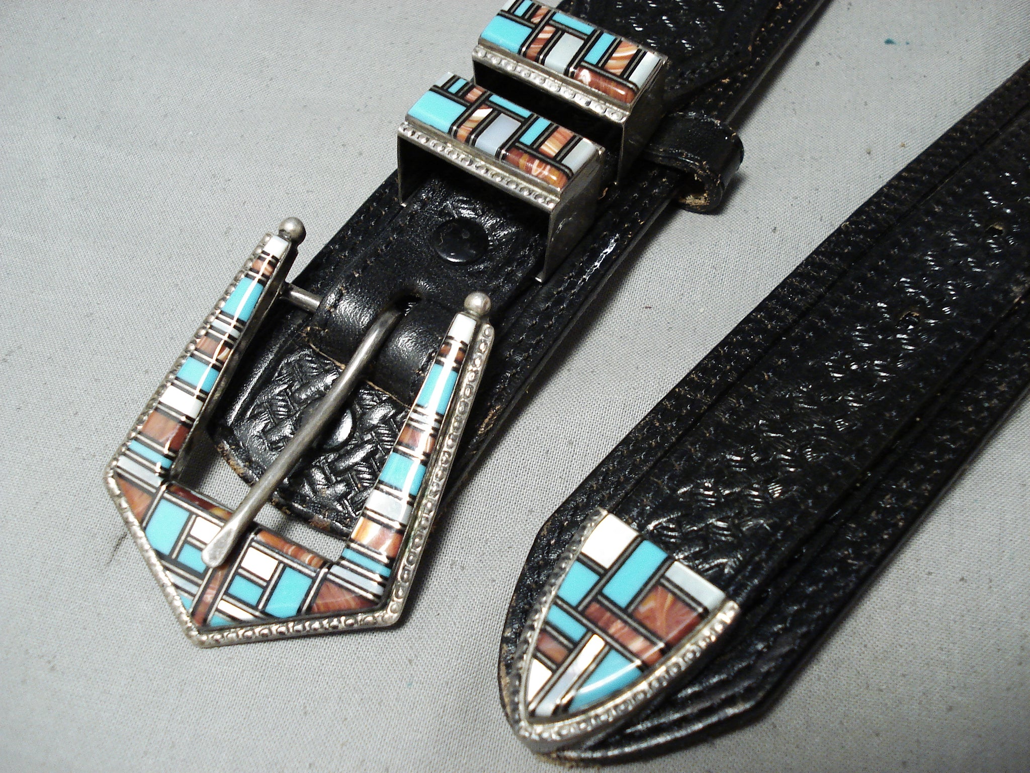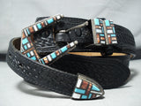 Native American Extremely Detailed Vintage Zuni Turquoise Sterling Silver Belt