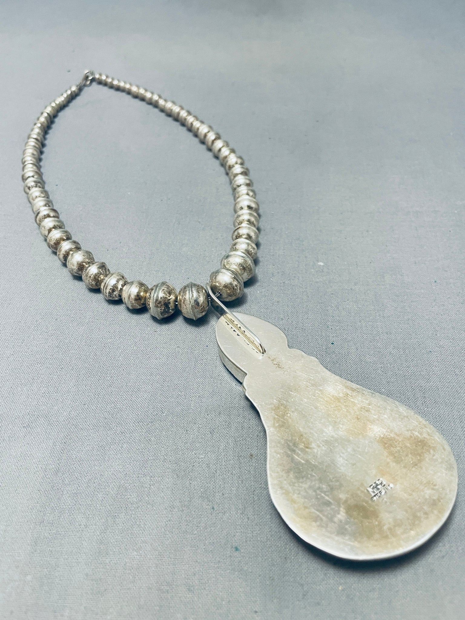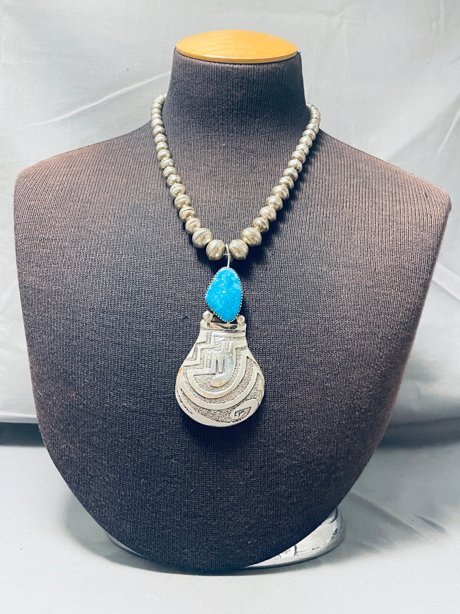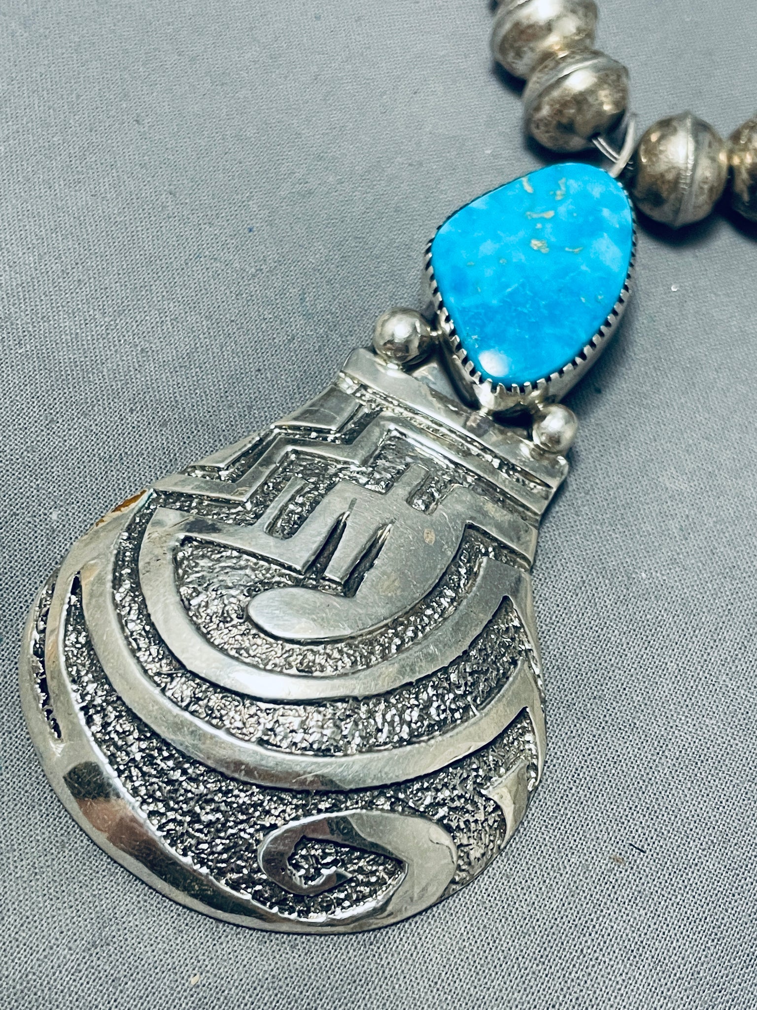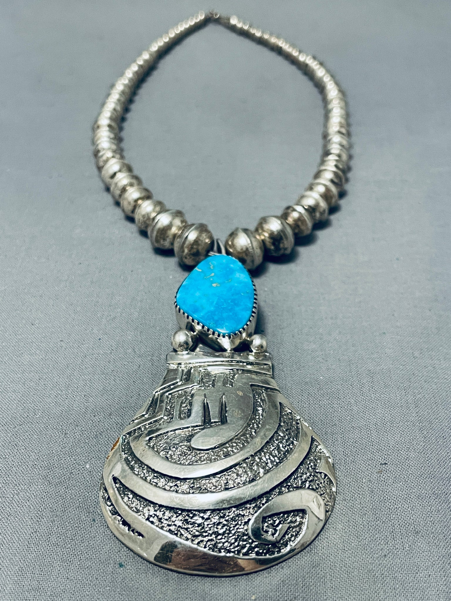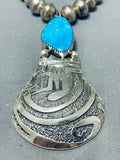 Native American Fabulous Signed Santo Domingo Blue Gem Turquoise Sterling Silver Necklace