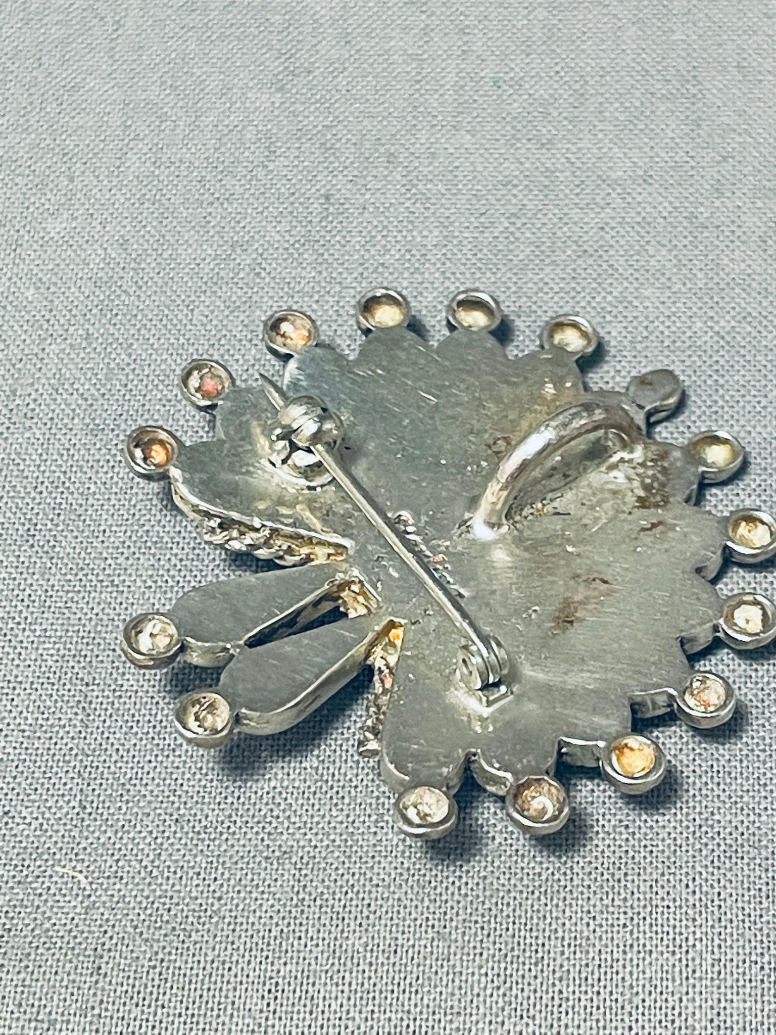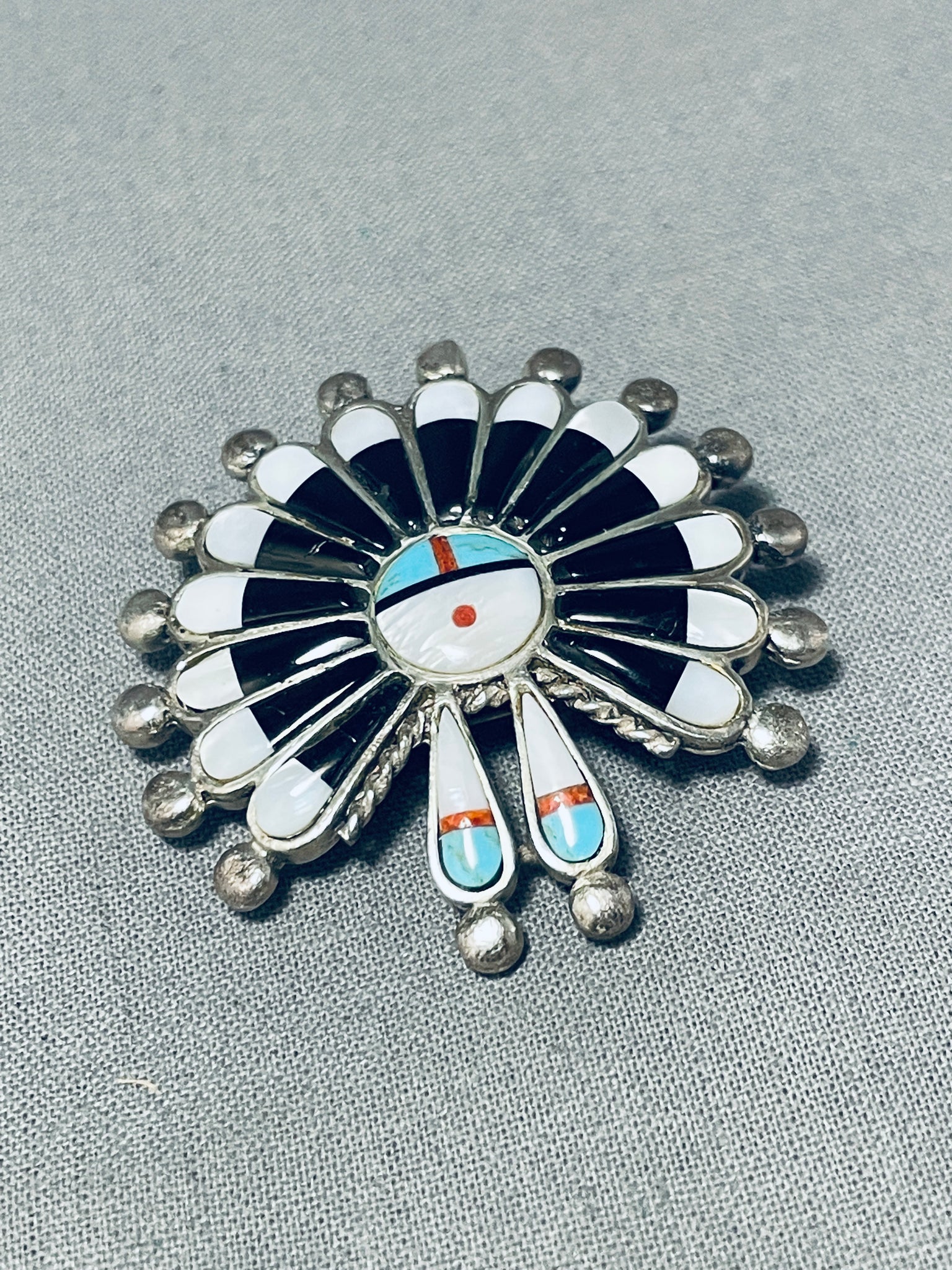 Native American Fabulous Vintage Zuni Jet Sterling Silver Sunface Pin/ Pendant