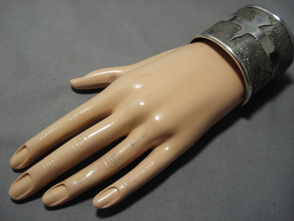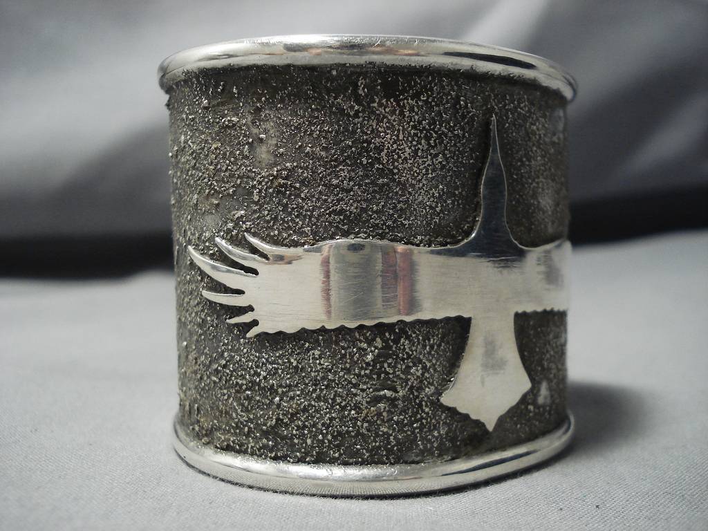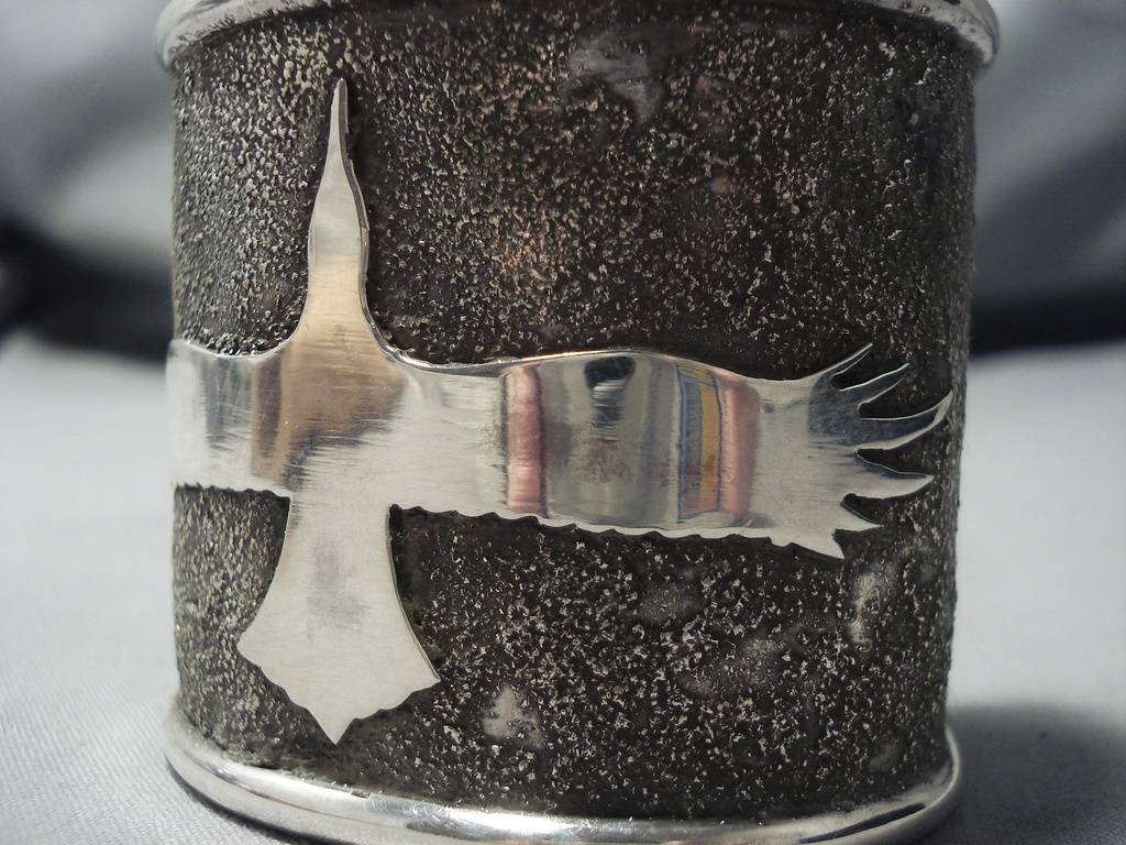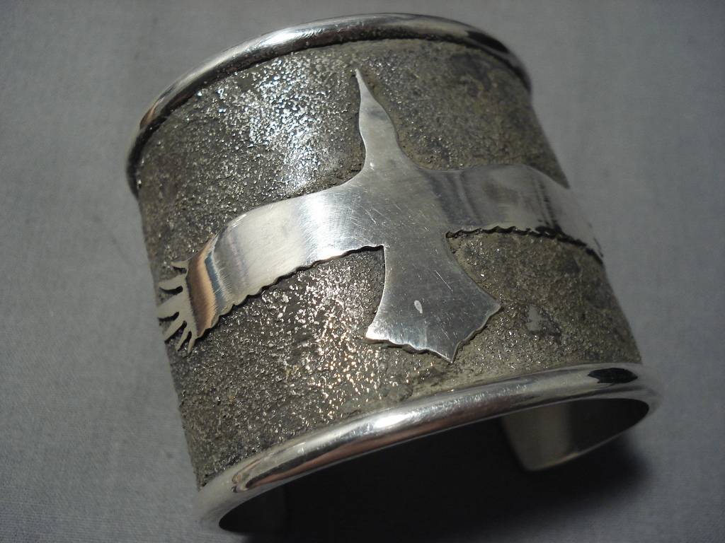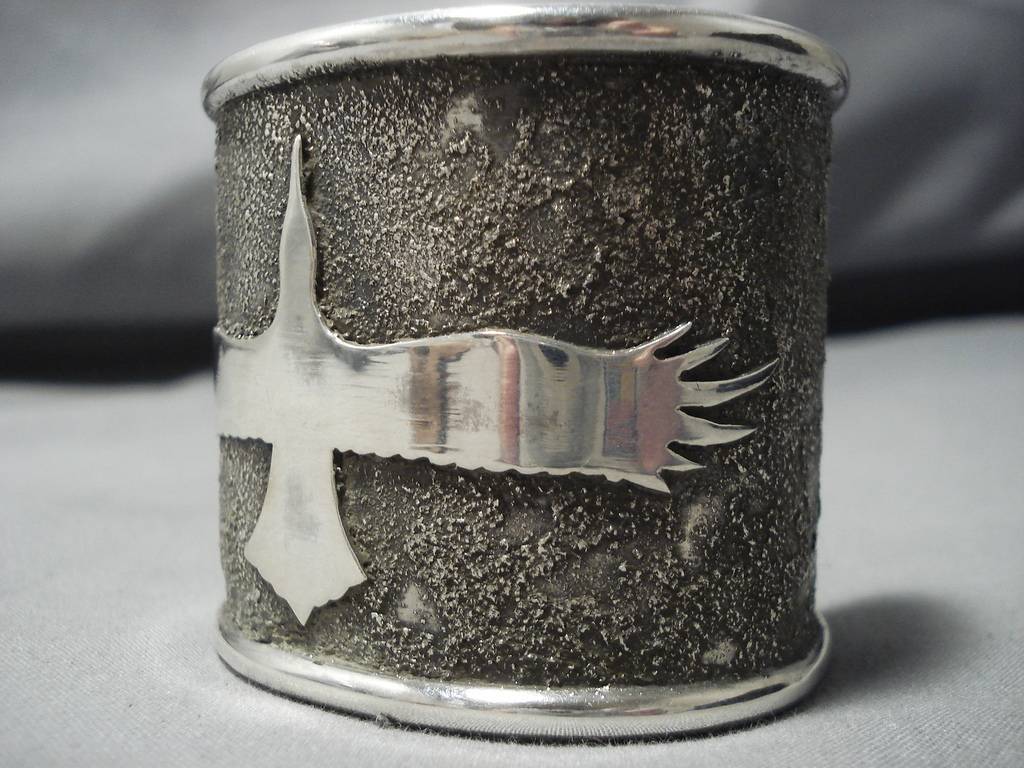 Native American Full Wingspan Symbolic Wide Heavy Sterling Silver 98 Gram Bracelet Cuff