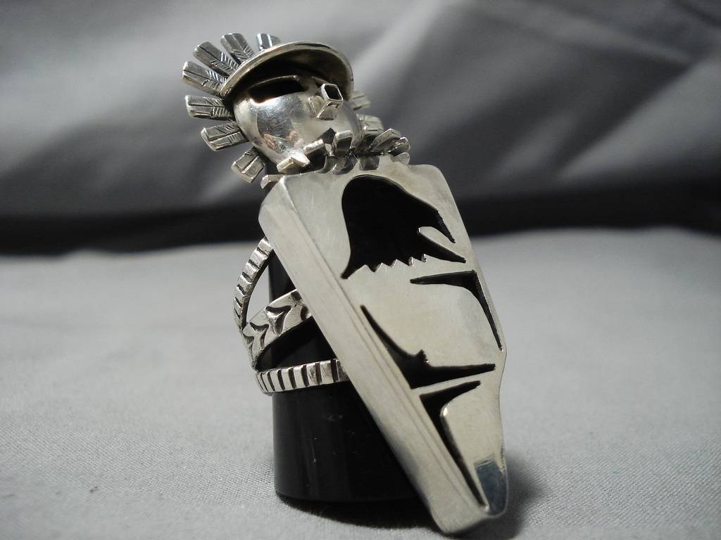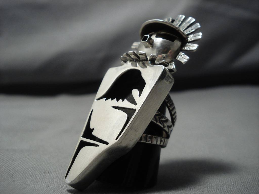 Native American Giant Sterling Silver Kachina Stamped Sterling Detailed Amazing Ring- 34 Grams!!