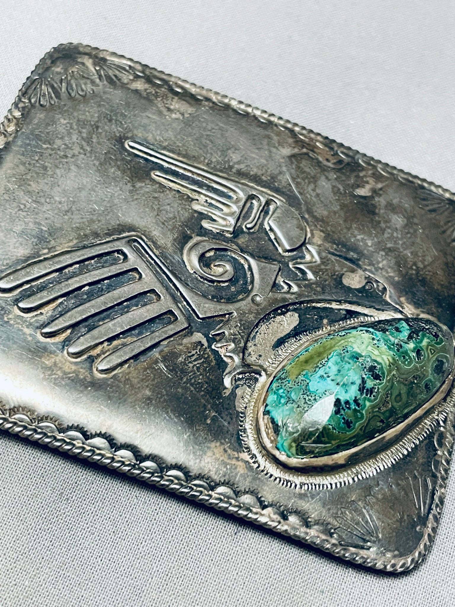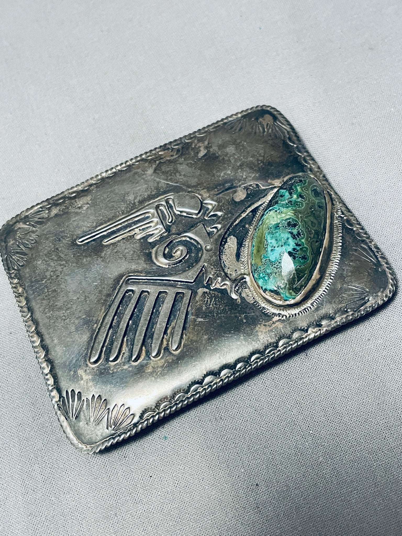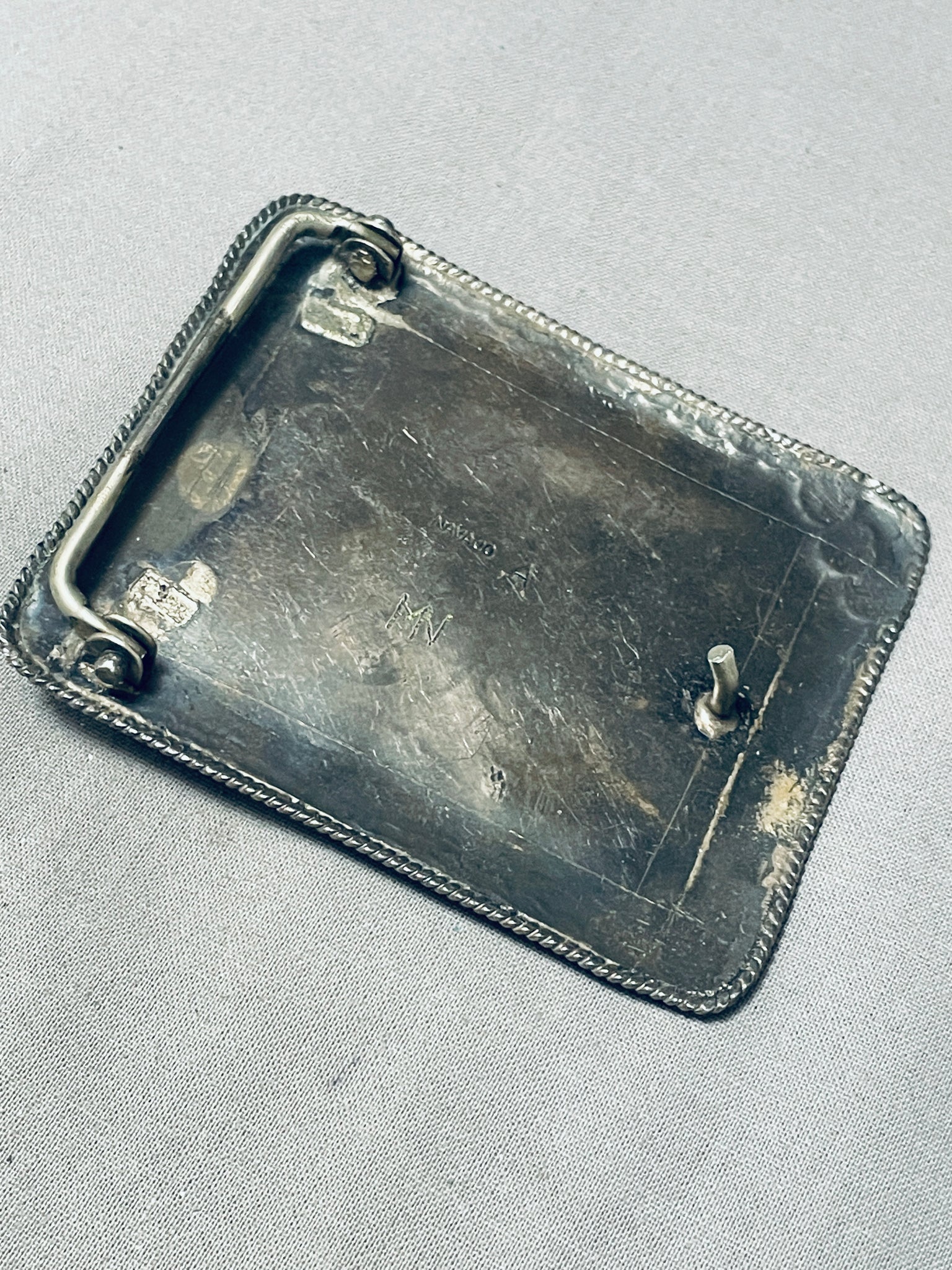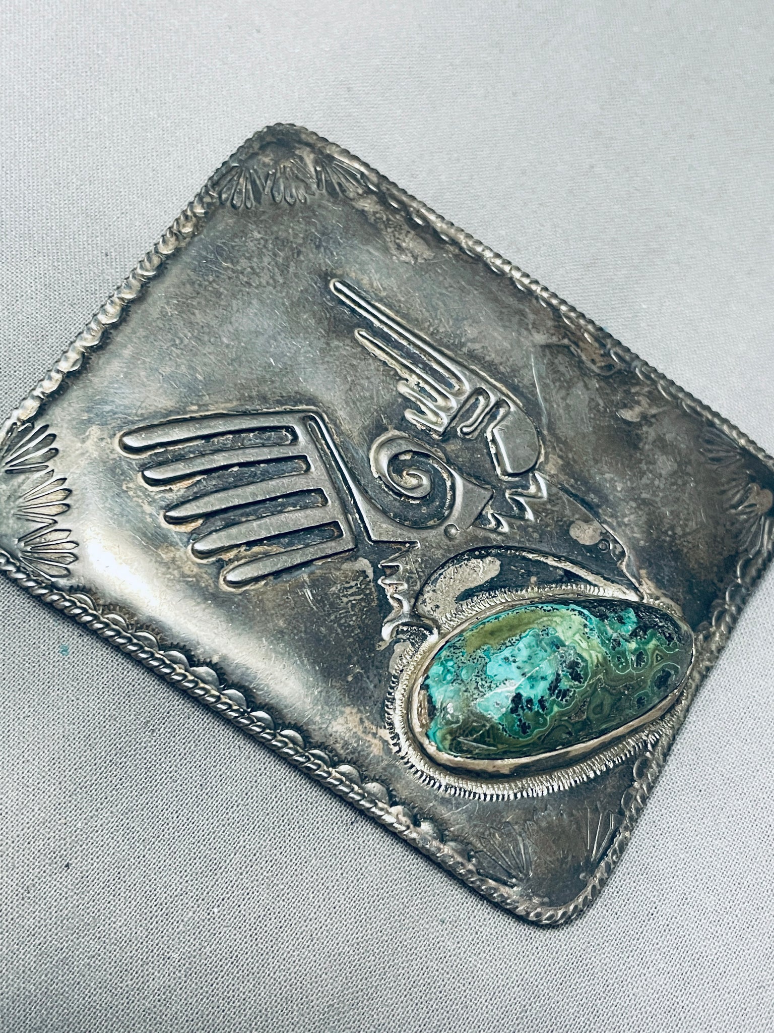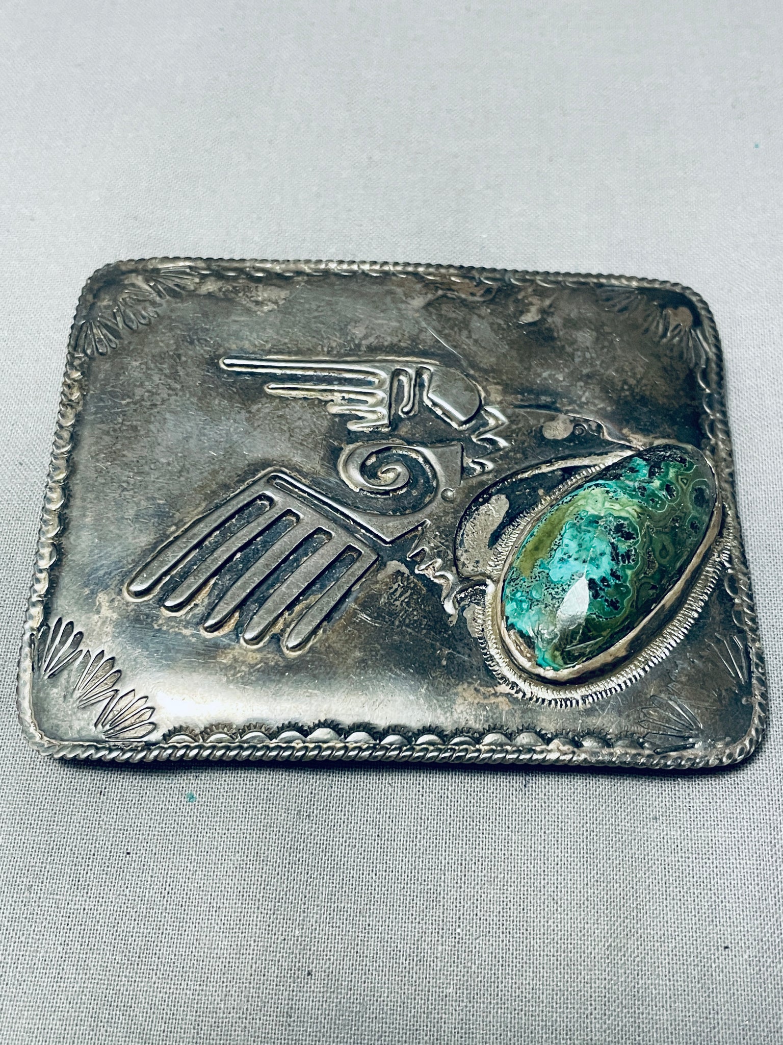 Native American Heavy Old Patina Vintage Hopi Turquoise Sterling Silver Buckle Old