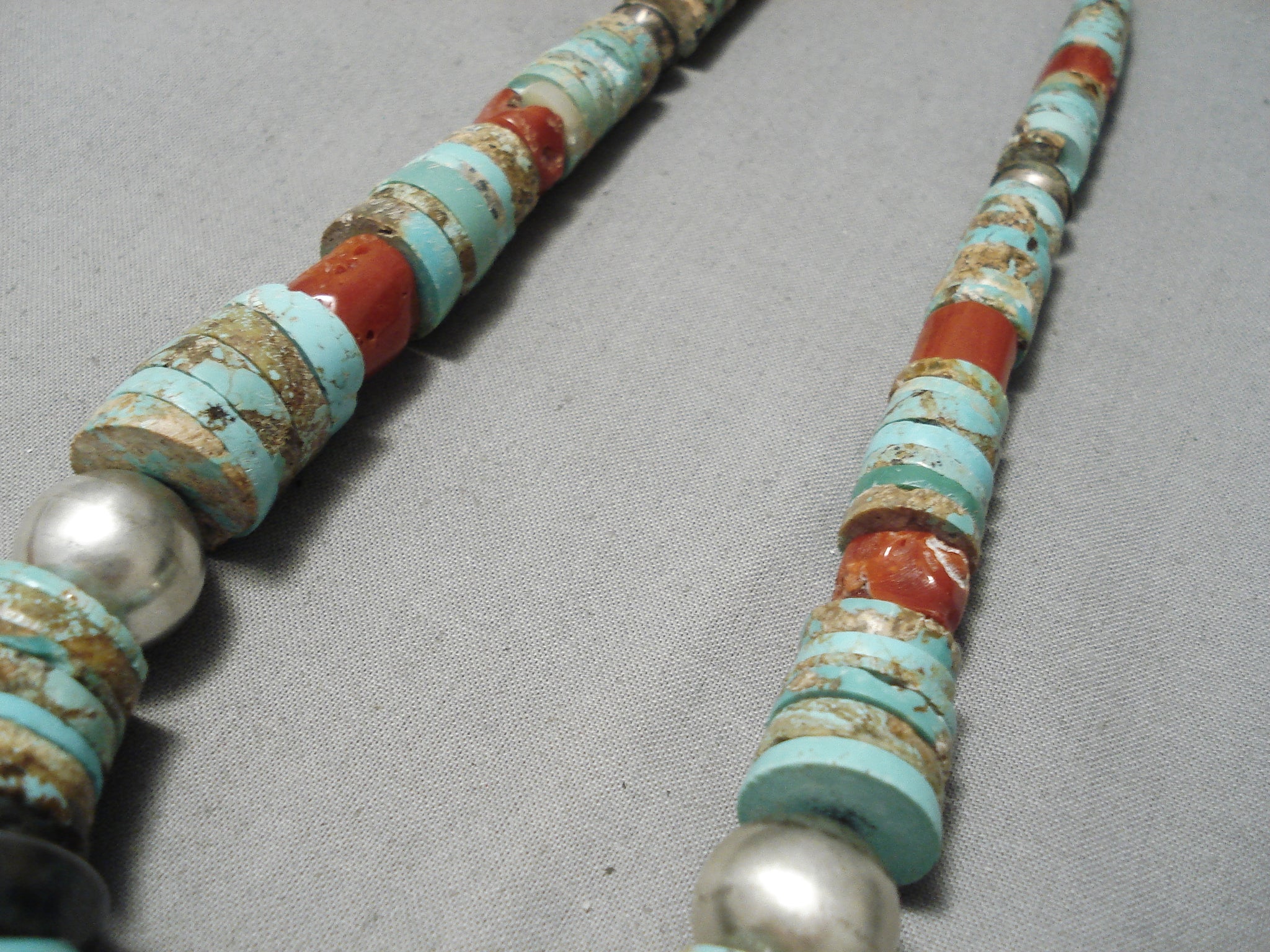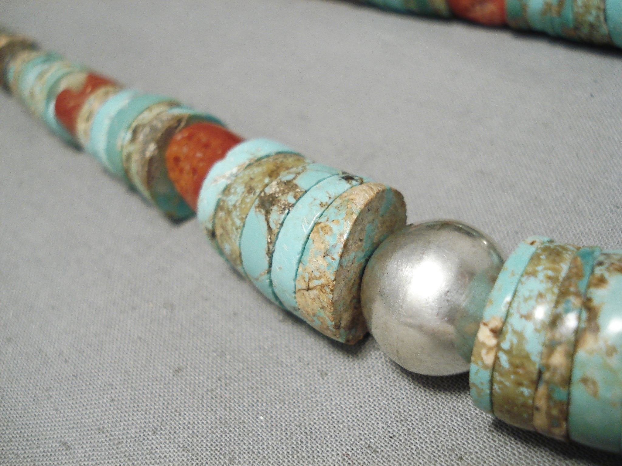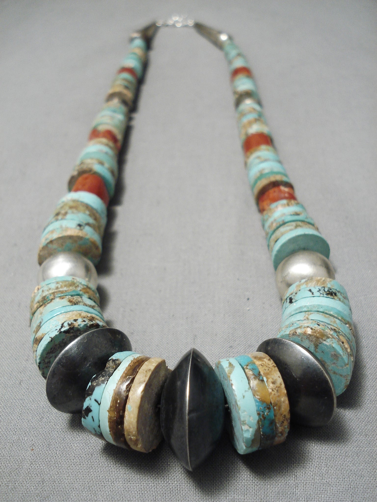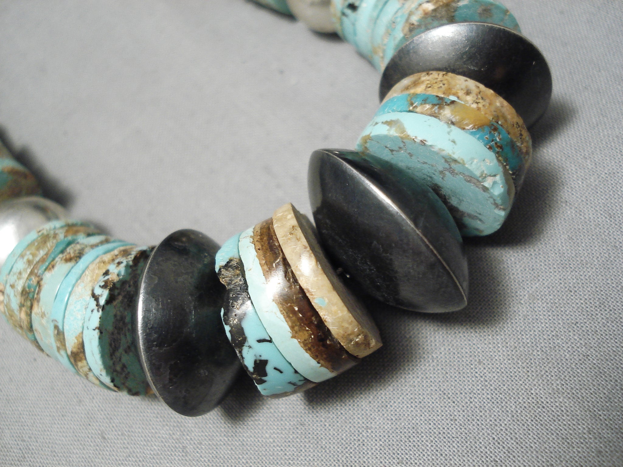 Native American Huge Chunky Vintage Santo Domingo Turquoise Sterling Silver Necklace Old