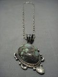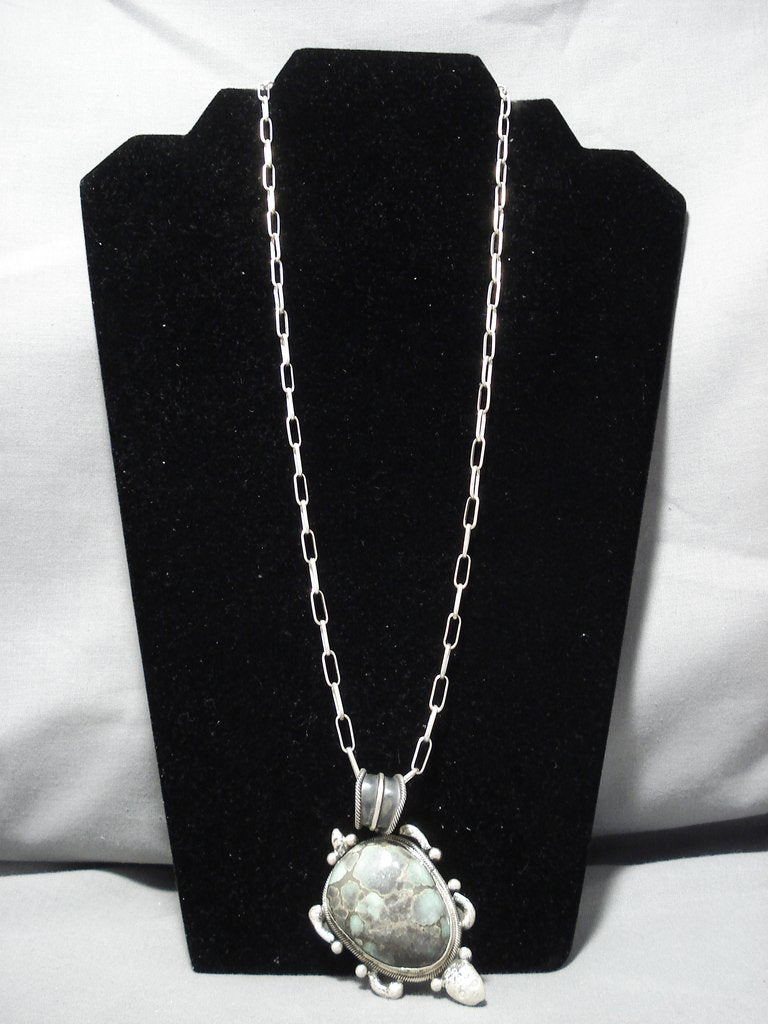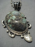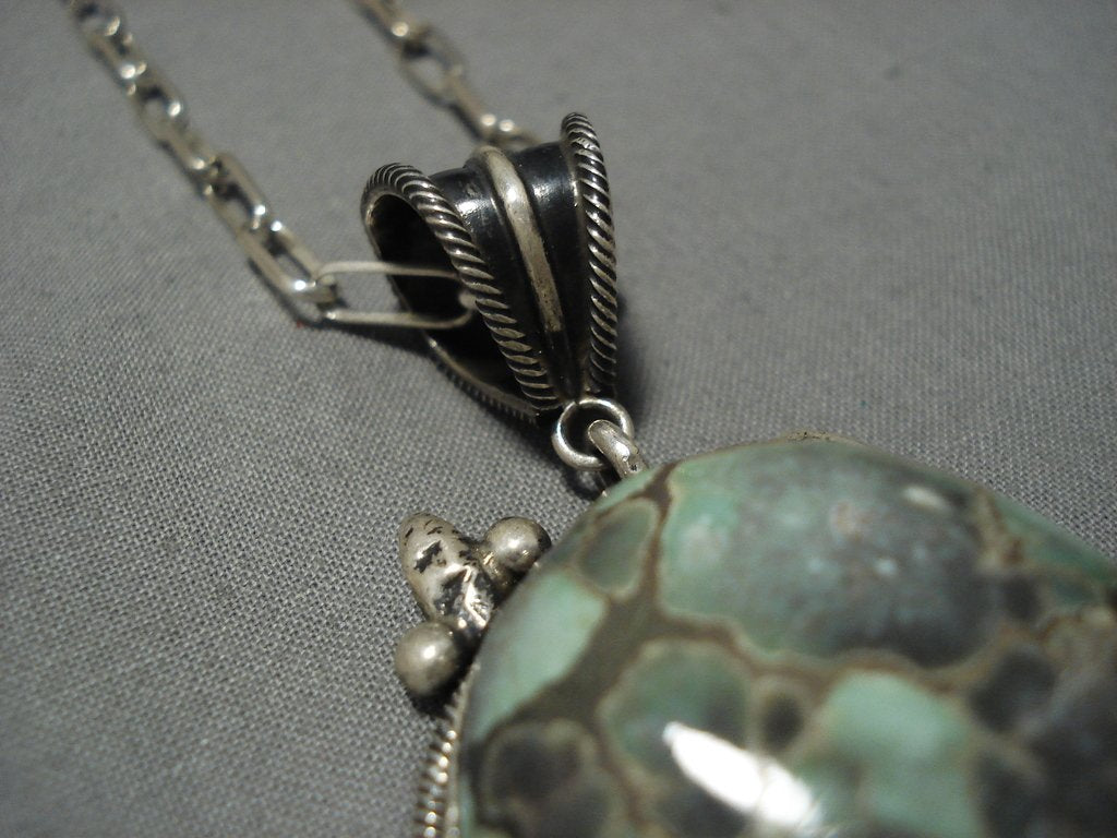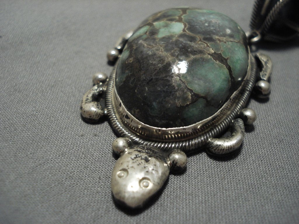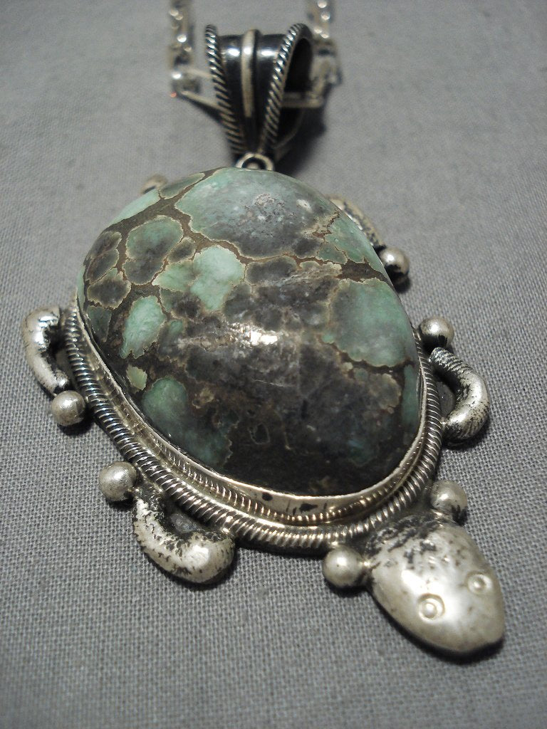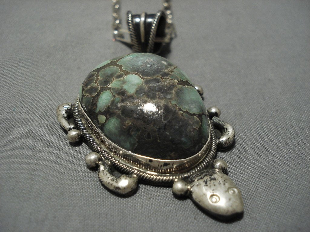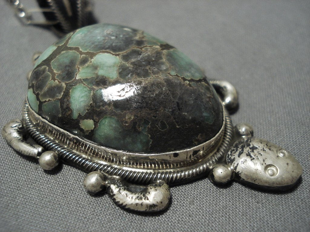 Native American Huge Very Rare Damale Turquoise Turtle Sterling Silver Necklace Old