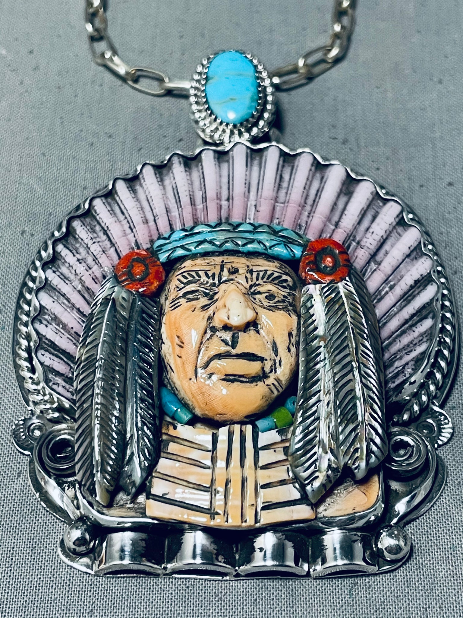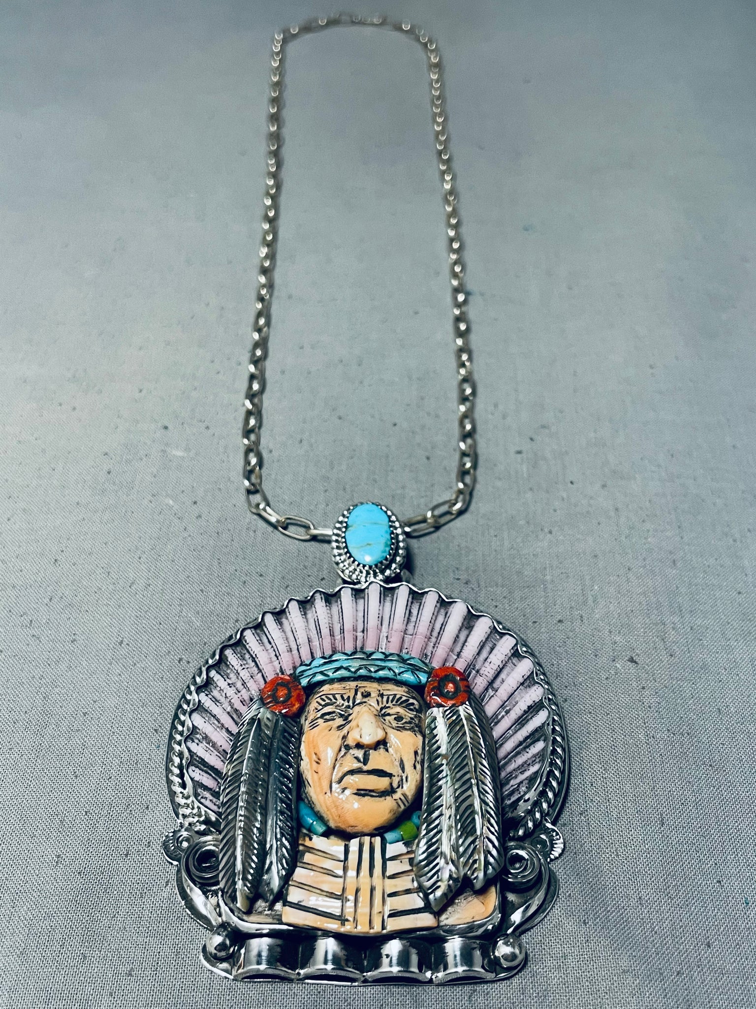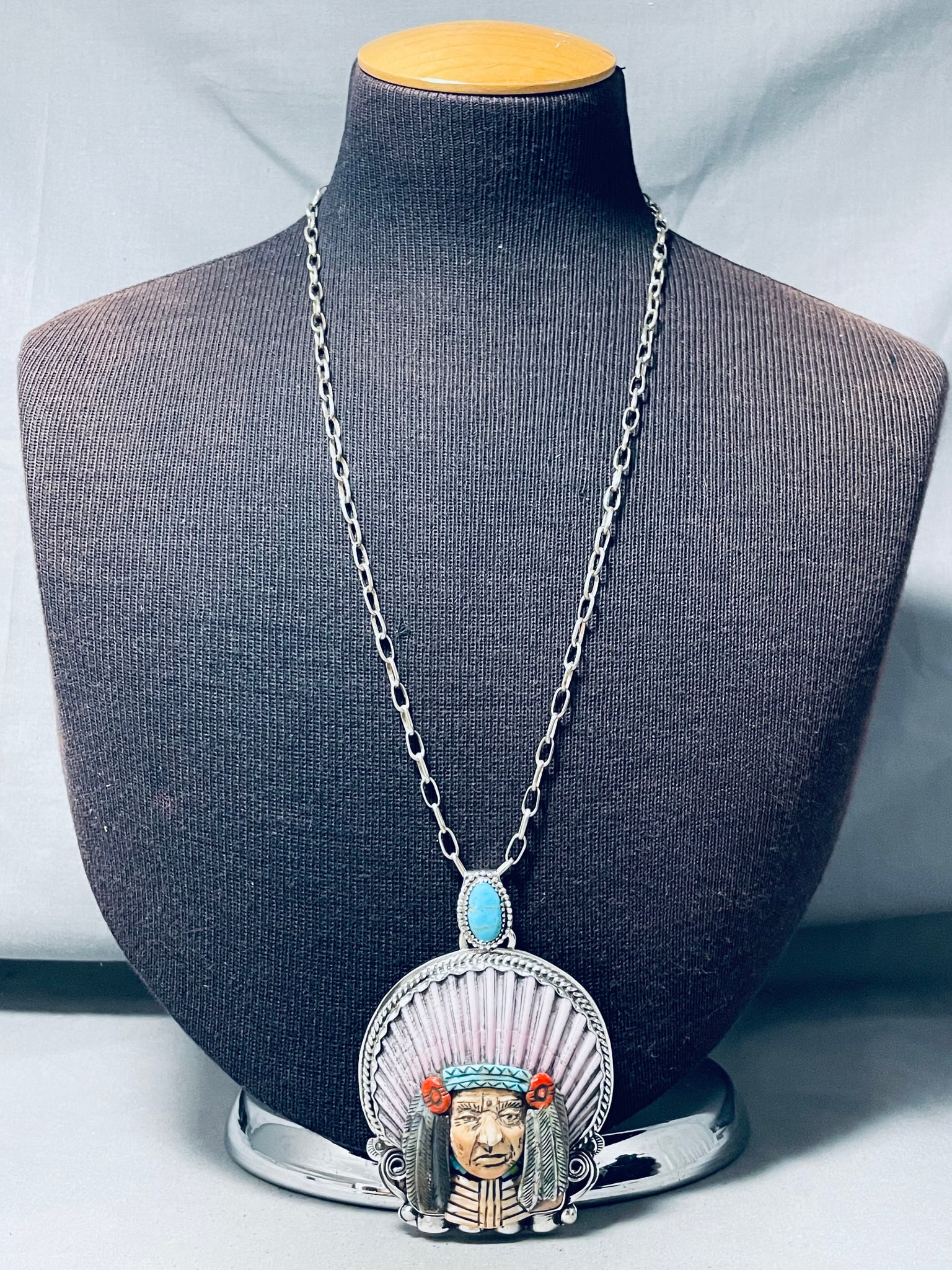 Native American Important Francisco Gomez Turquoise Chief Sterling Silver Coral Necklace