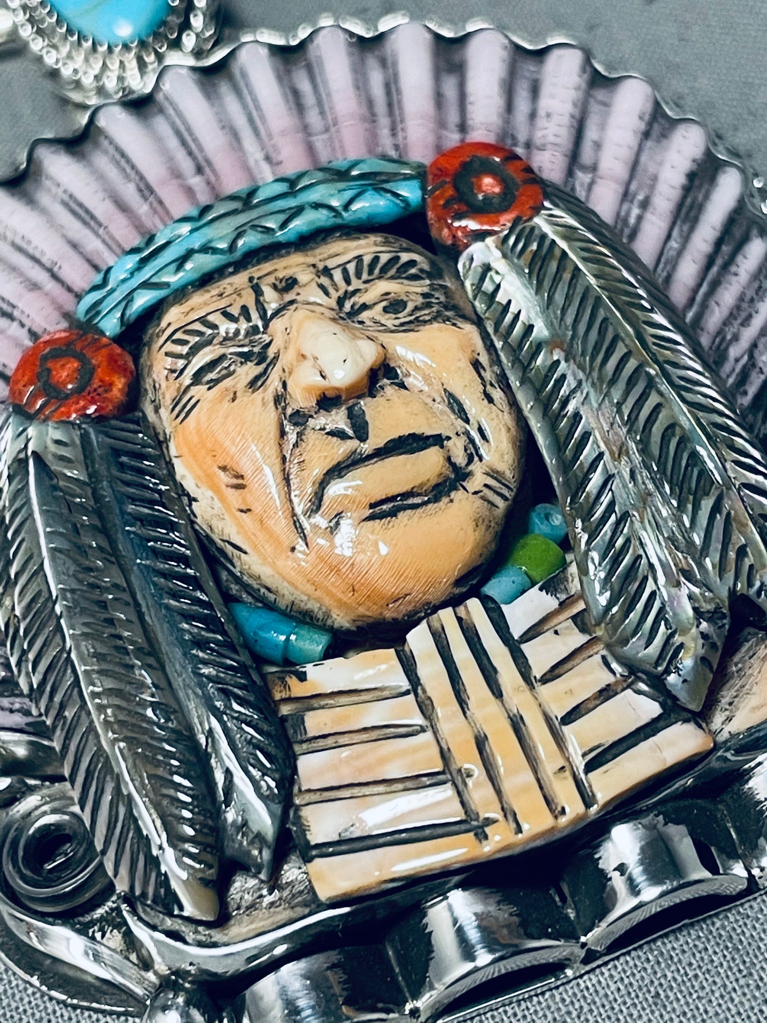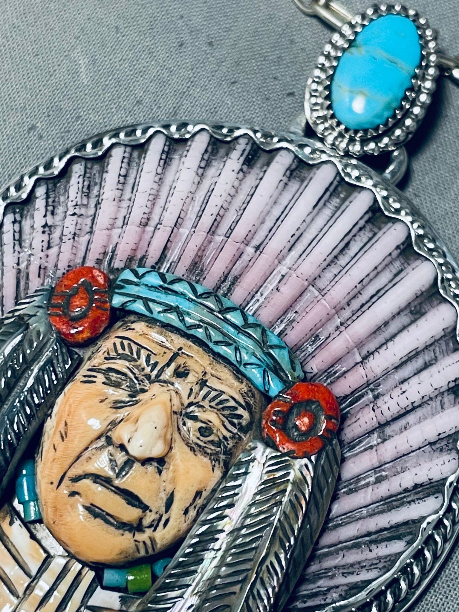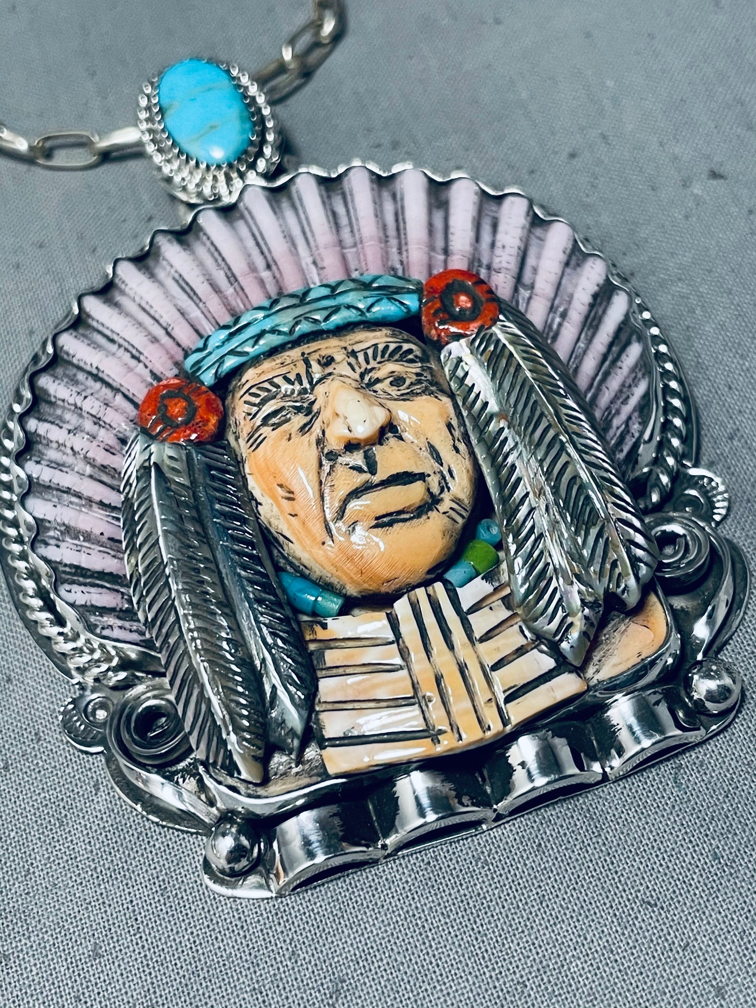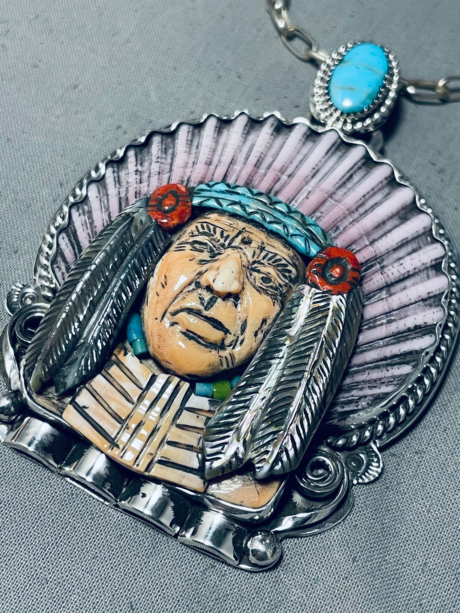 Native American Important Francisco Gomez Turquoise Chief Sterling Silver Coral Necklace