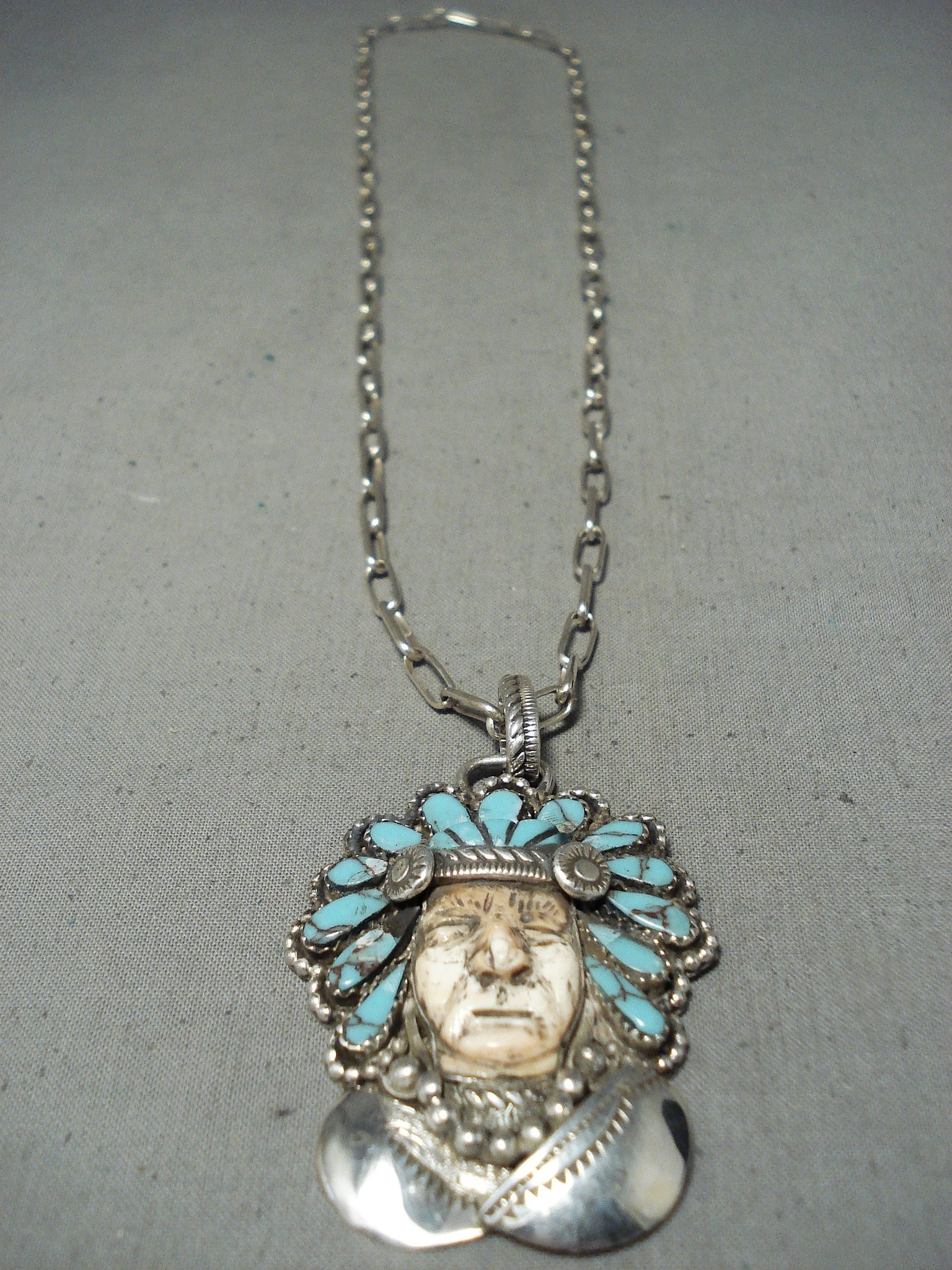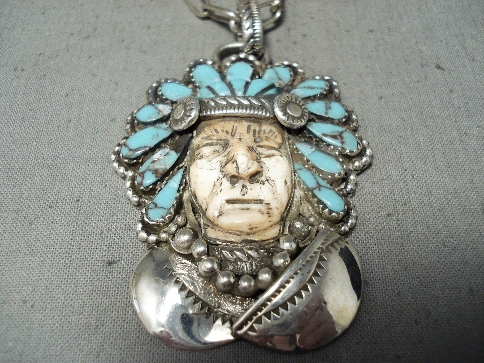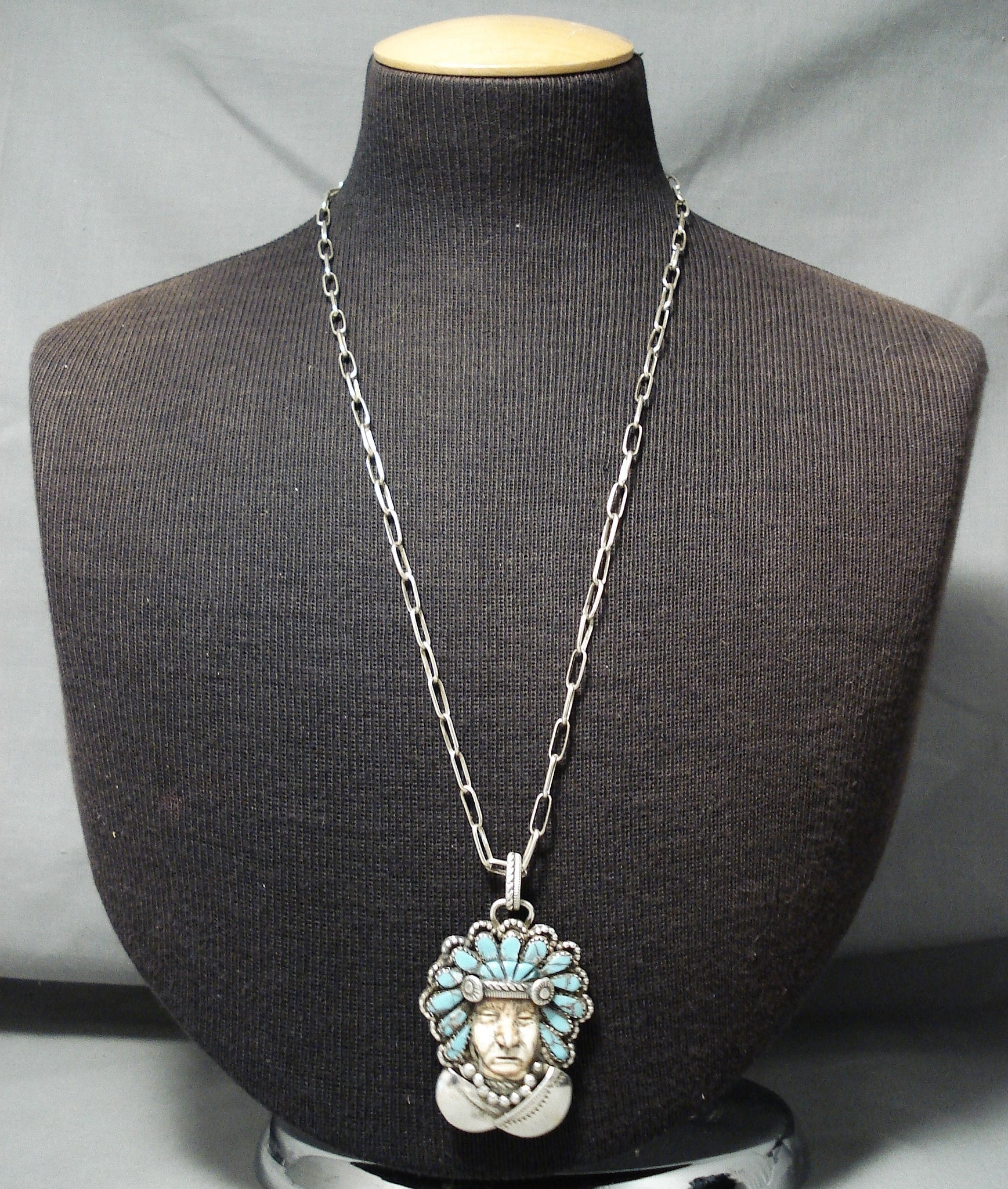 Native American Important Francisco Gomez Turquoise Chief Sterling Silver Necklace