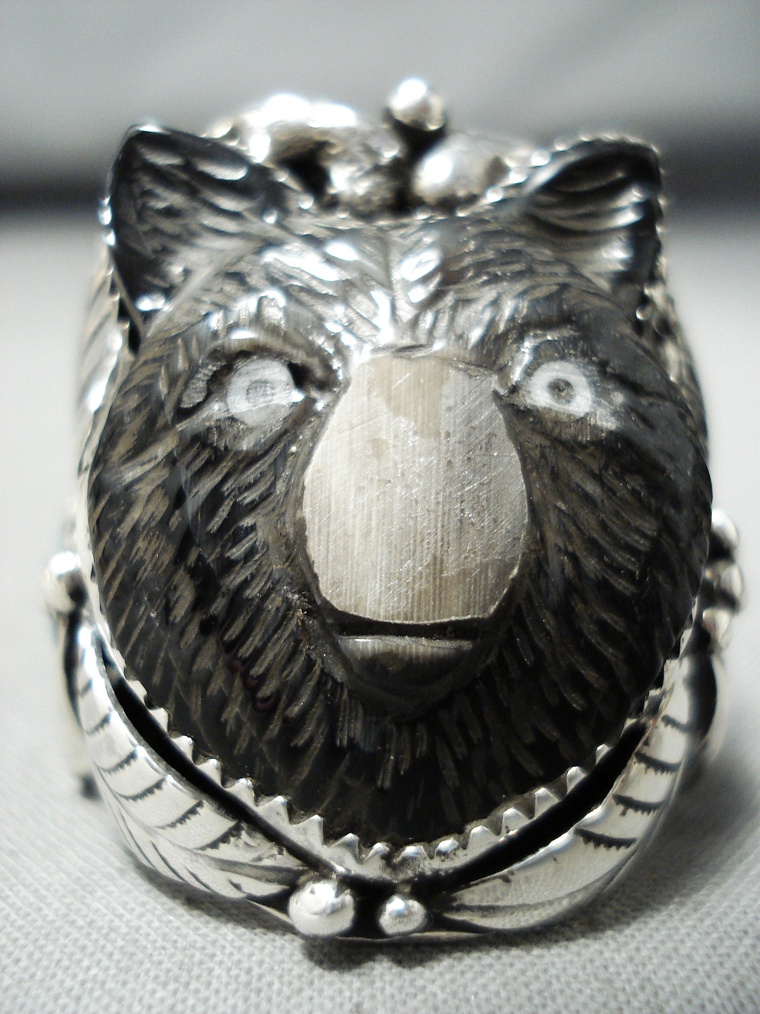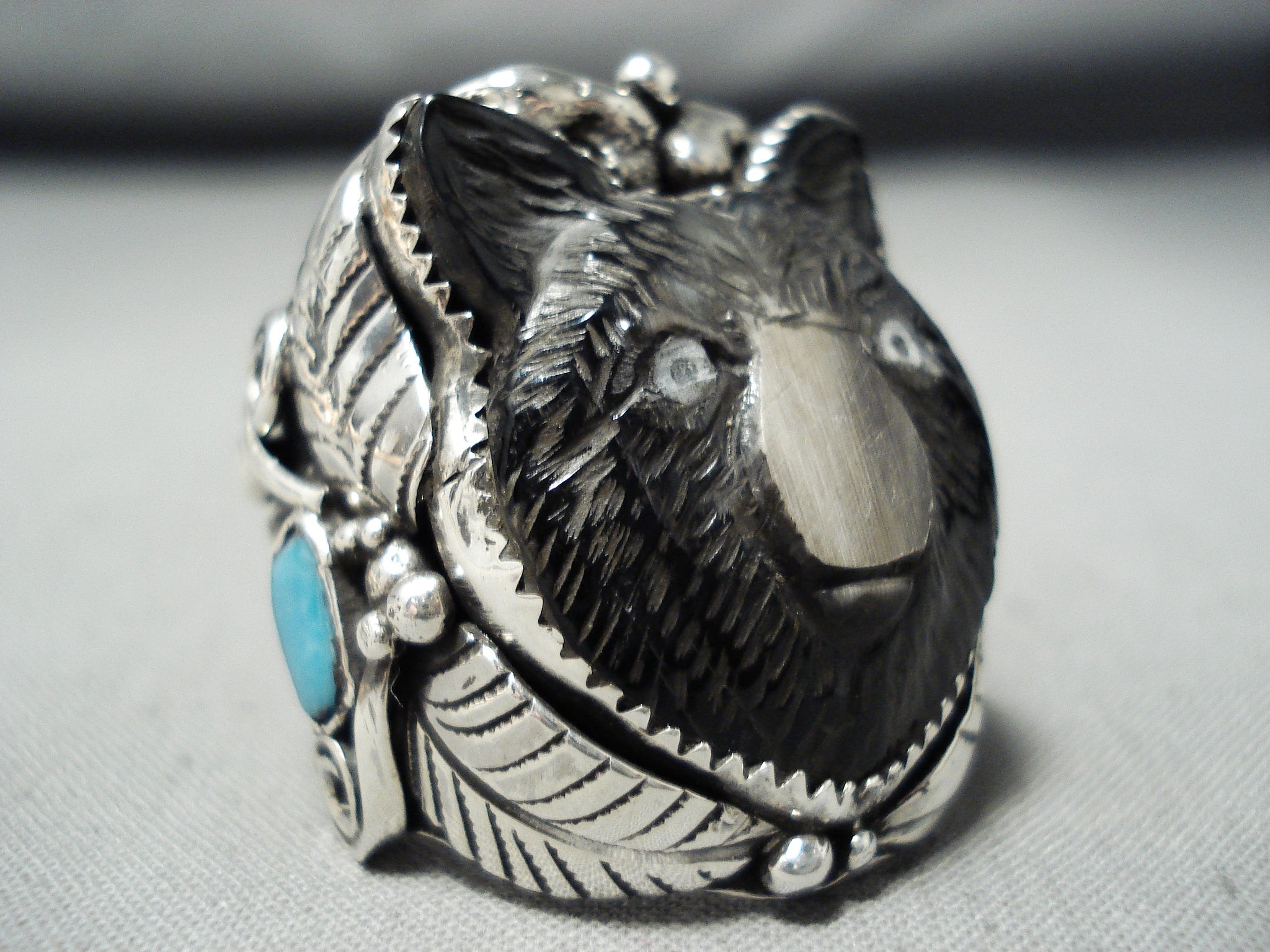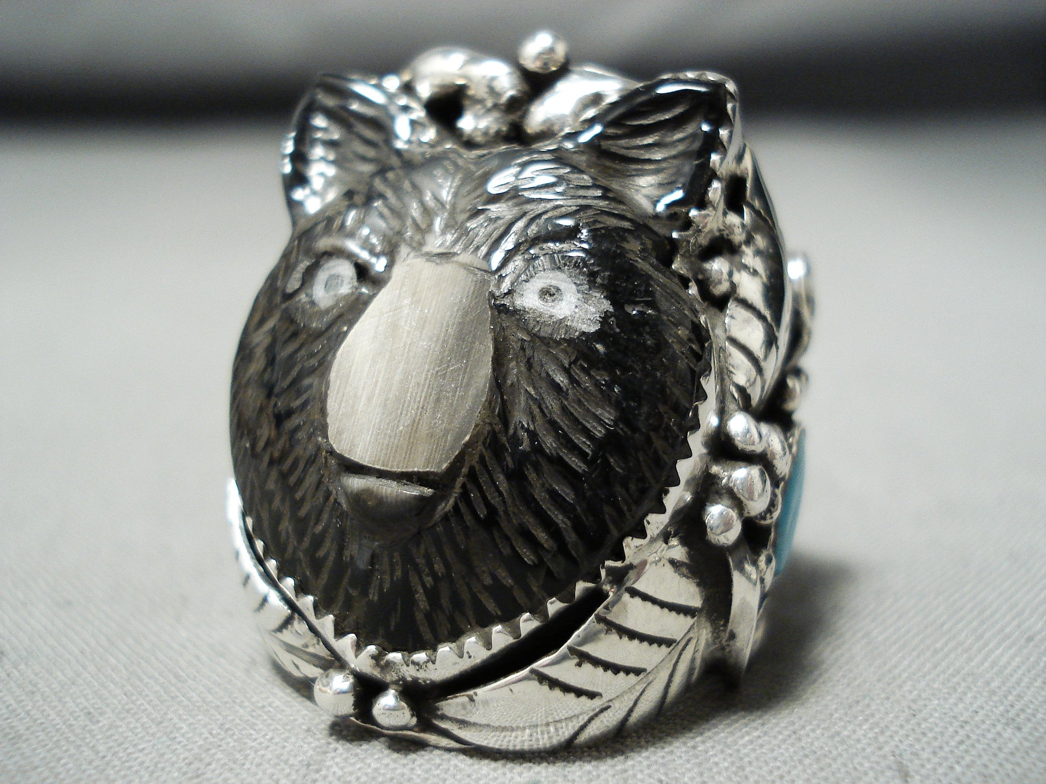 Native American Important Hand Carved Bear Frnacisco Gomez Turquoise Sterling Silver Bear