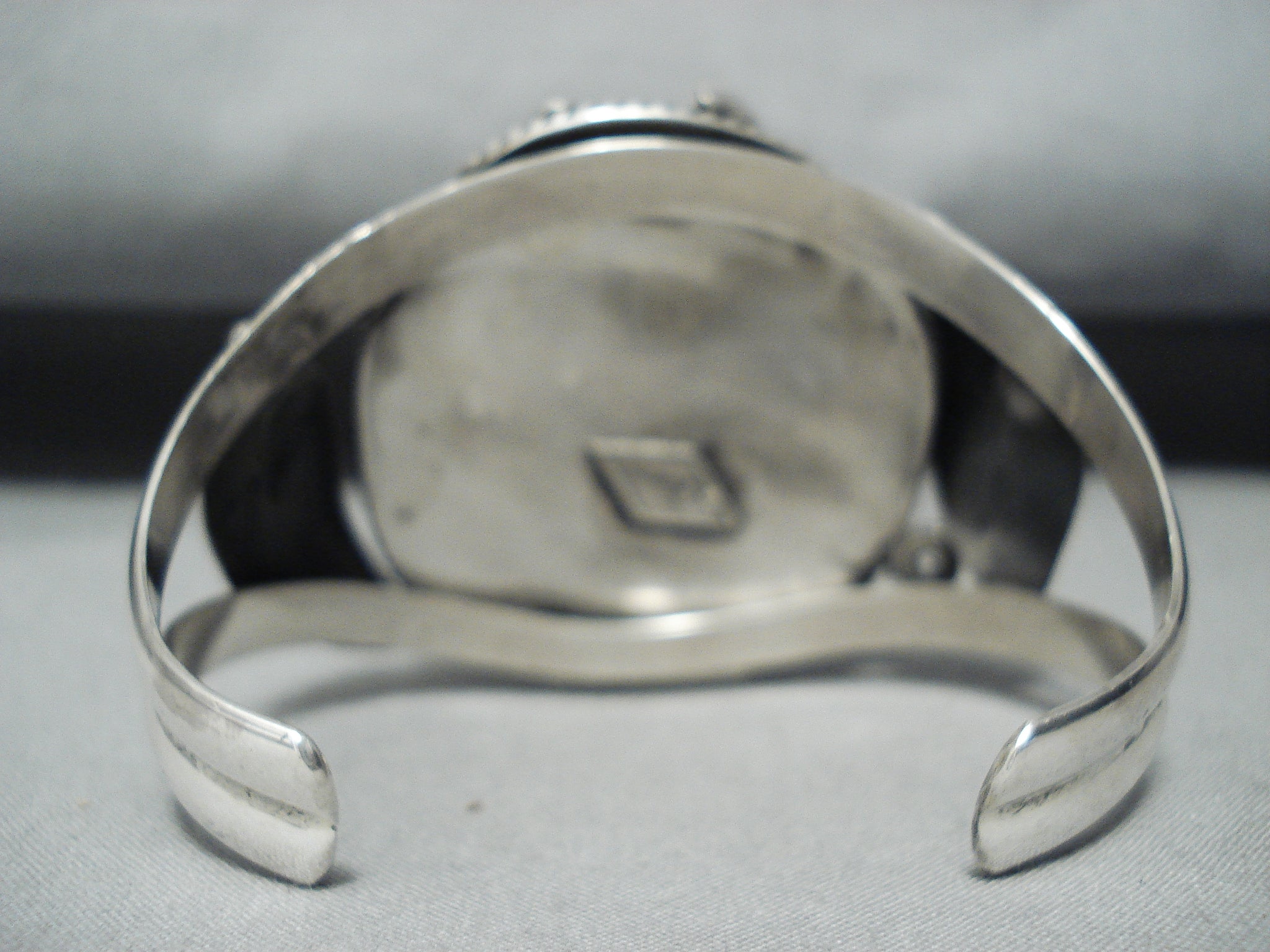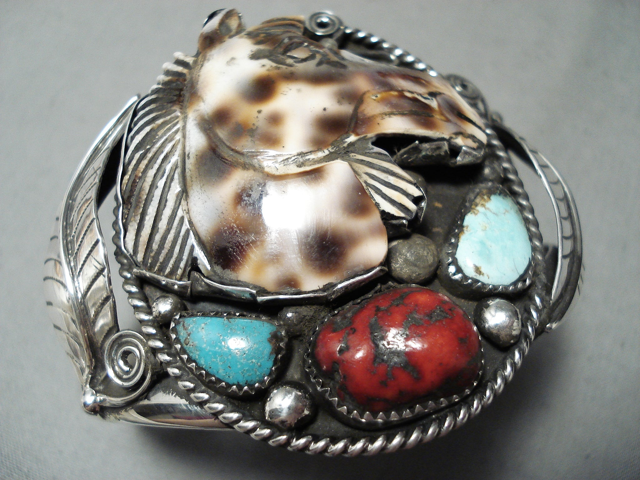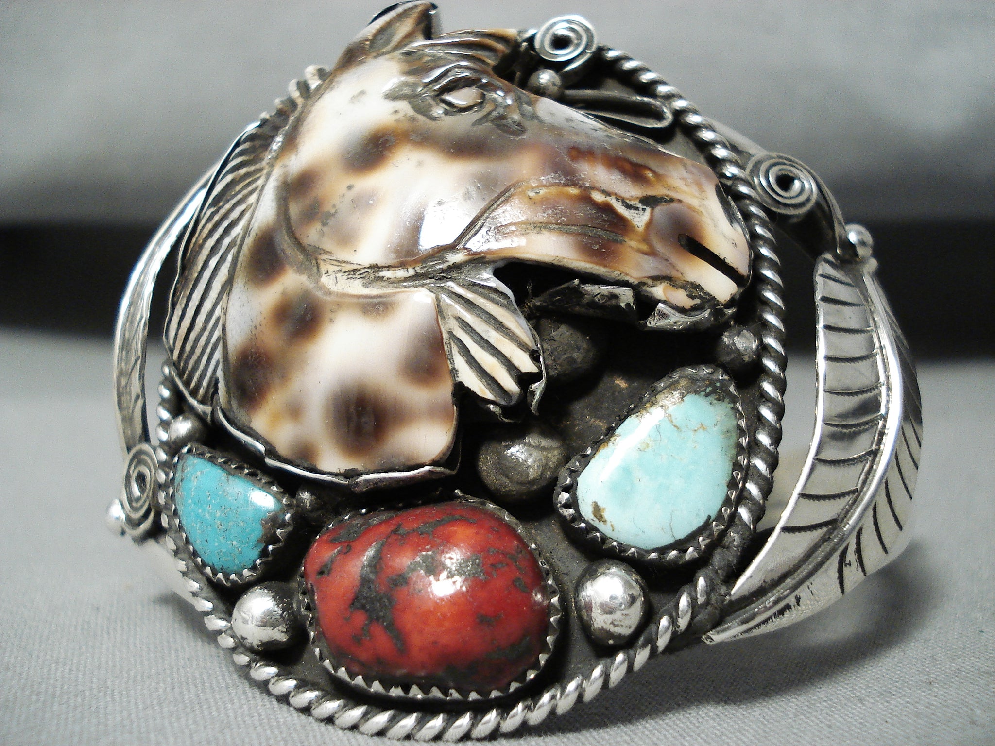 Native American Important Hand Carved Horse Turquoise Sterling Silver Bracelet Francisco Gomez