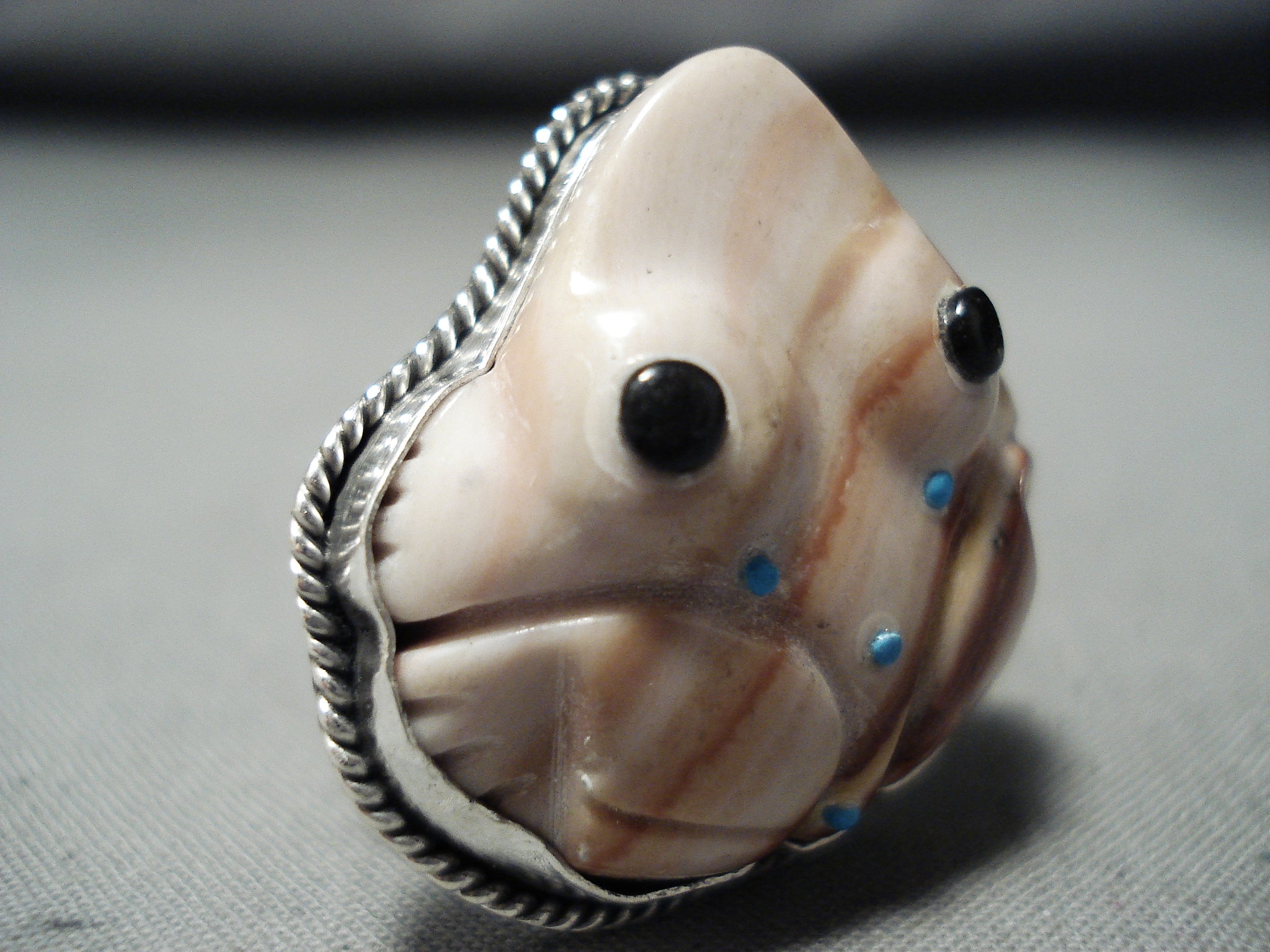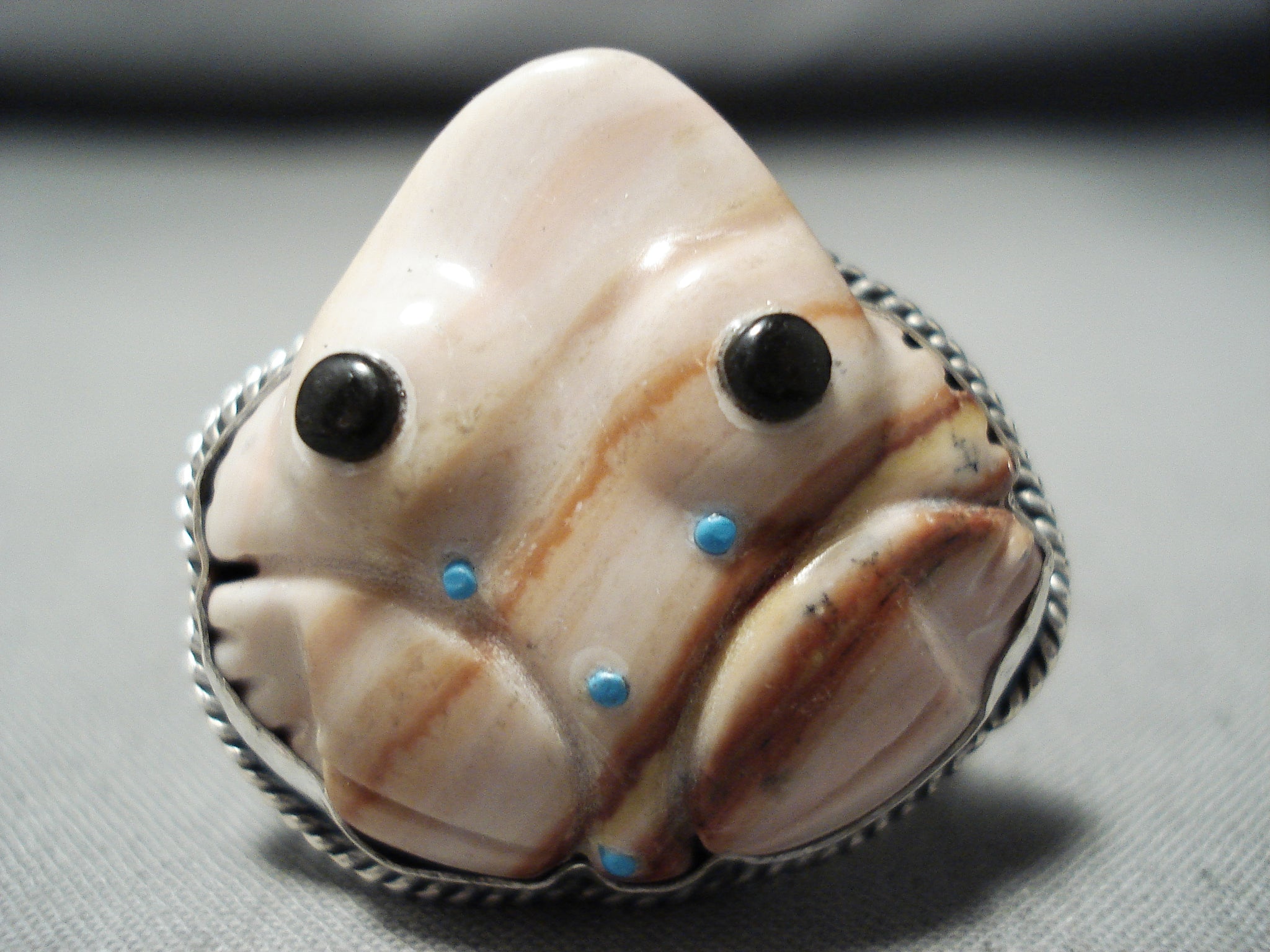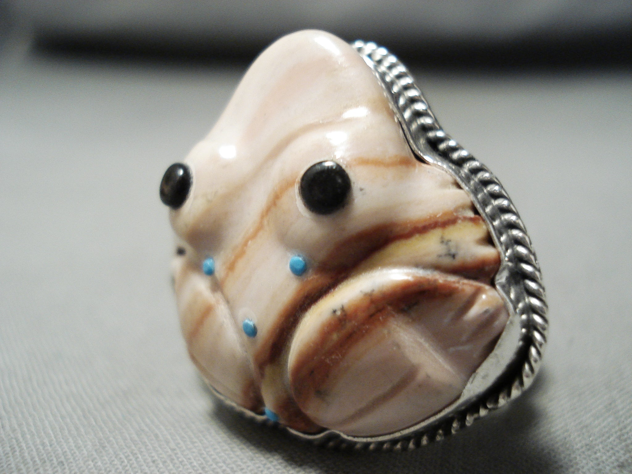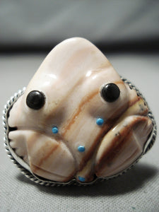 Native American Important Hand Carved Toad Turquoise (d.) Sterling Silver Ring