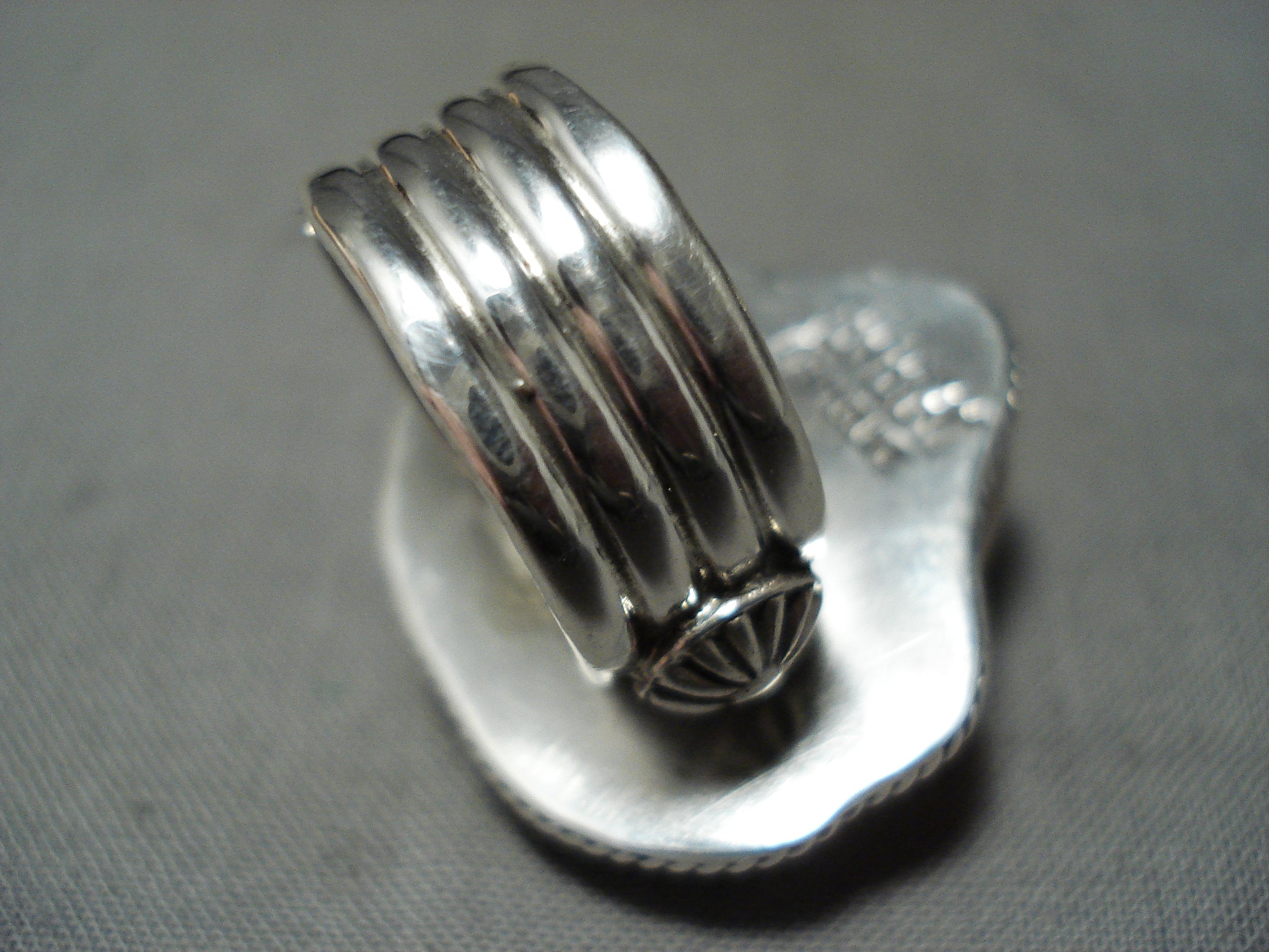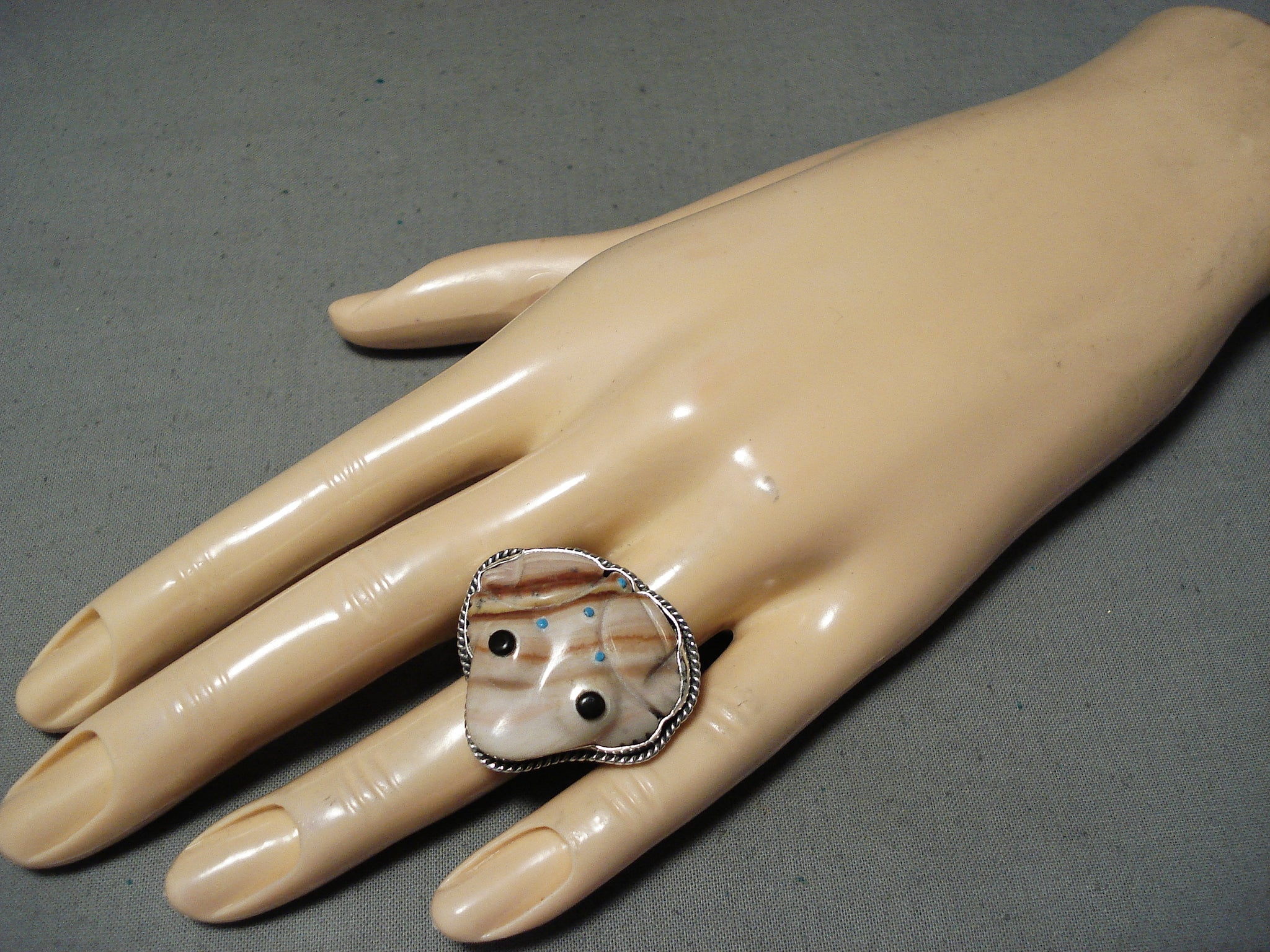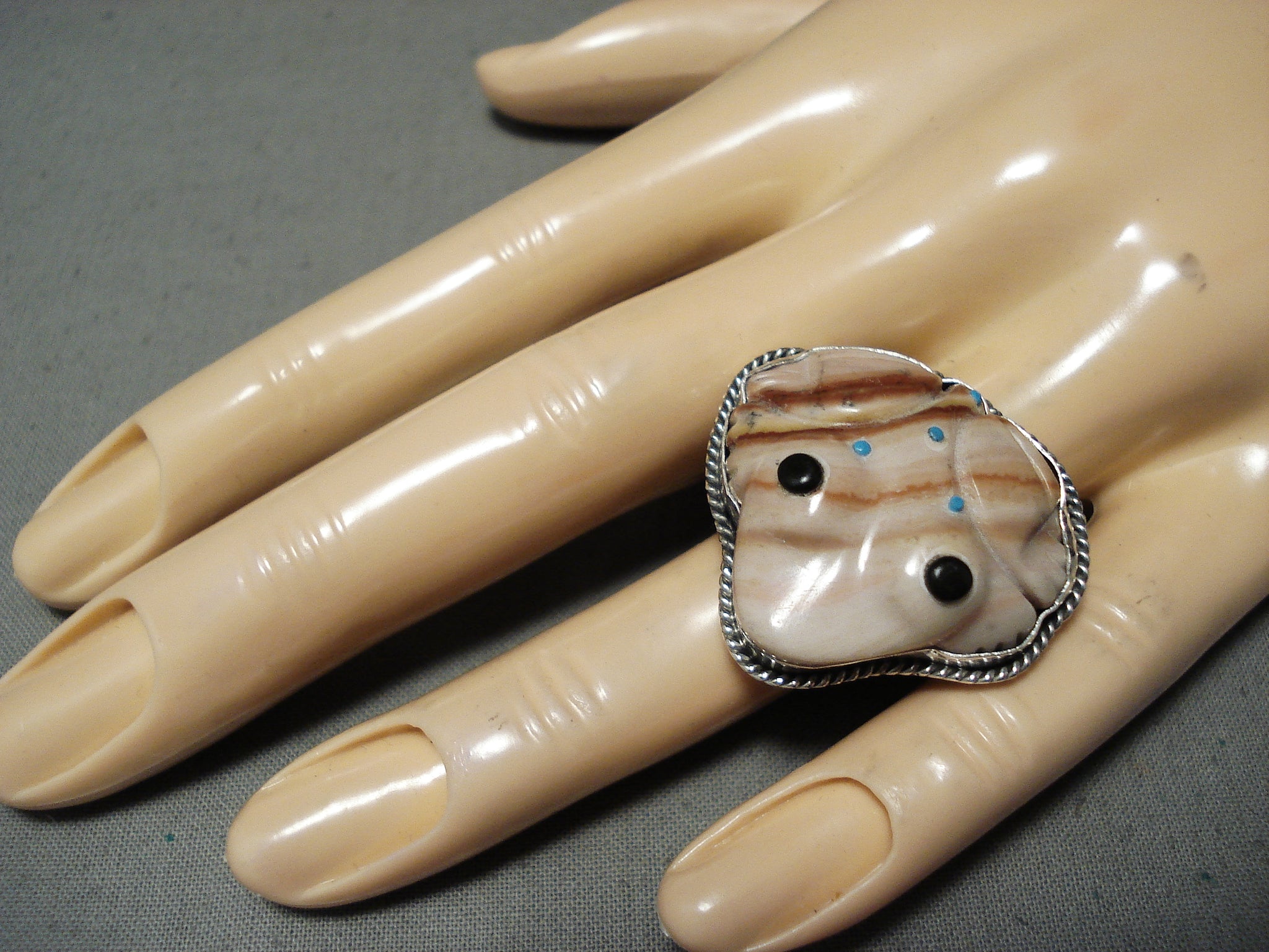 Native American Important Hand Carved Toad Turquoise (d.) Sterling Silver Ring