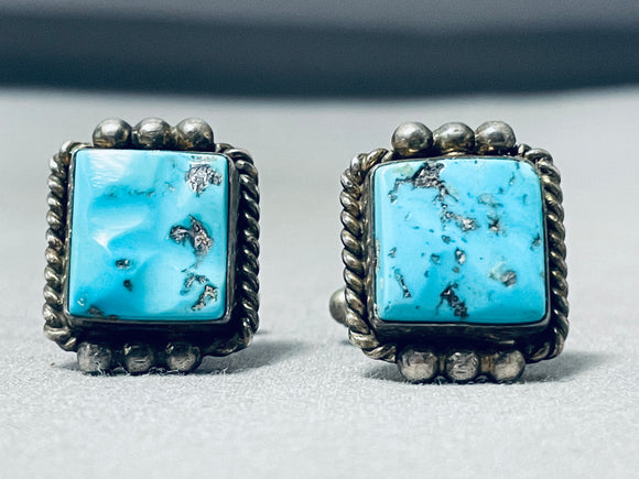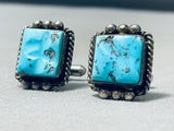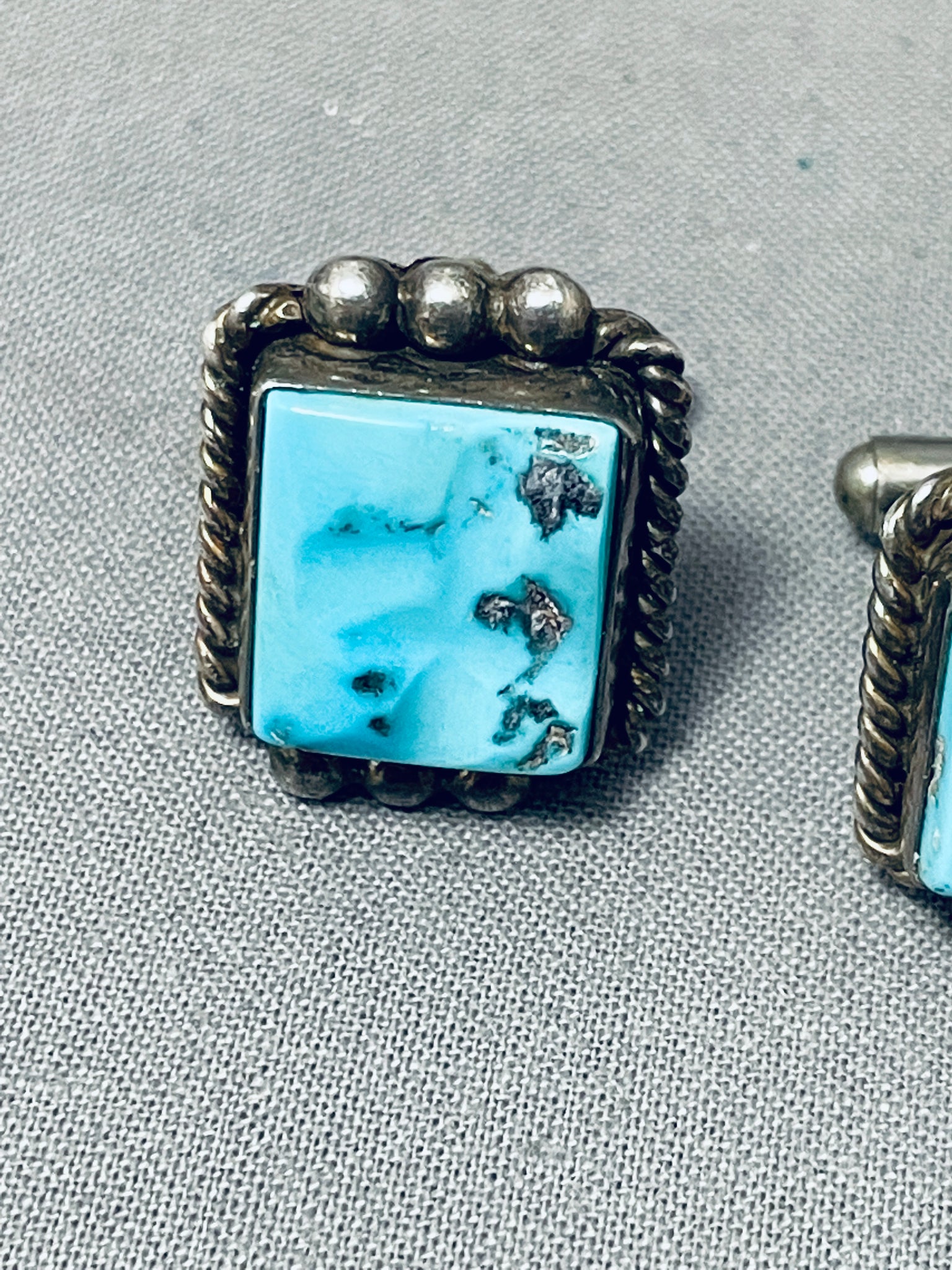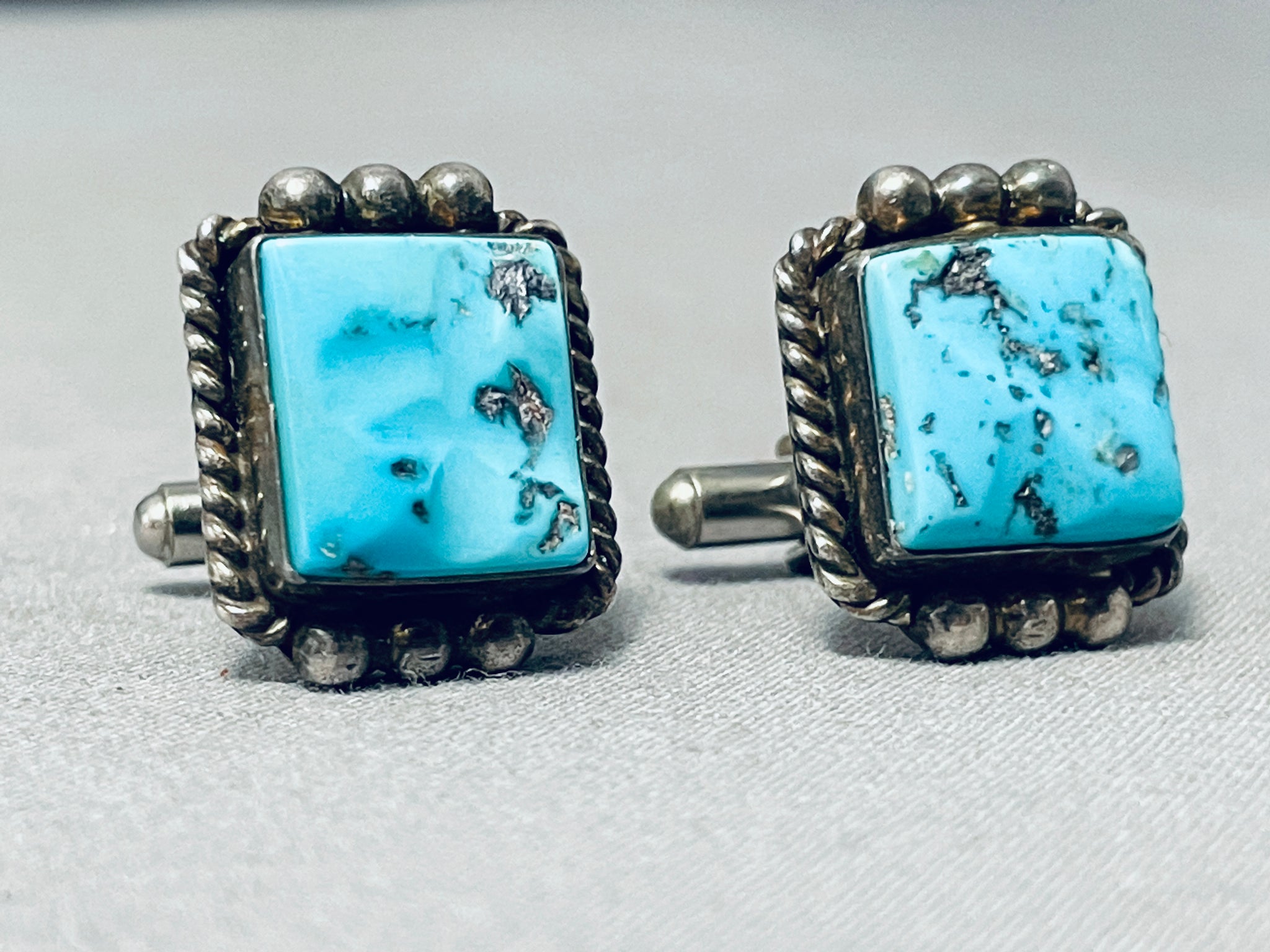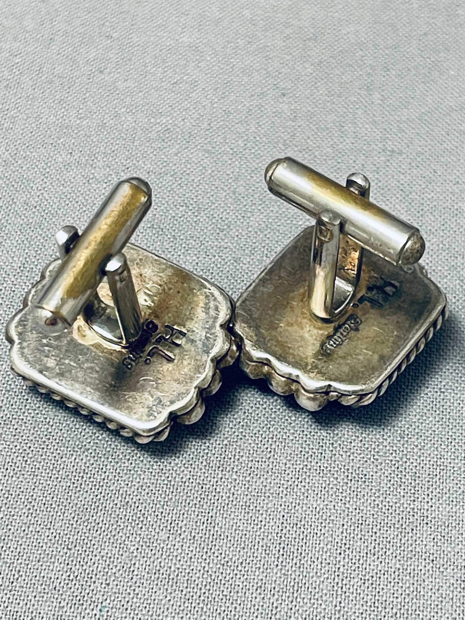 Native American Important Homer Lovato Vintage Santo Domingo Turquoise Sterling Silver Cufflinks