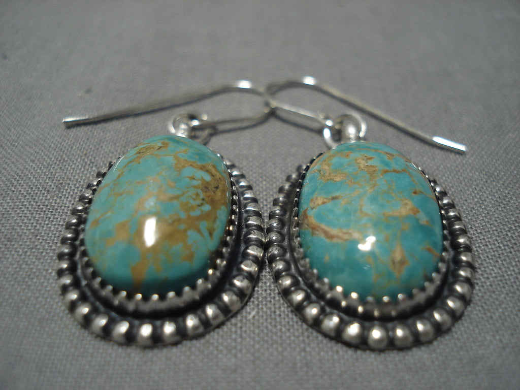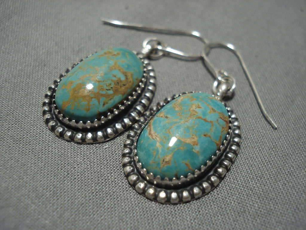 Native American Important Jeanette Dale Royston Turquoise Sterling Silver Earrings