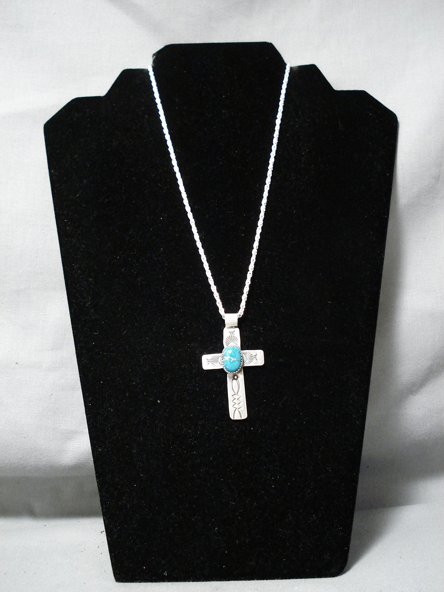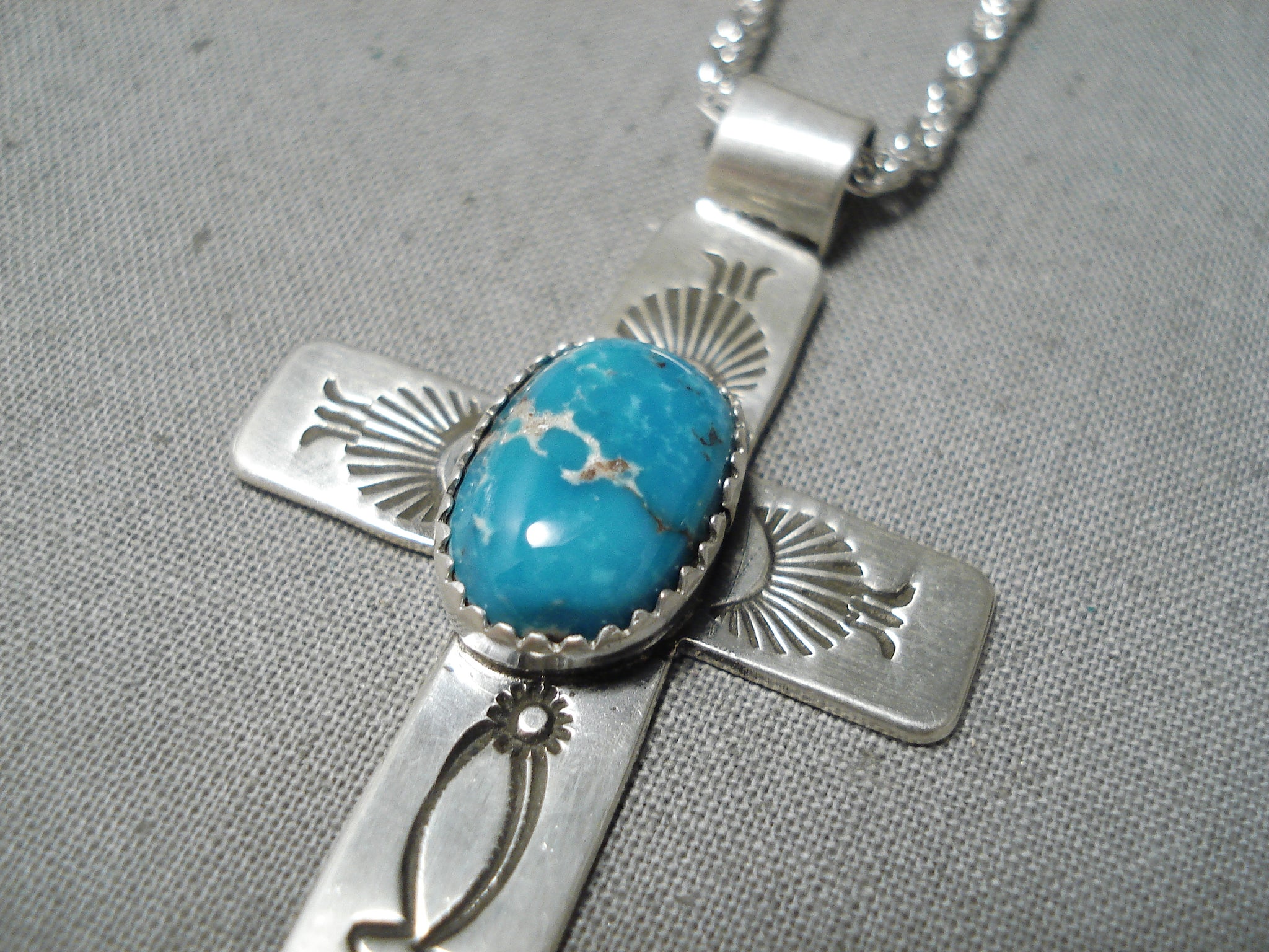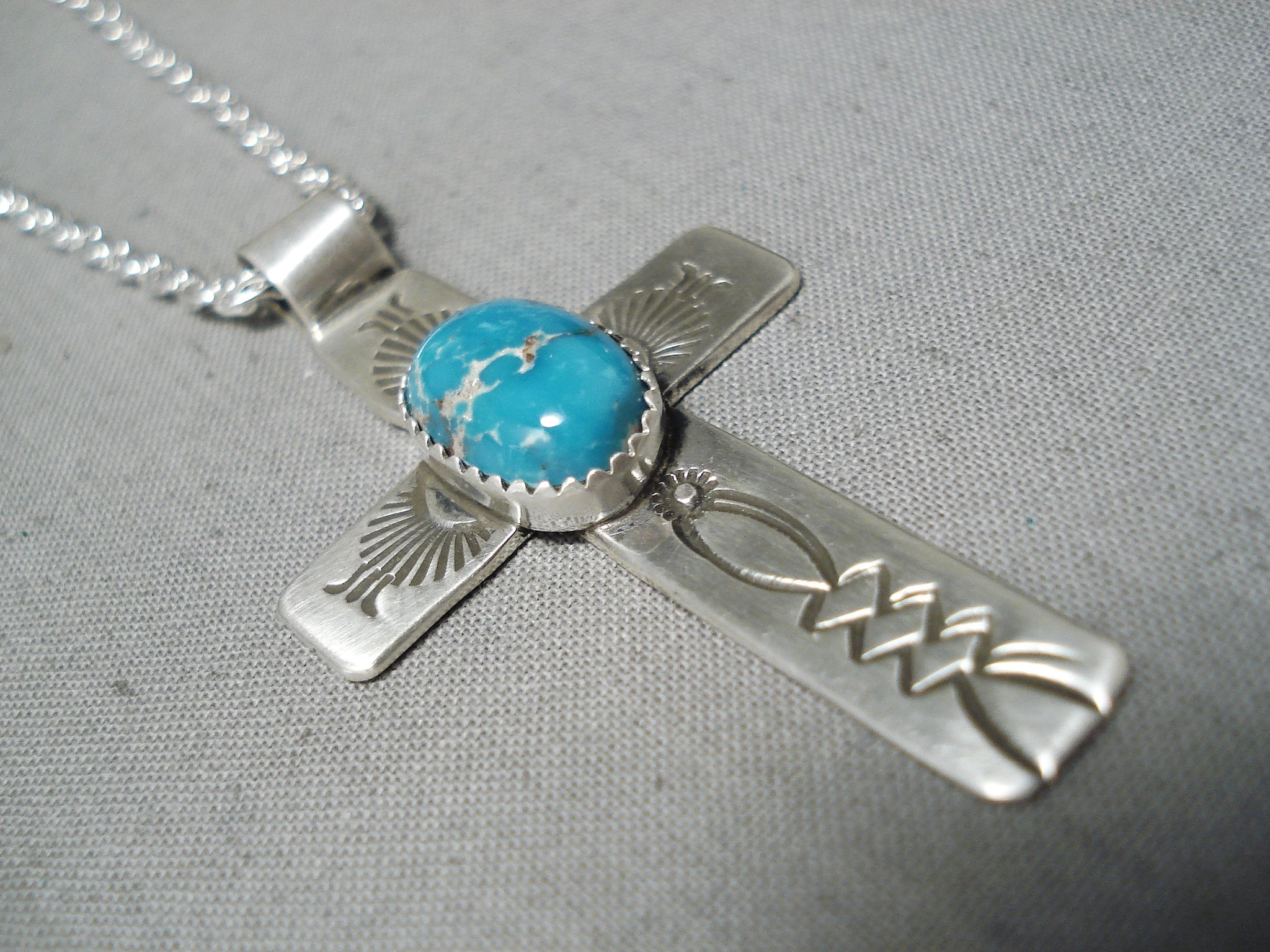 Native American Important Jeanette Dale Turquoise Cross Sterling Silver Necklace